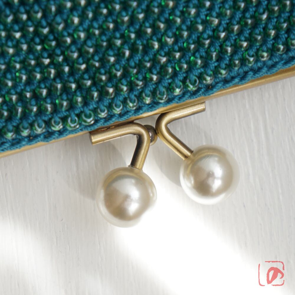 口金 : アンティークゴールド、プチパールつまみ、10.5cm、角型、両カン