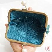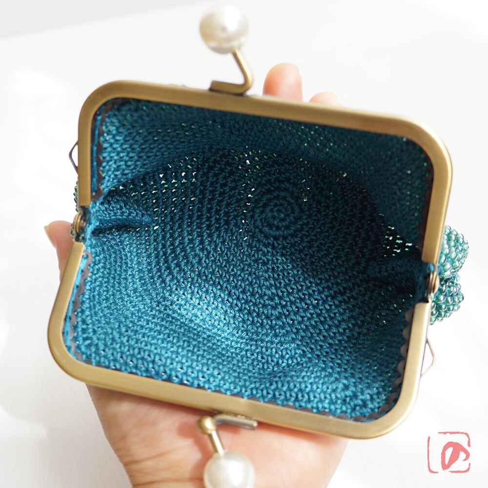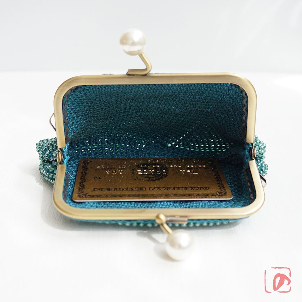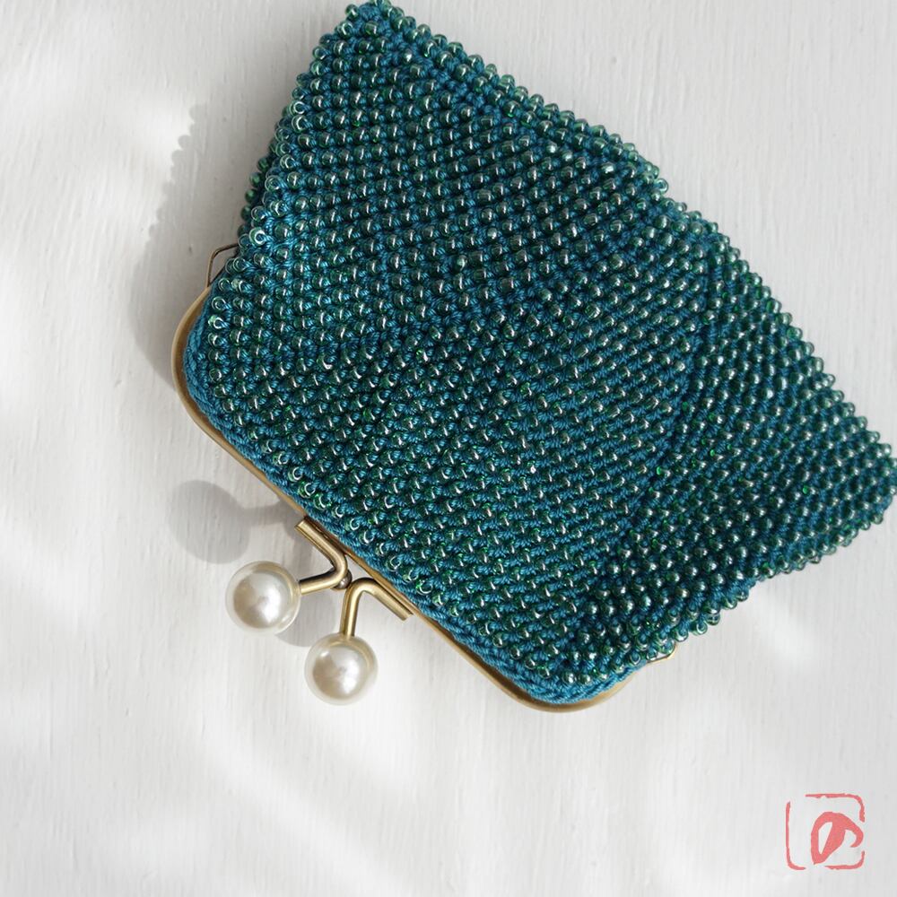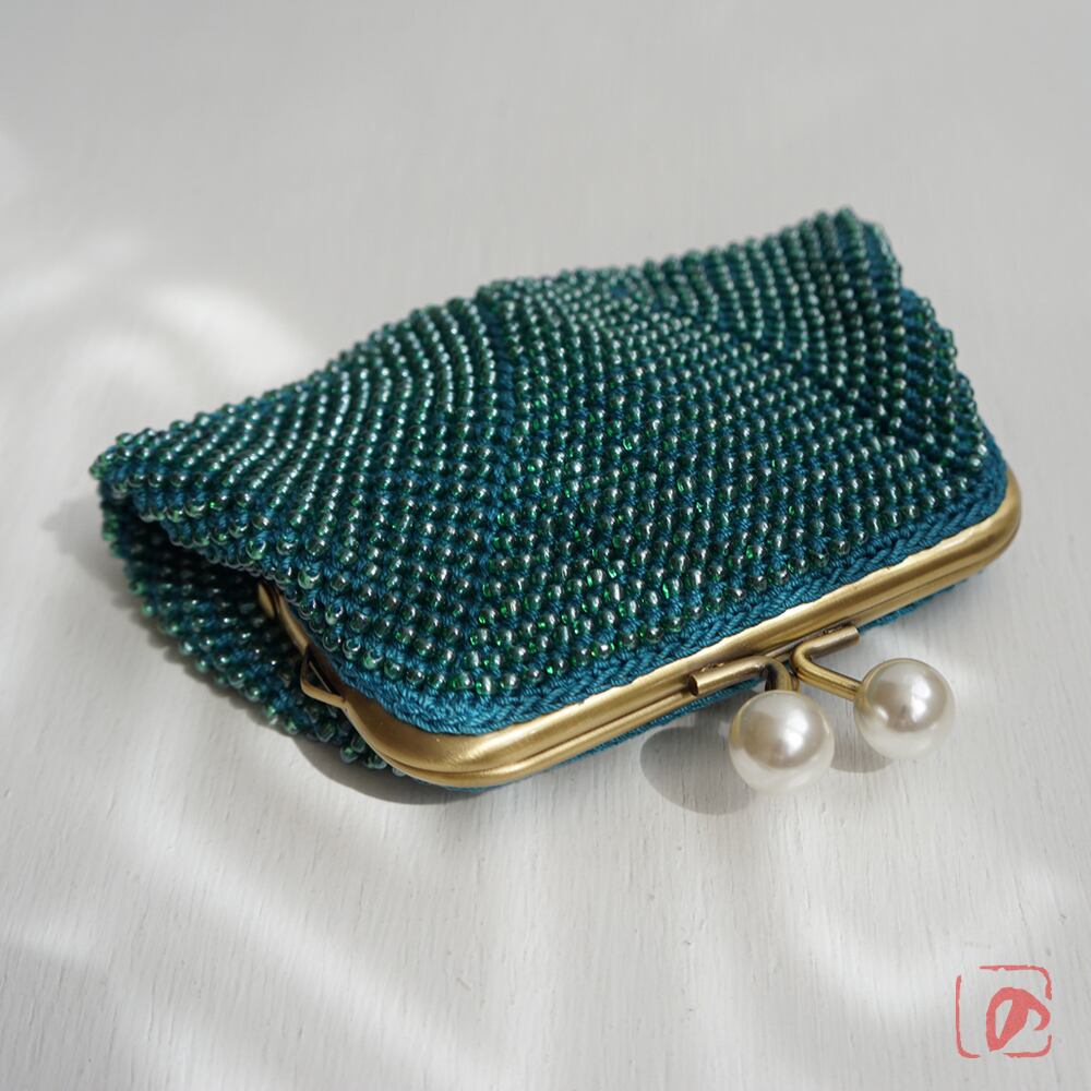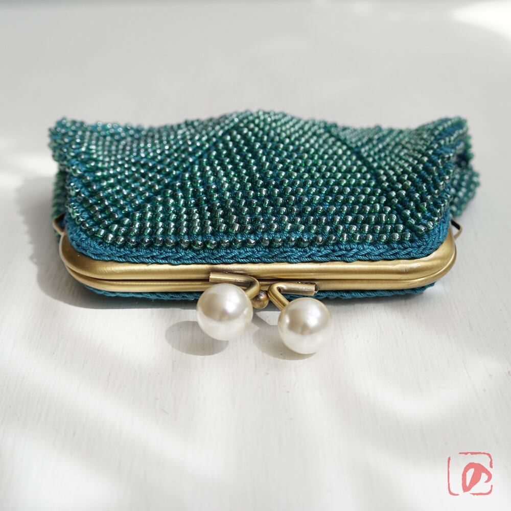 ばあば作☆大きめ・総ガラスビーズのスクエアがま口(peacock・1559)