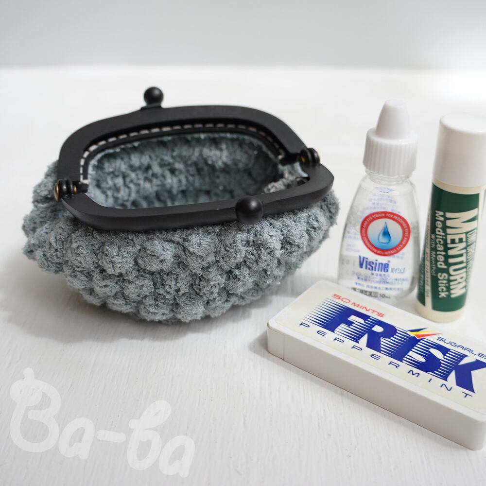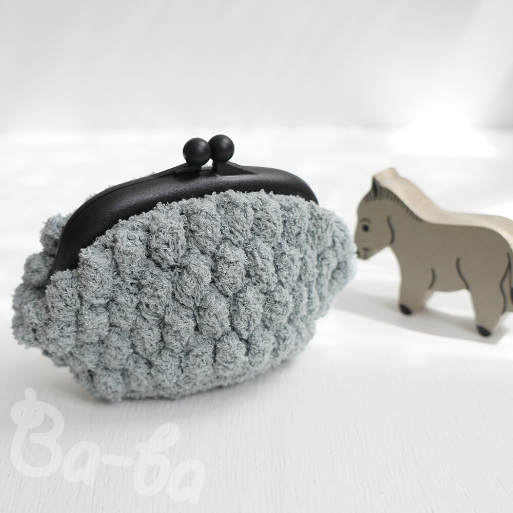 「パプコーン編み」の編み地をがま口に仕上げました。