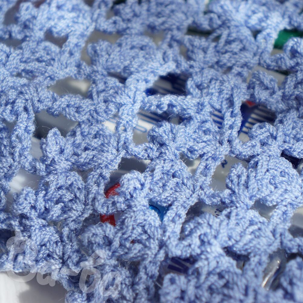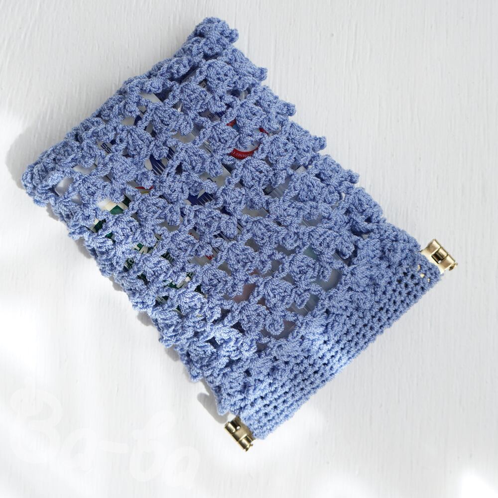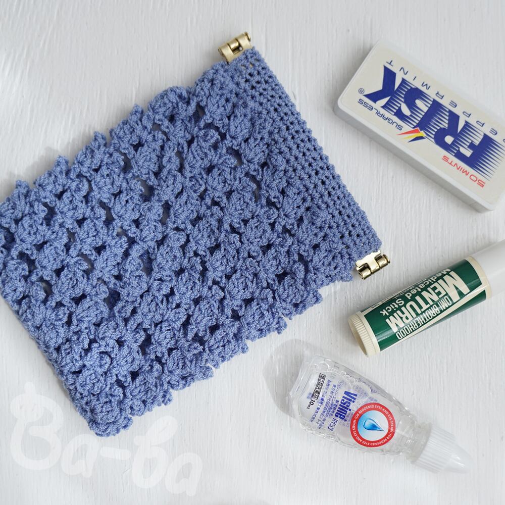 透け感がきれいなピコット編みと組み合わせて、軽快な小物入れができました。