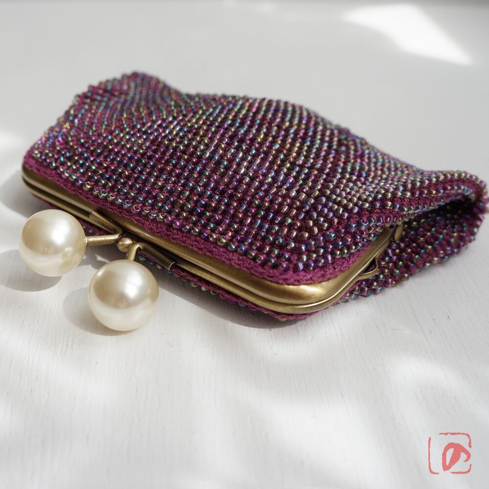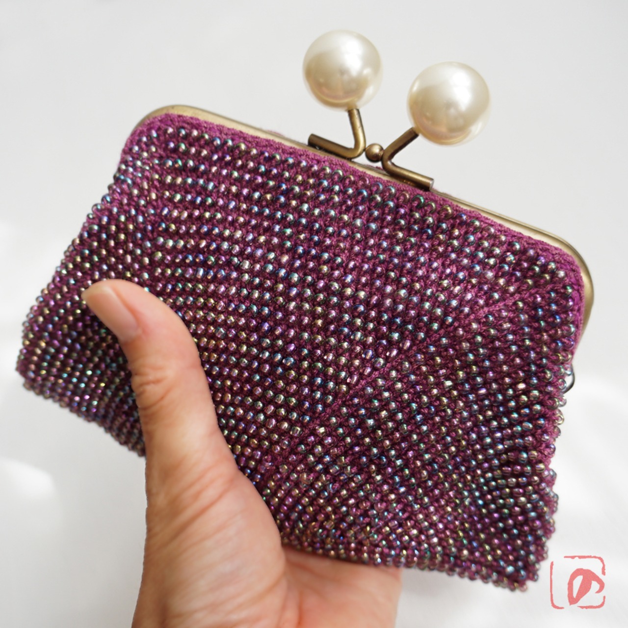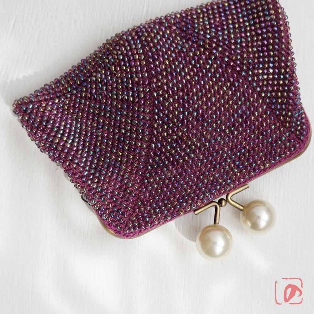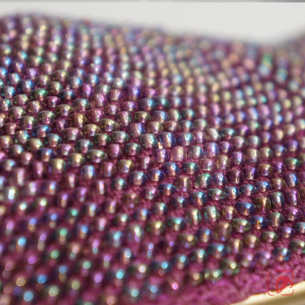 多色に輝く3mmのビーズをひとつぶづつ、全面に編み込みました。