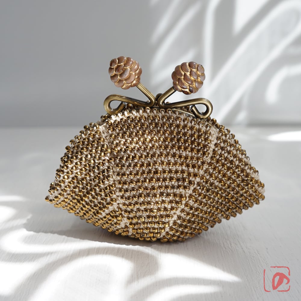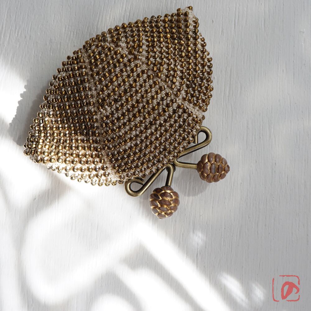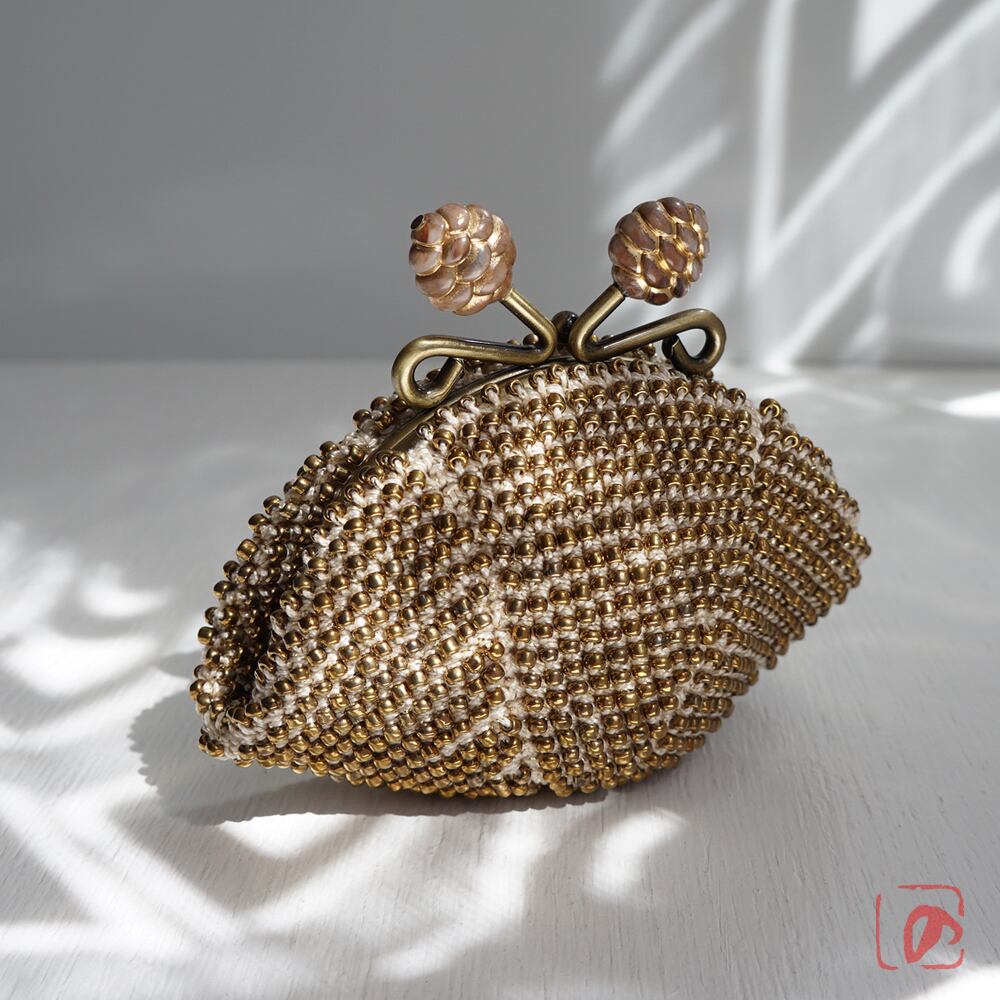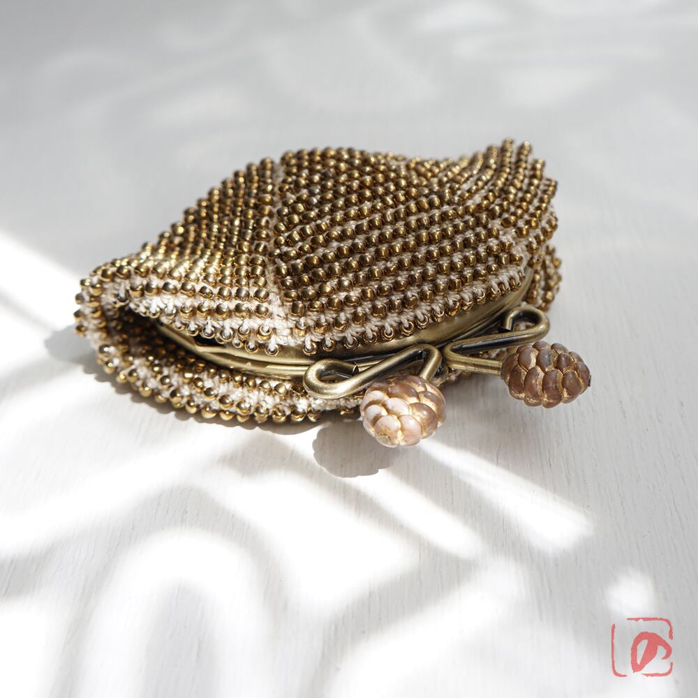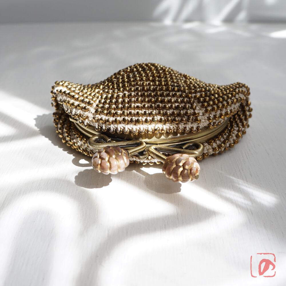ばあば作☆☆総ガラスビーズのがま口(pomme de pin・1552)