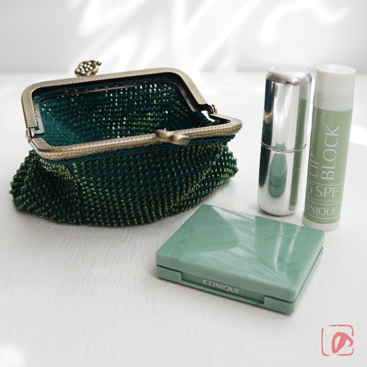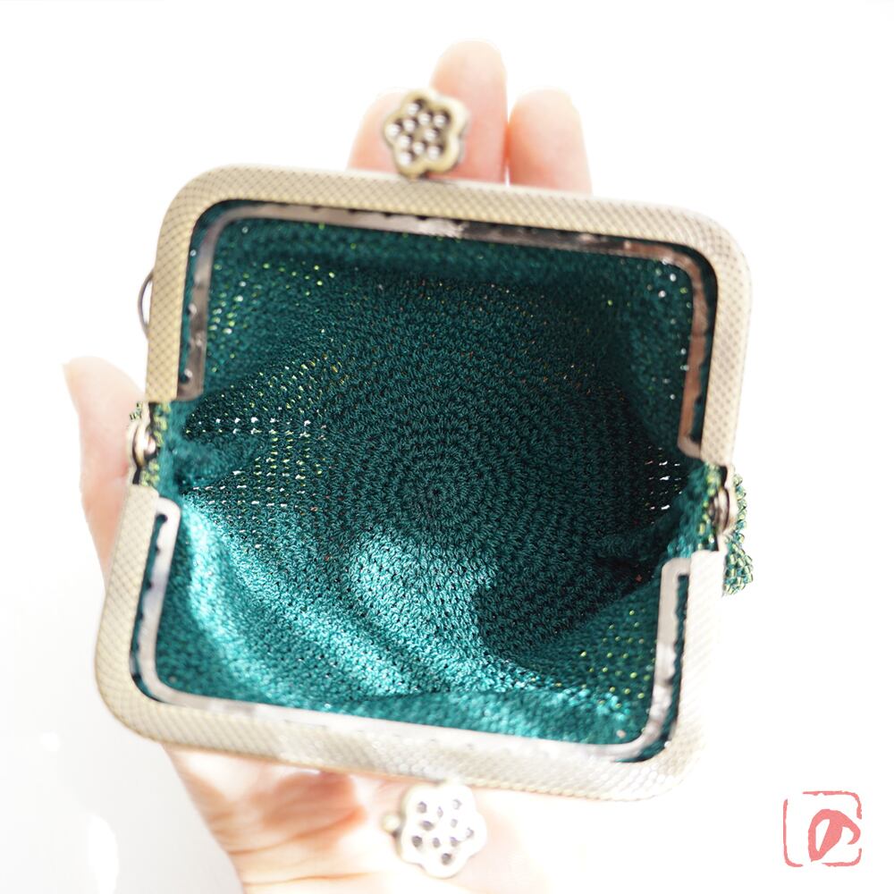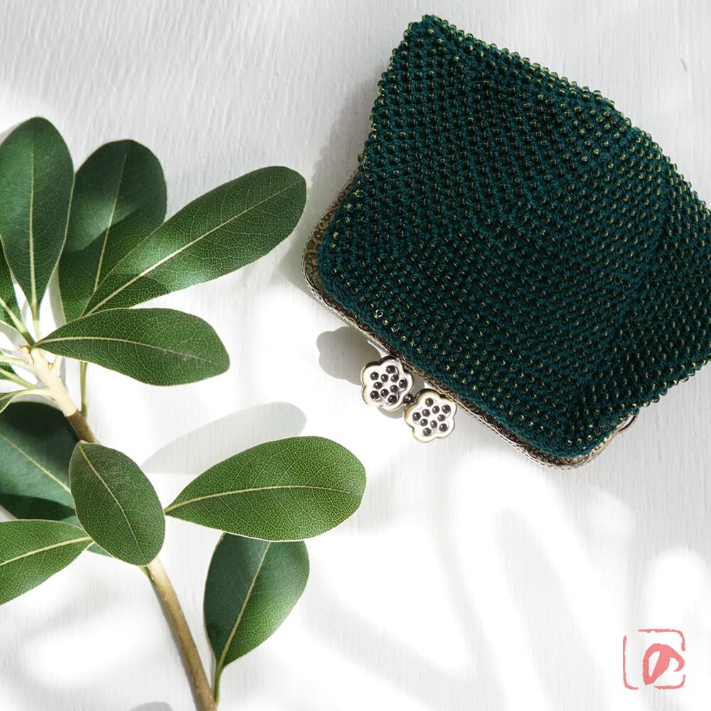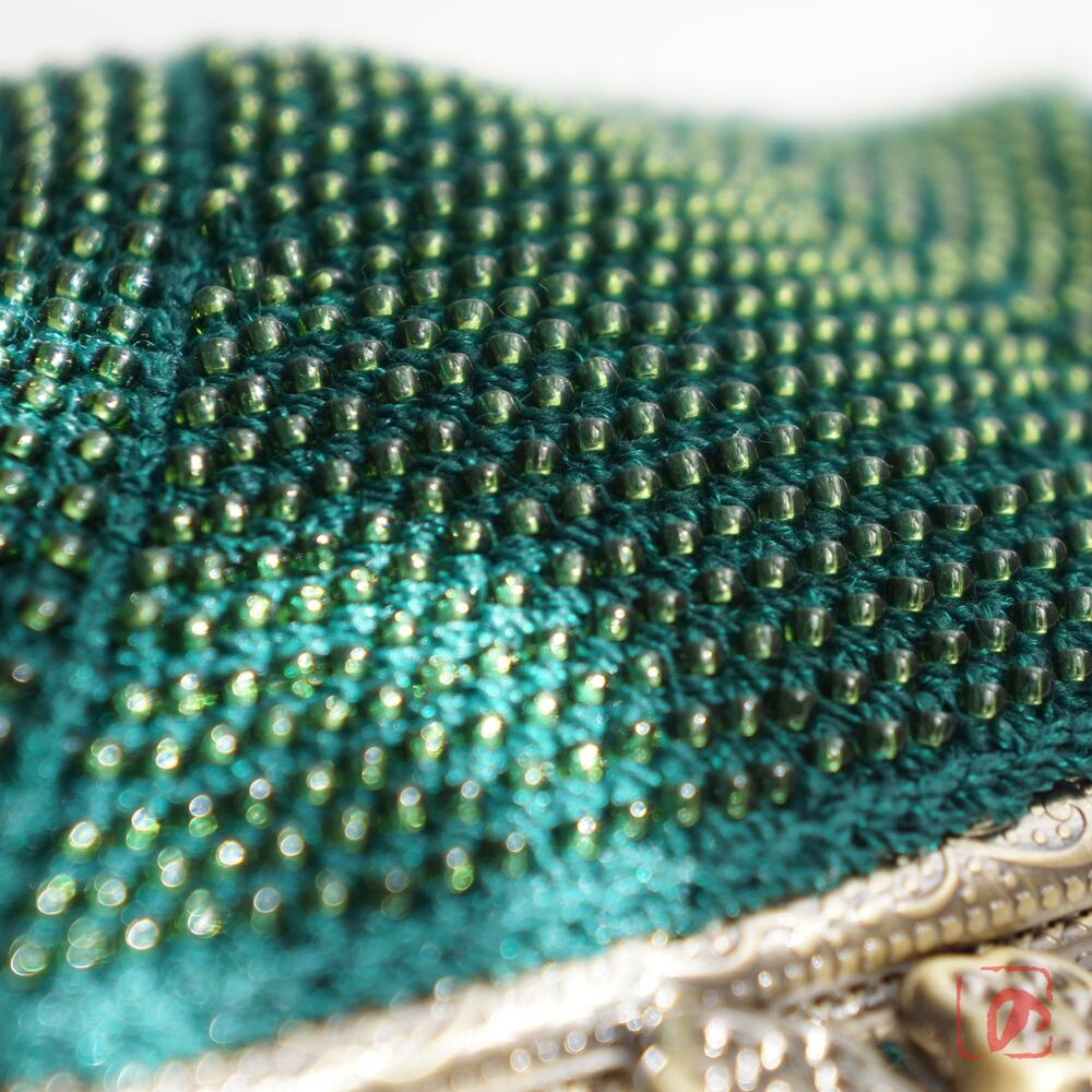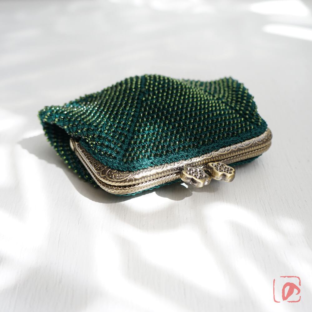 ばあば作 ♡ シードビーズのスクエアがま口(dark ivy・1549)
