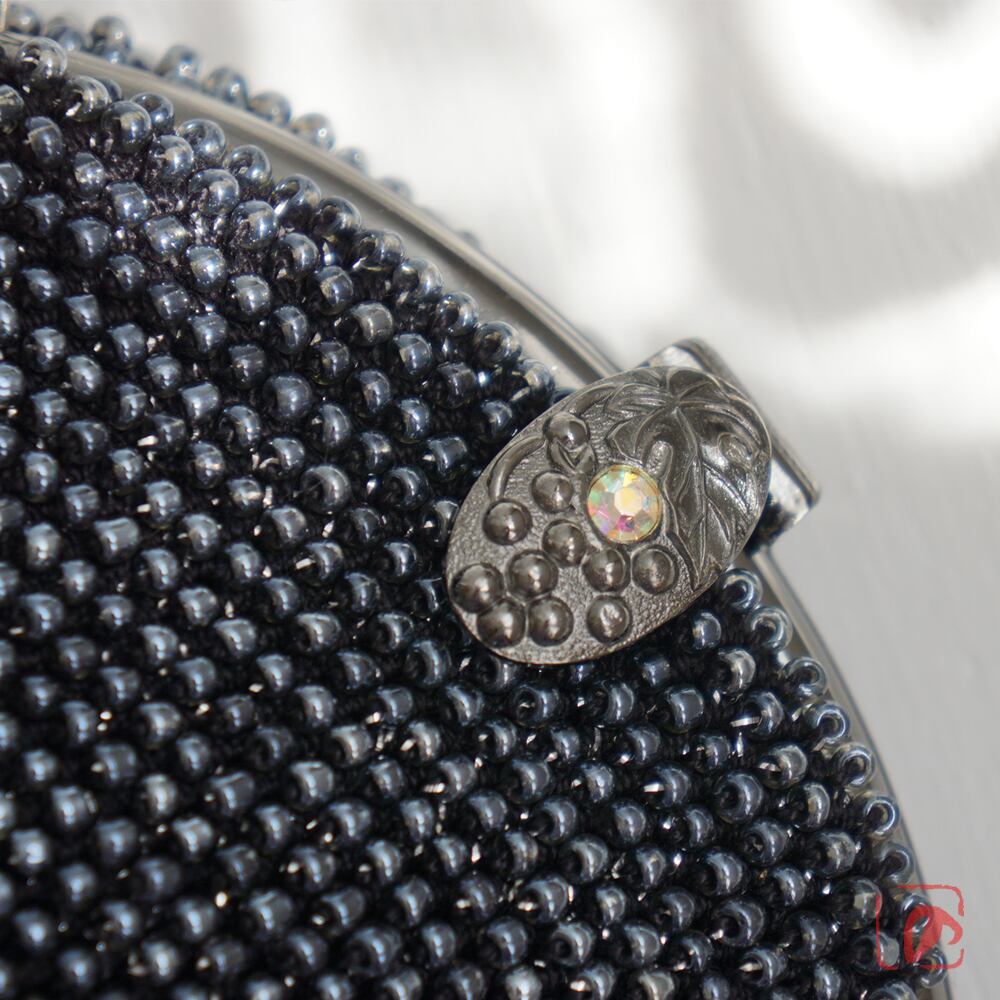 口金 : メタルブラック、葡萄模様のつまみ、、16.5cm、丸型、両カン
