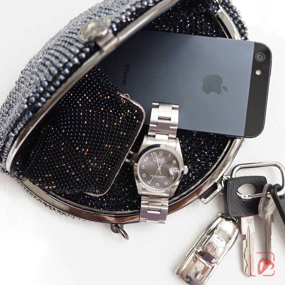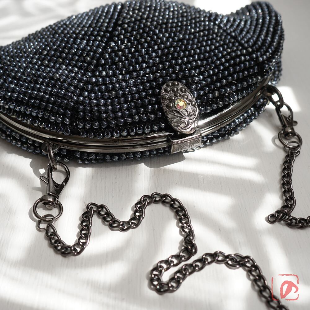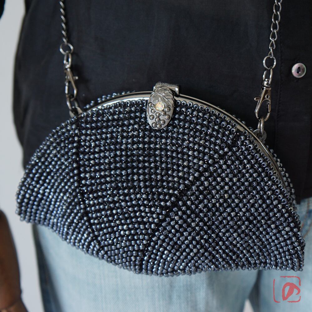 全面になめらかな3mmガラスビーズを編み込んでプチバッグを制作しました。