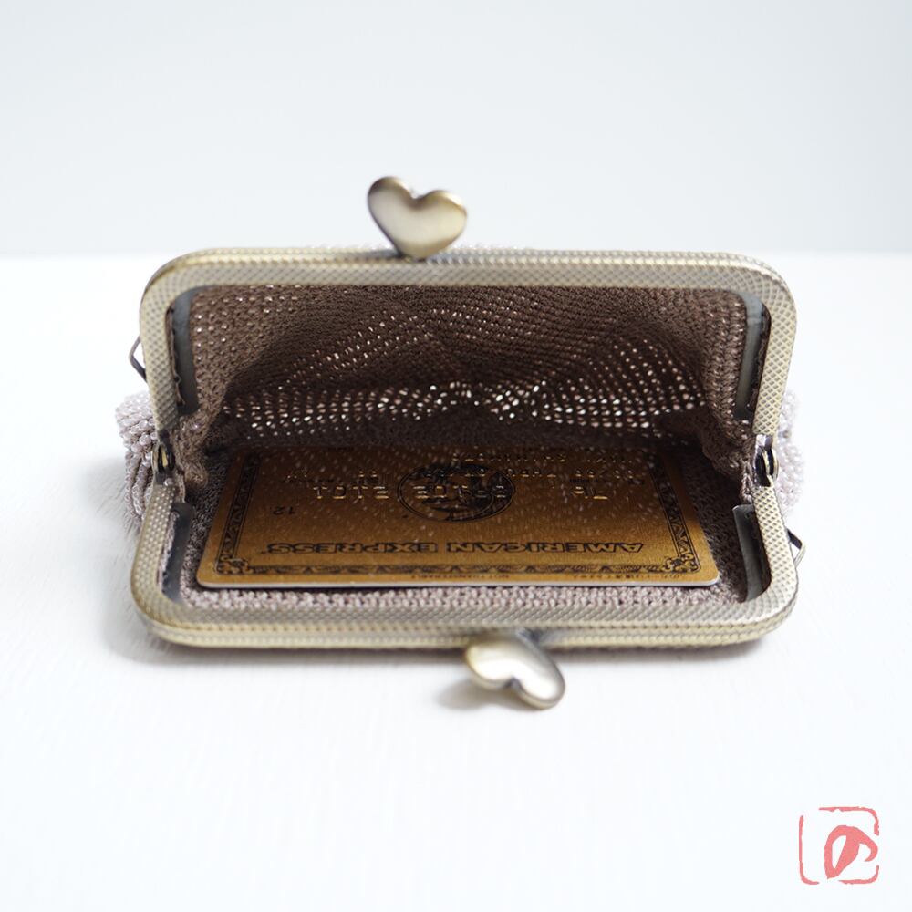 スクエアタイプは四角い小物の収納に適しており、10.5cm口金はカード入れにピッタリです。