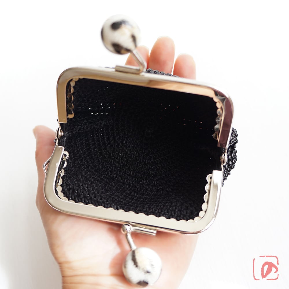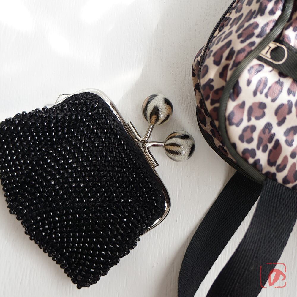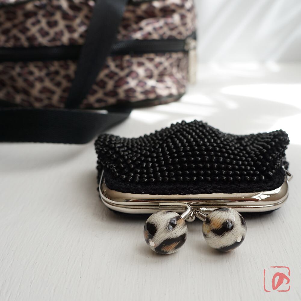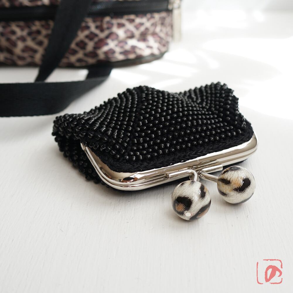 ばあば作☆☆総ガラスビーズのスクエアがま口(leopard・1534)