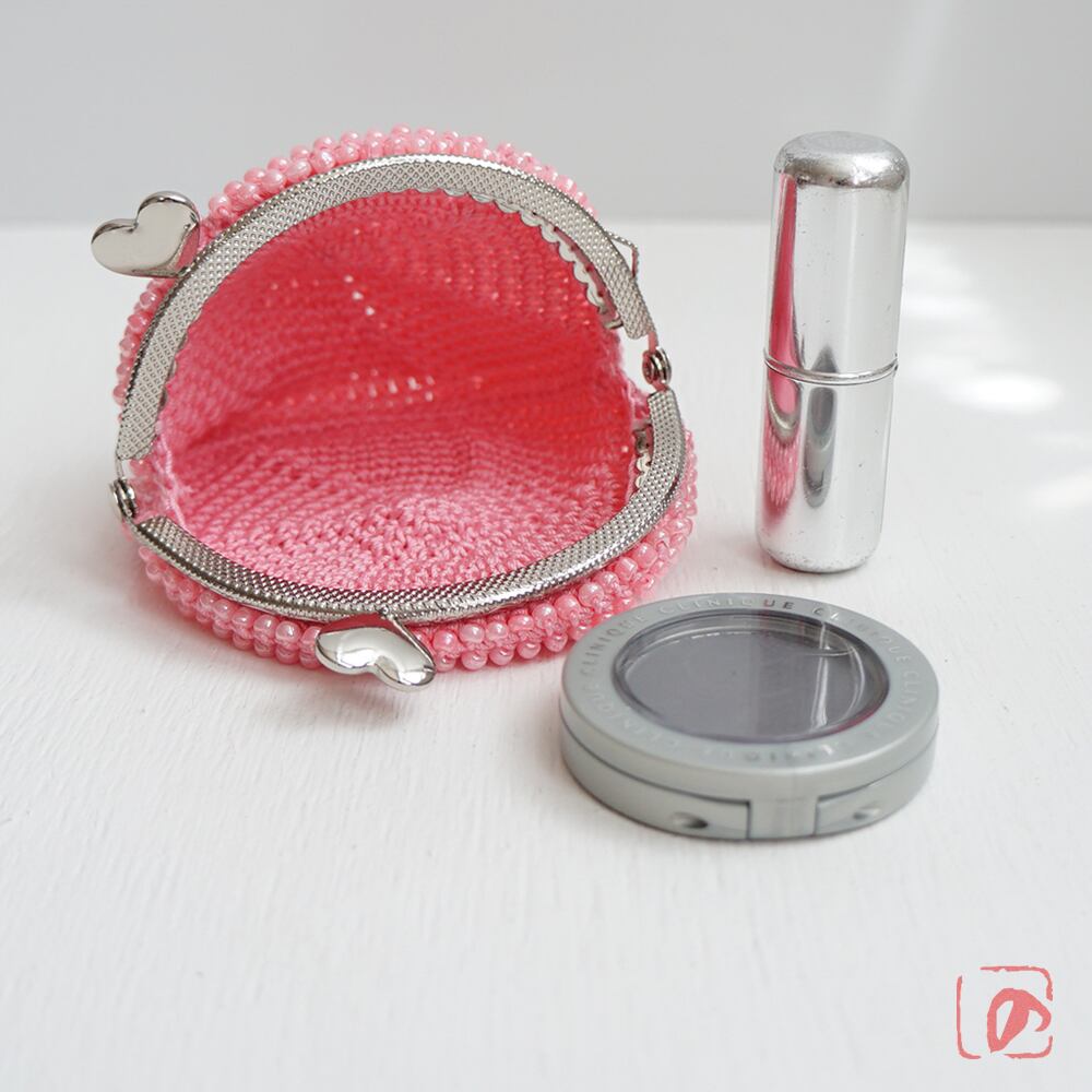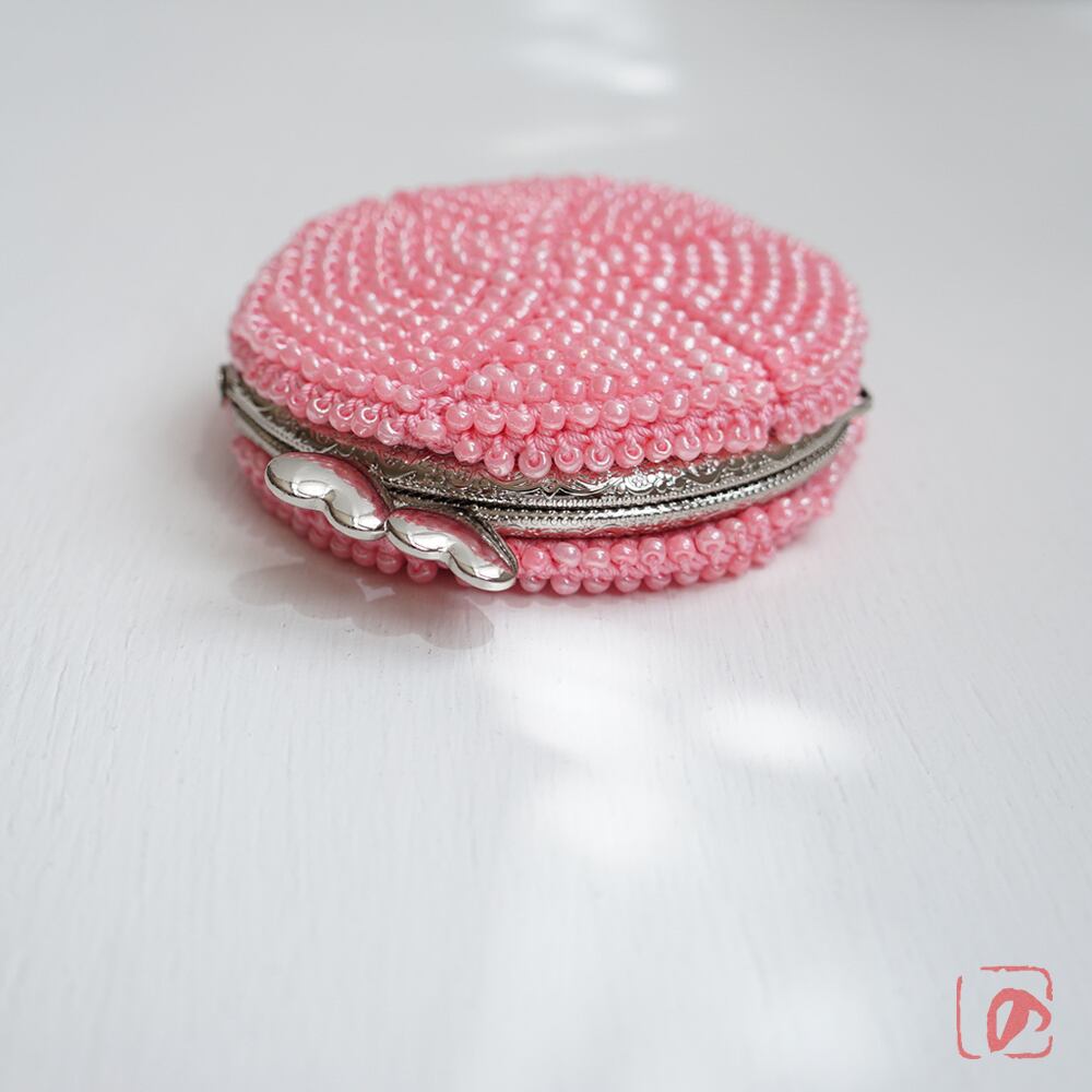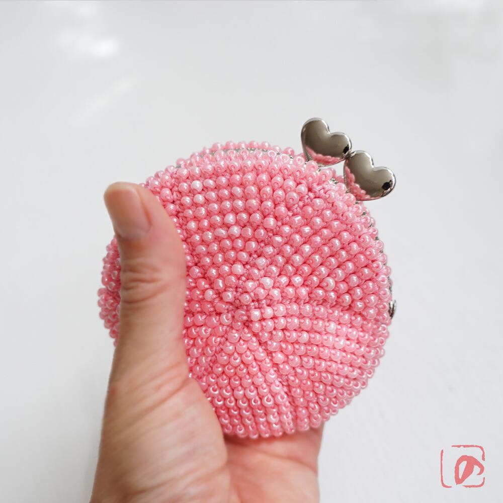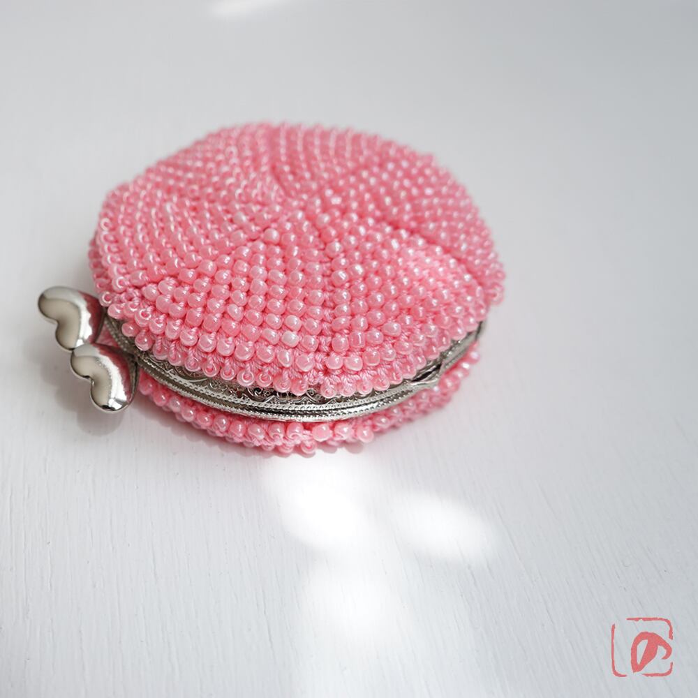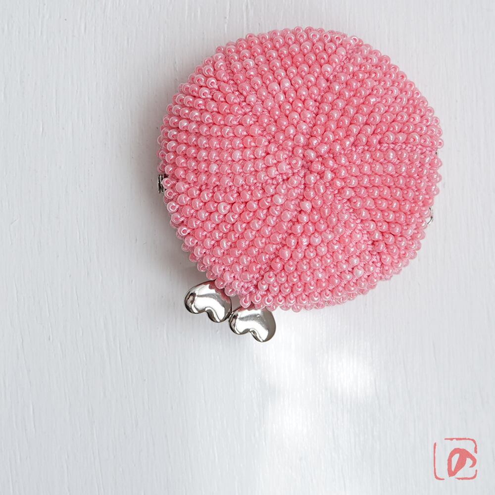 ばあば作 ♡ ガラスビーズのまんまるがま口(peche・1506)