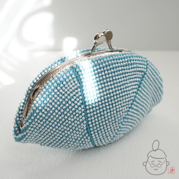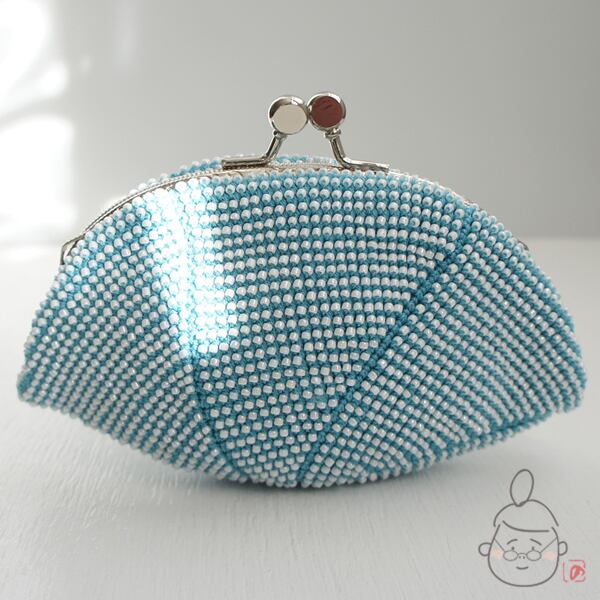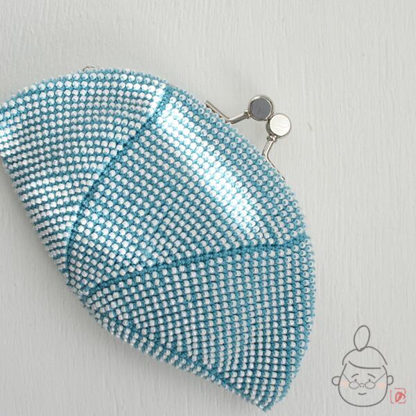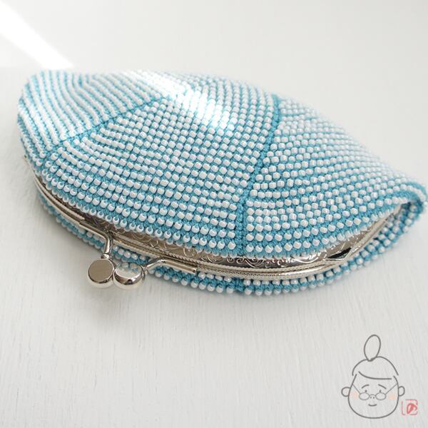 ばあば作☆シードビーズのさらに大きめがま口(blau・1388)