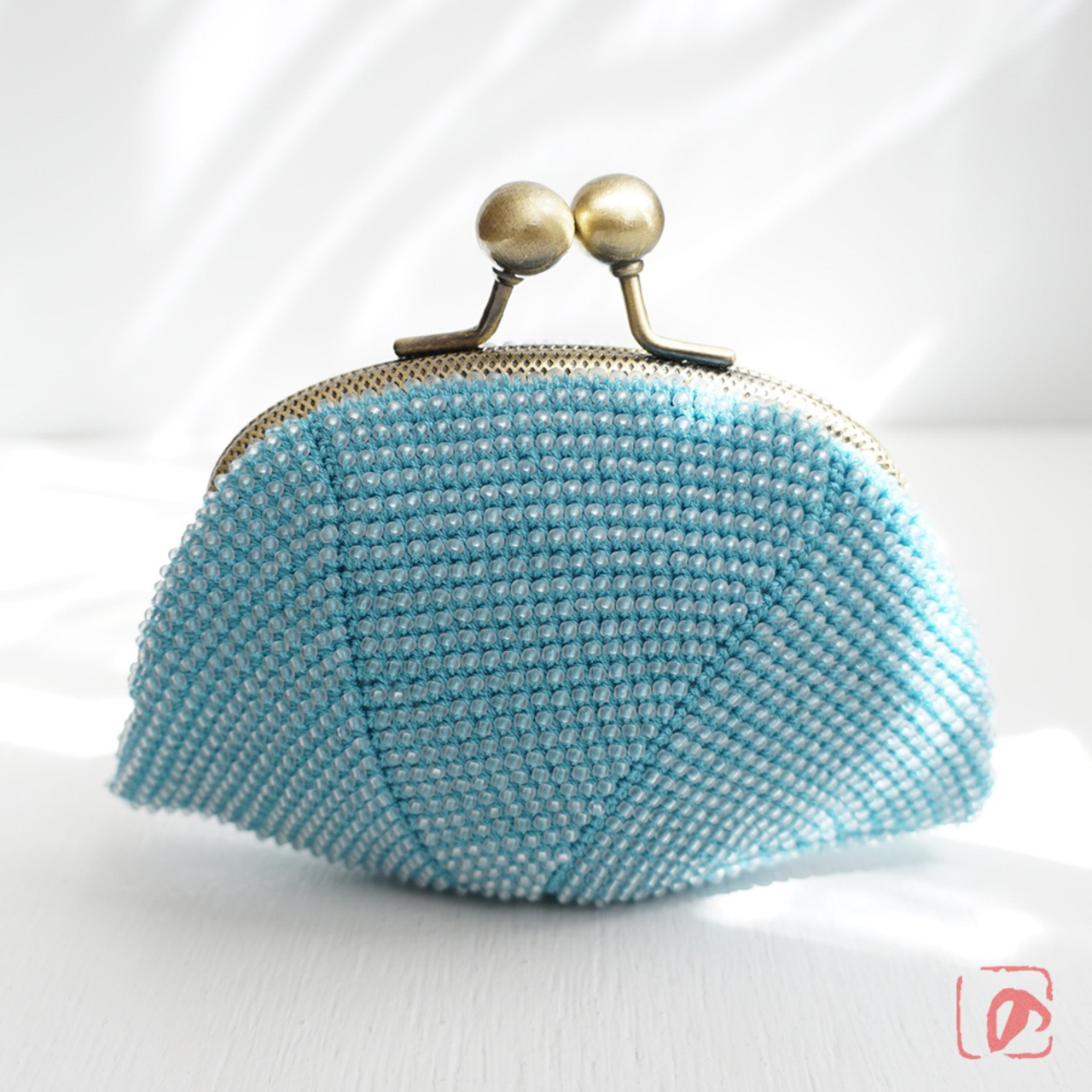 2mmのシードビーズをひとつぶづつ全面に編み込んだ、上質ながま口です。