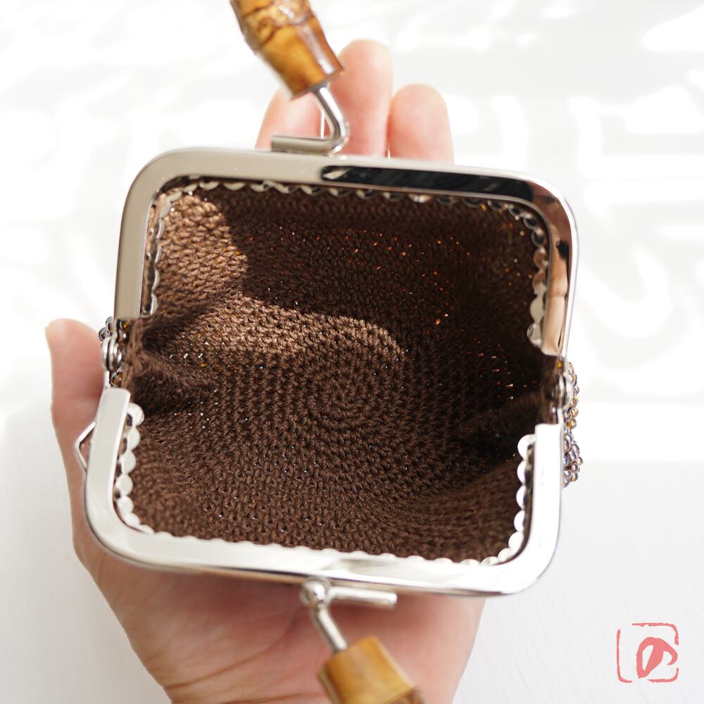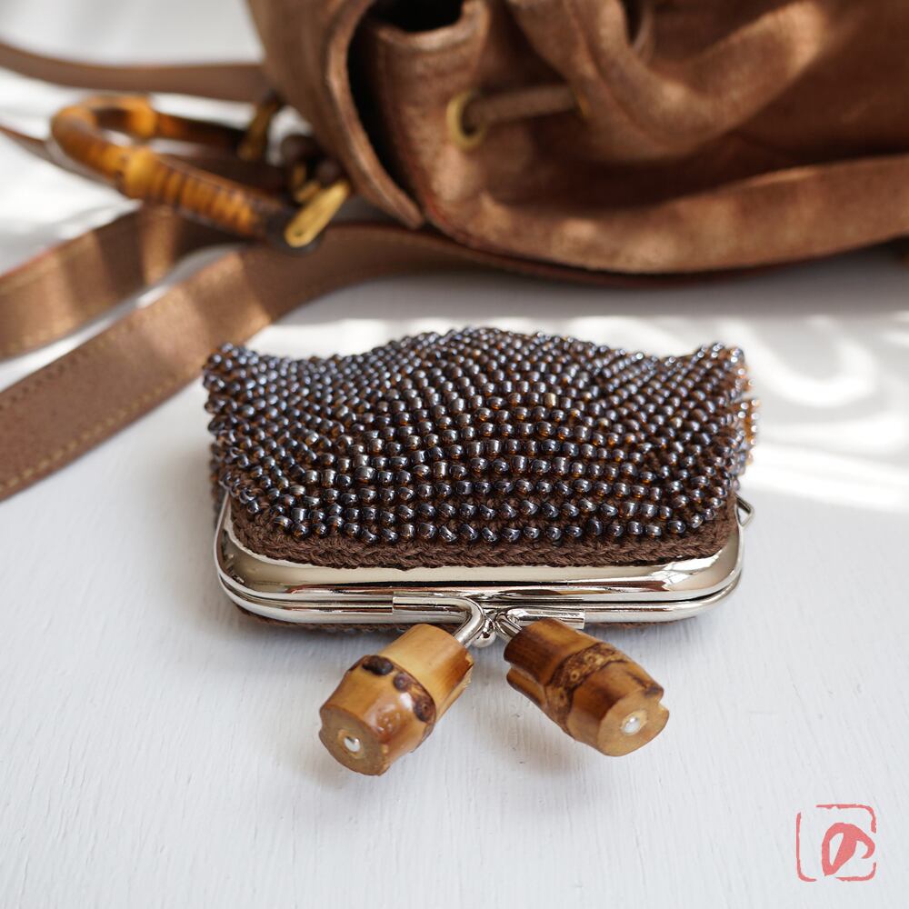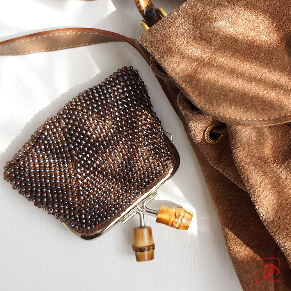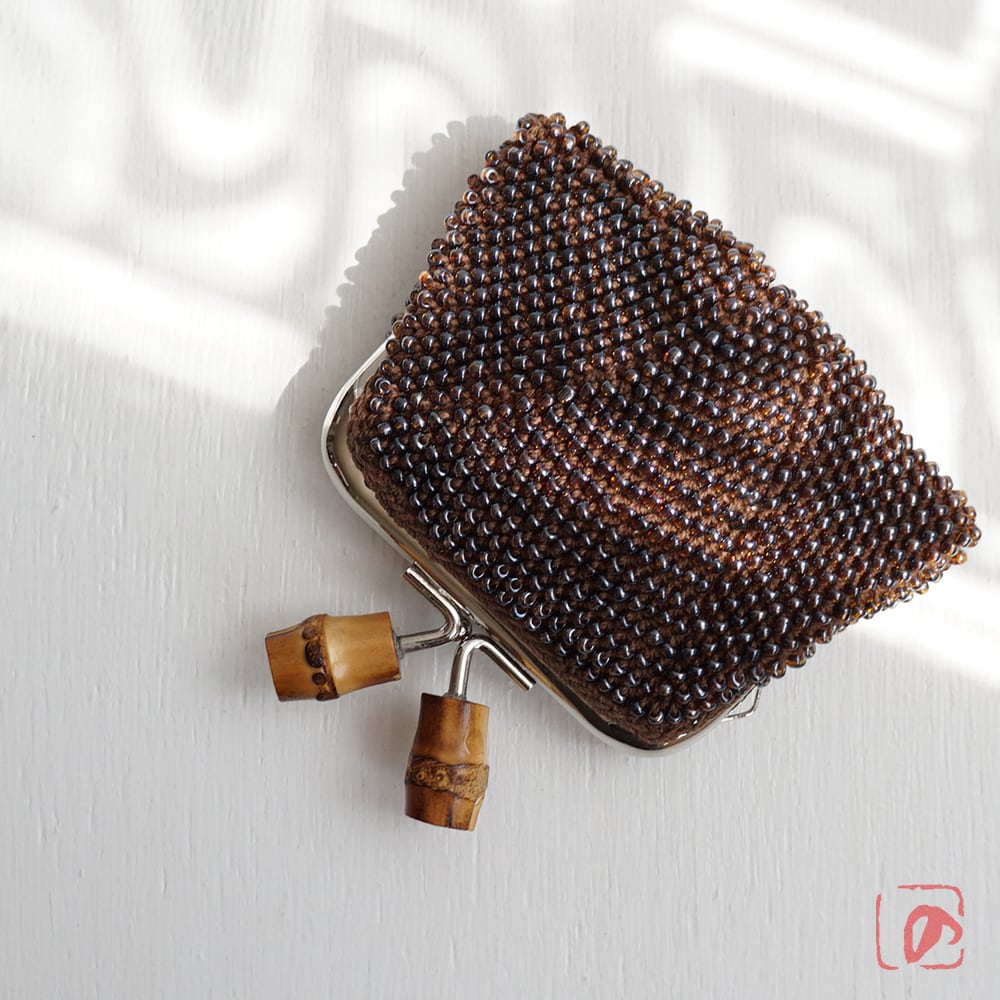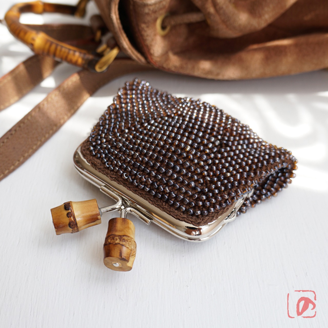 ばあば作☆☆総ガラスビーズのスクエアがま口(bamboo・1529)