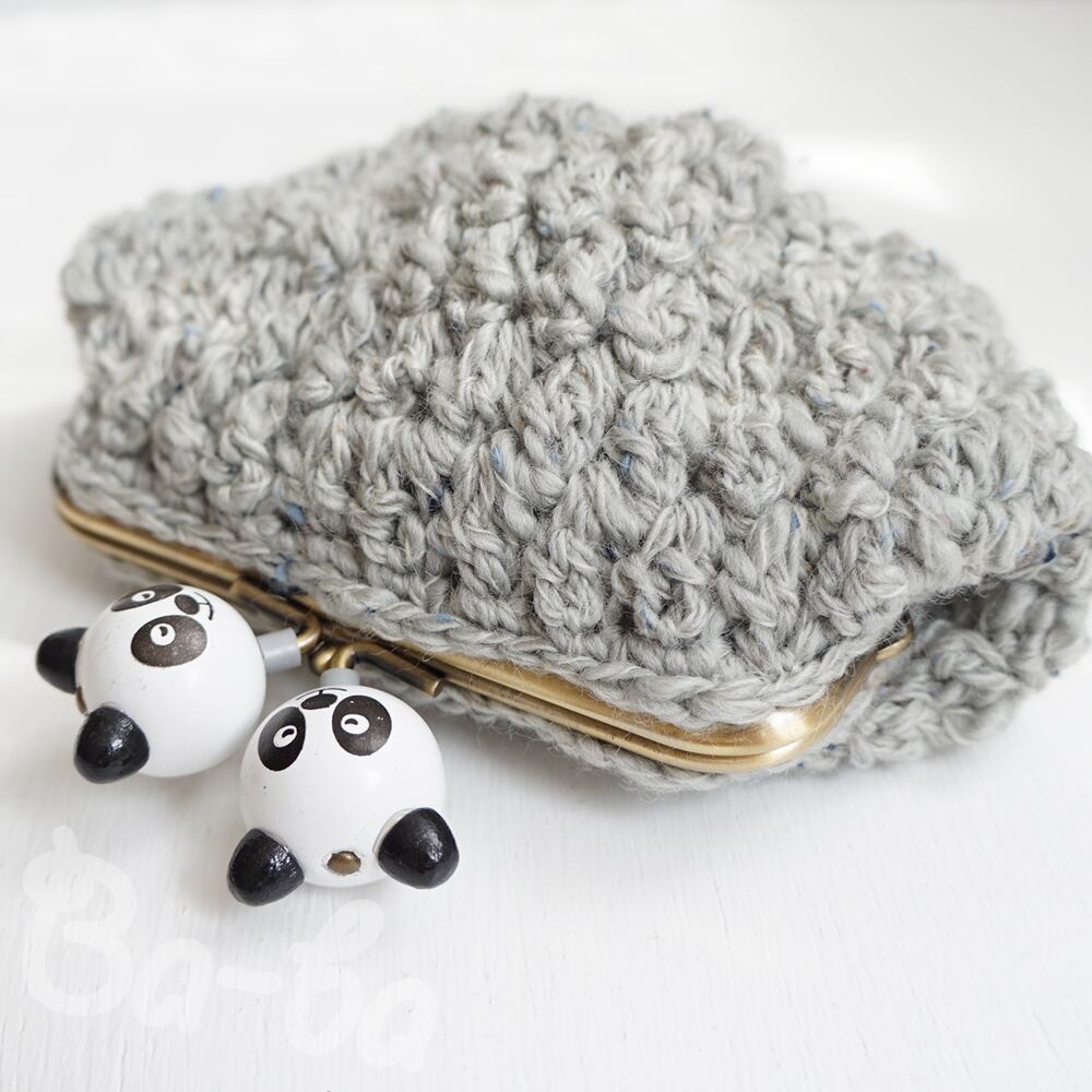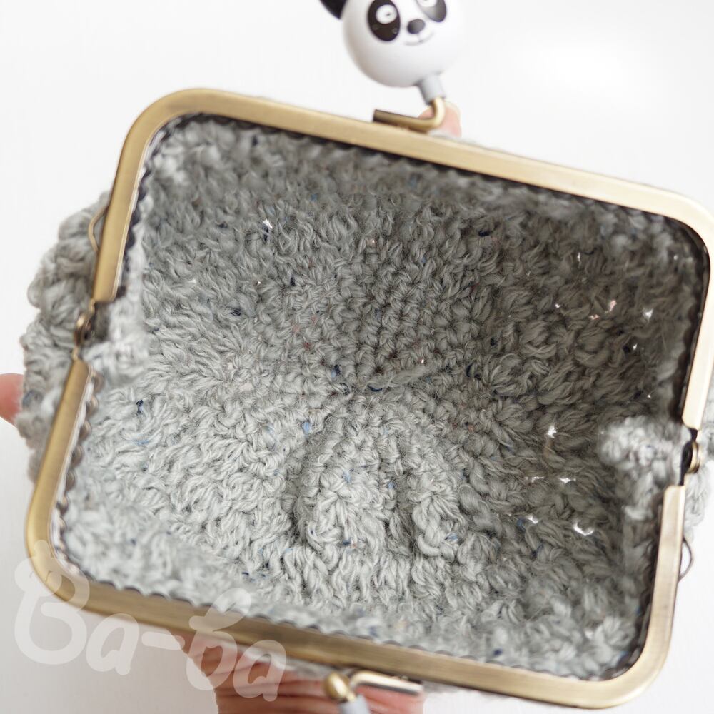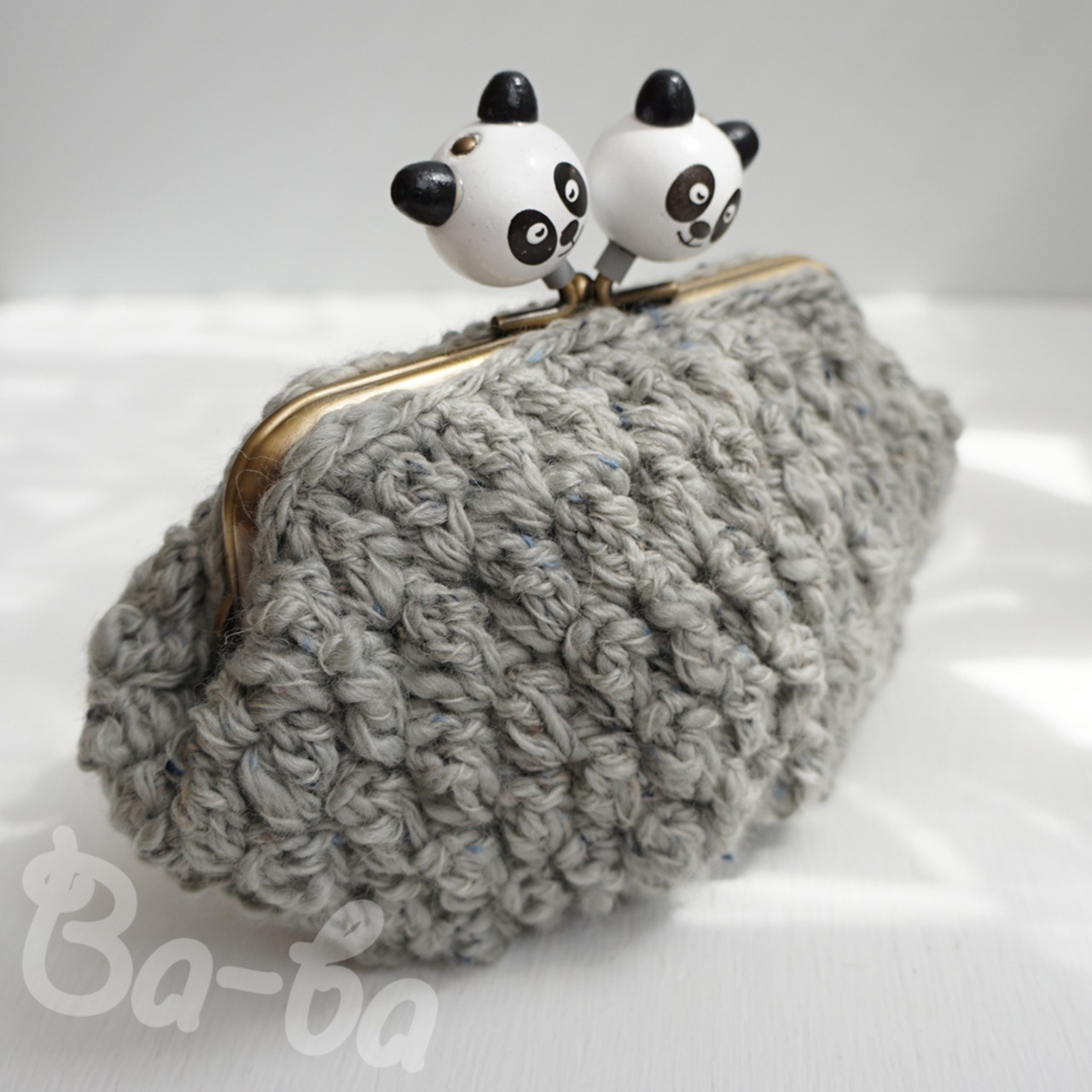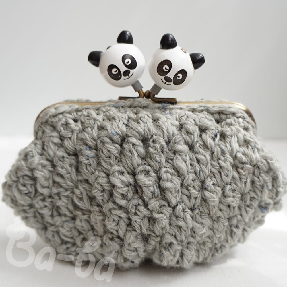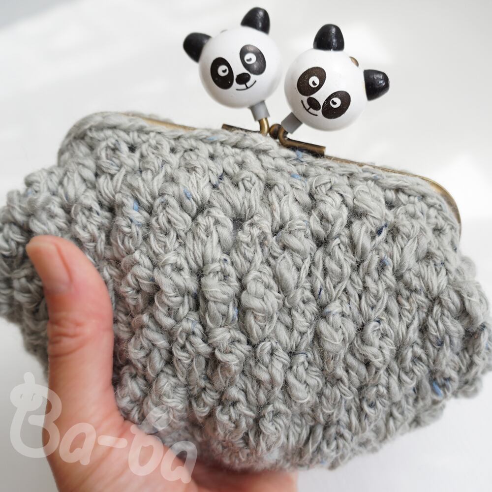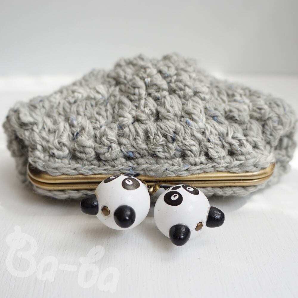 ばあば作 ♬ 仲良しパンダのパプコーン編みさらに大きめがま口(熊猫・C1477)