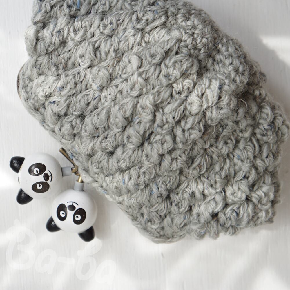 編地は温かみのあるツイードヤーンをパプコーン編みにしました。