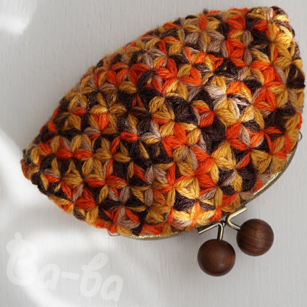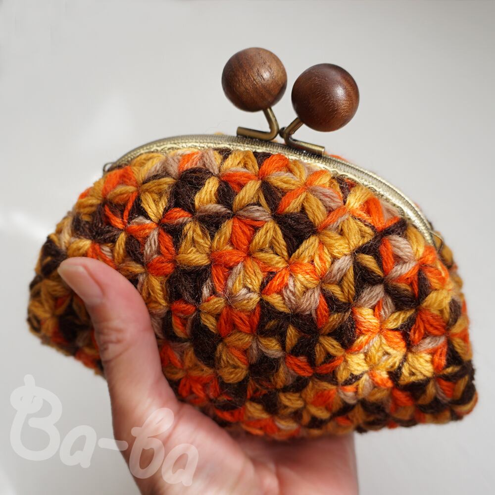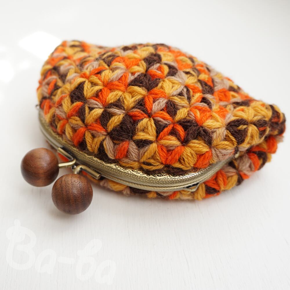 ばあば作・リフ編みのがま口ポーチ(ochiba・C1492)
