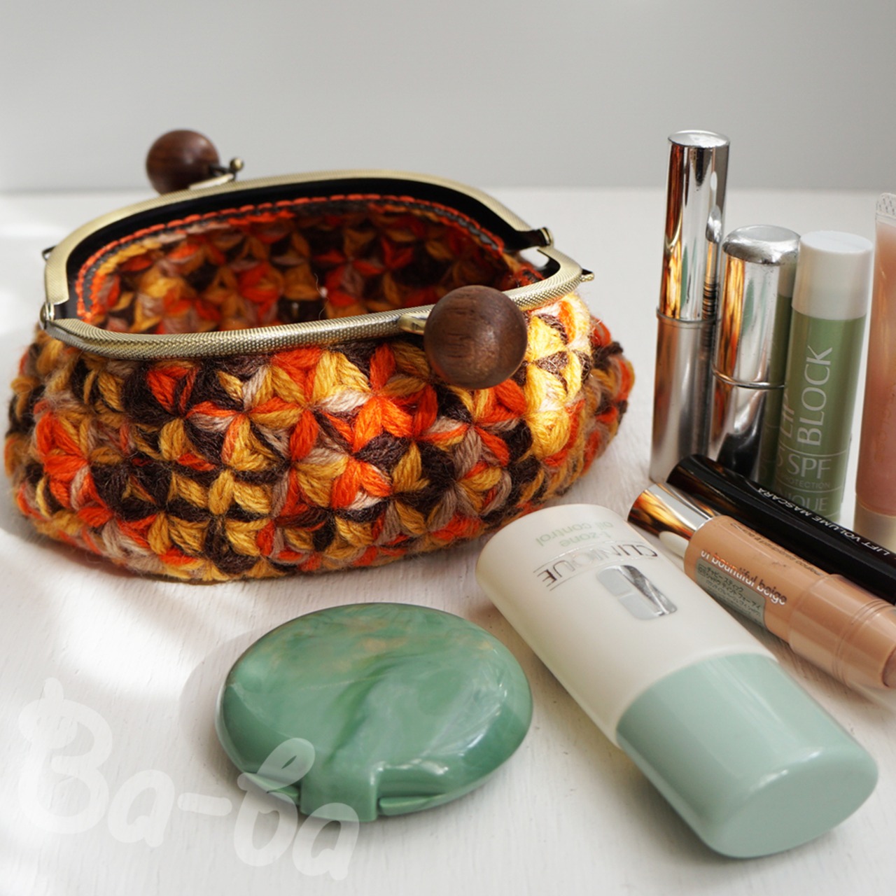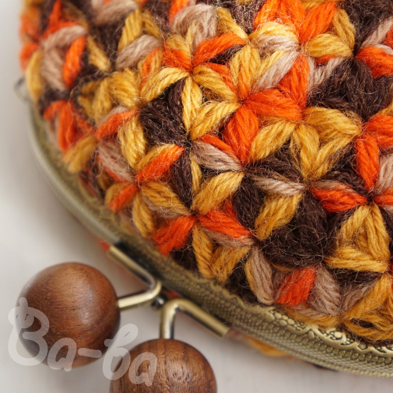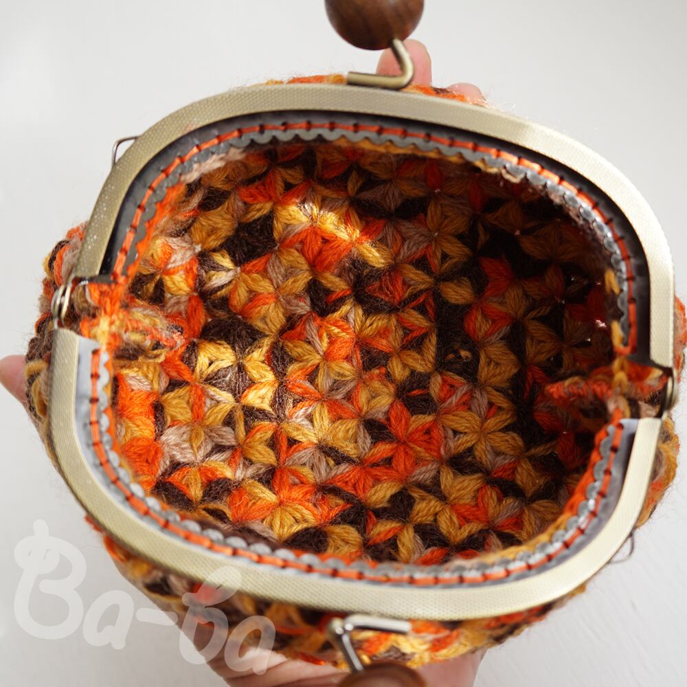 ばあば作・リフ編みのがま口ポーチ(ochiba・C1492)