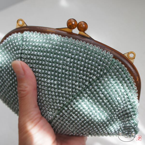 全面になめらかな3mmガラスビーズを編み込んでプチバッグを制作しました。