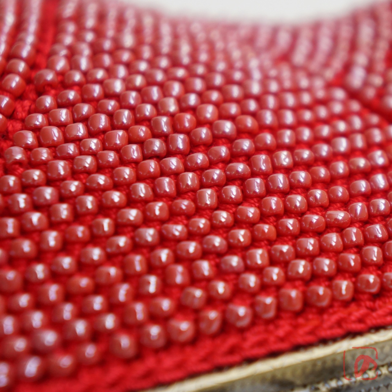 3mmガラスビーズをひとつぶづつ、全面に編み込みました。