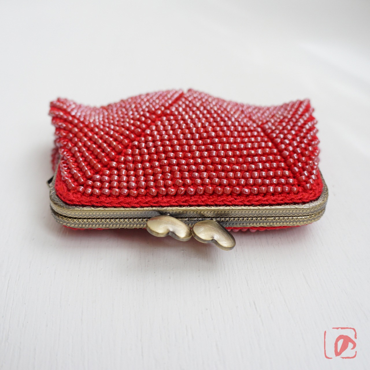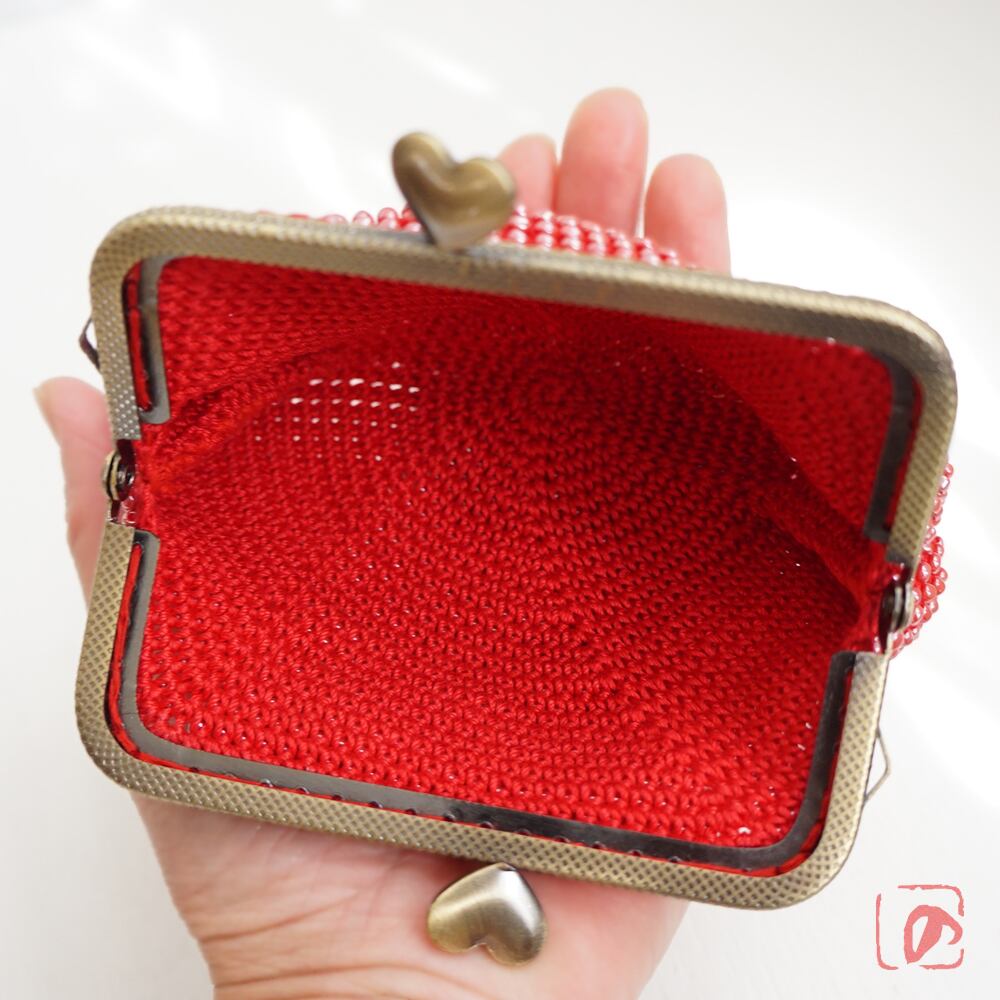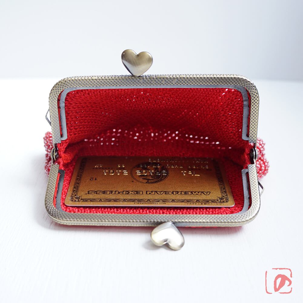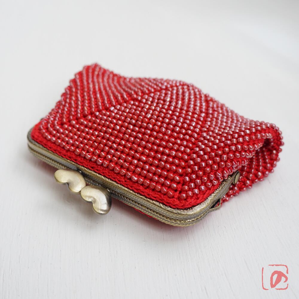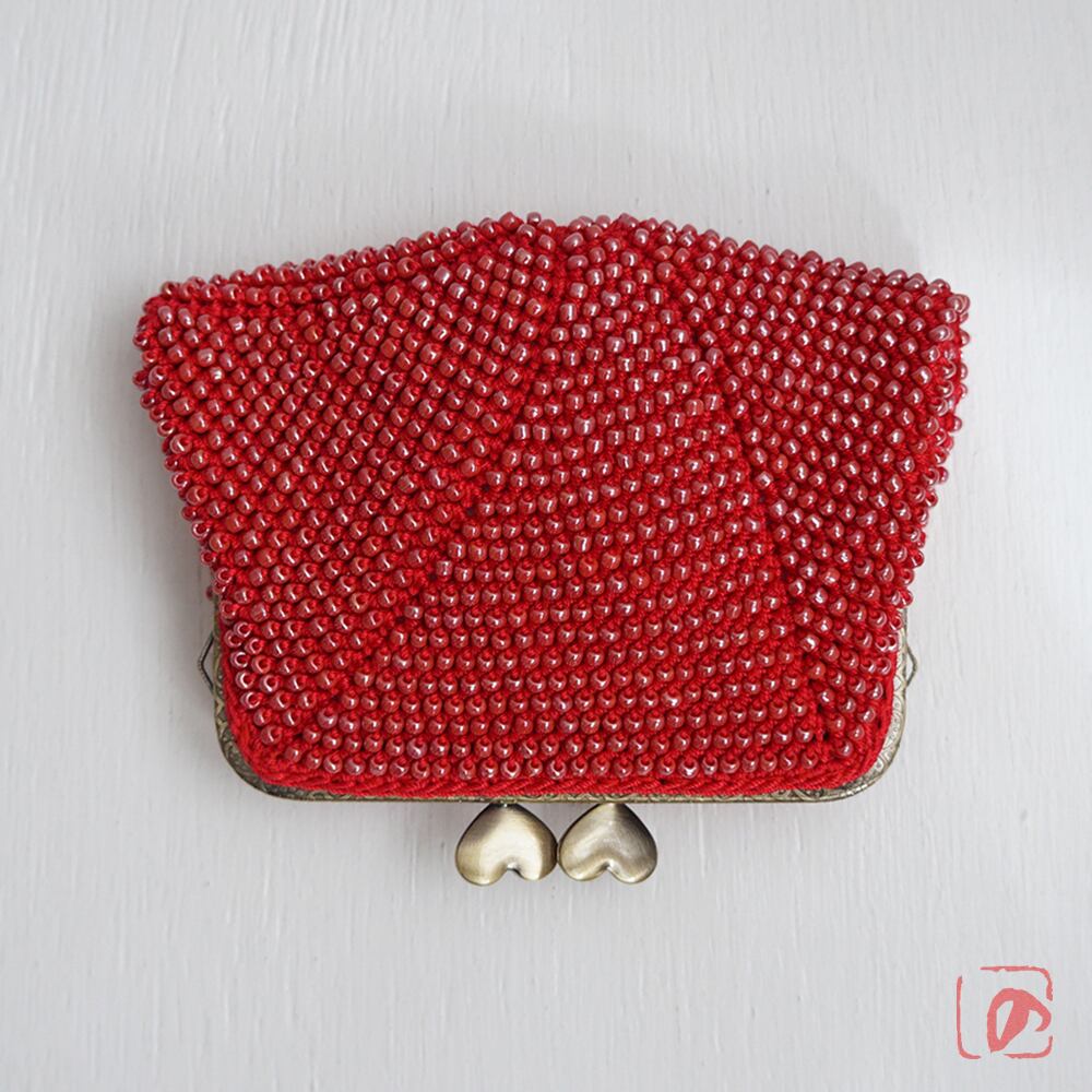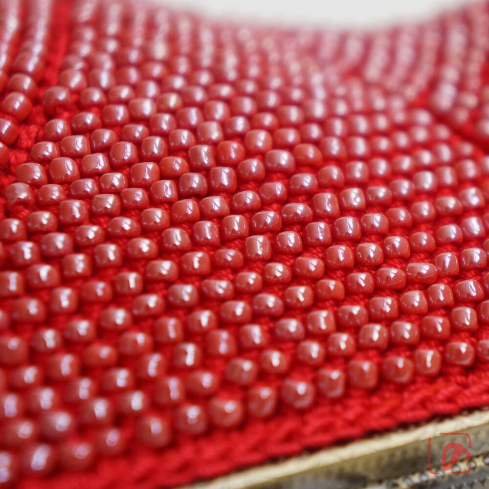 ばあば作☆大きめ・総ガラスビーズのスクエアがま口(rojo・1571)
