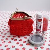 さらっとした手触りの糸を透け感のある透かし編みで編み上げ、がま口に仕上げました。