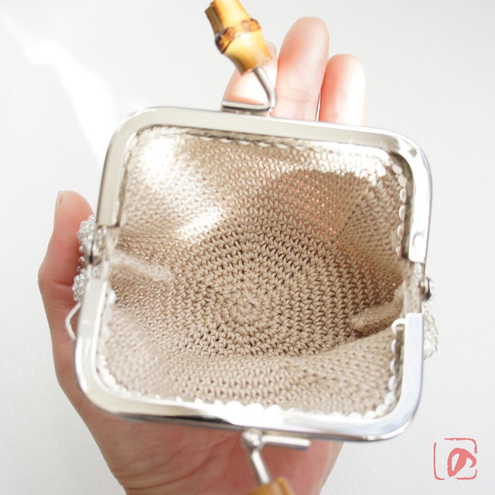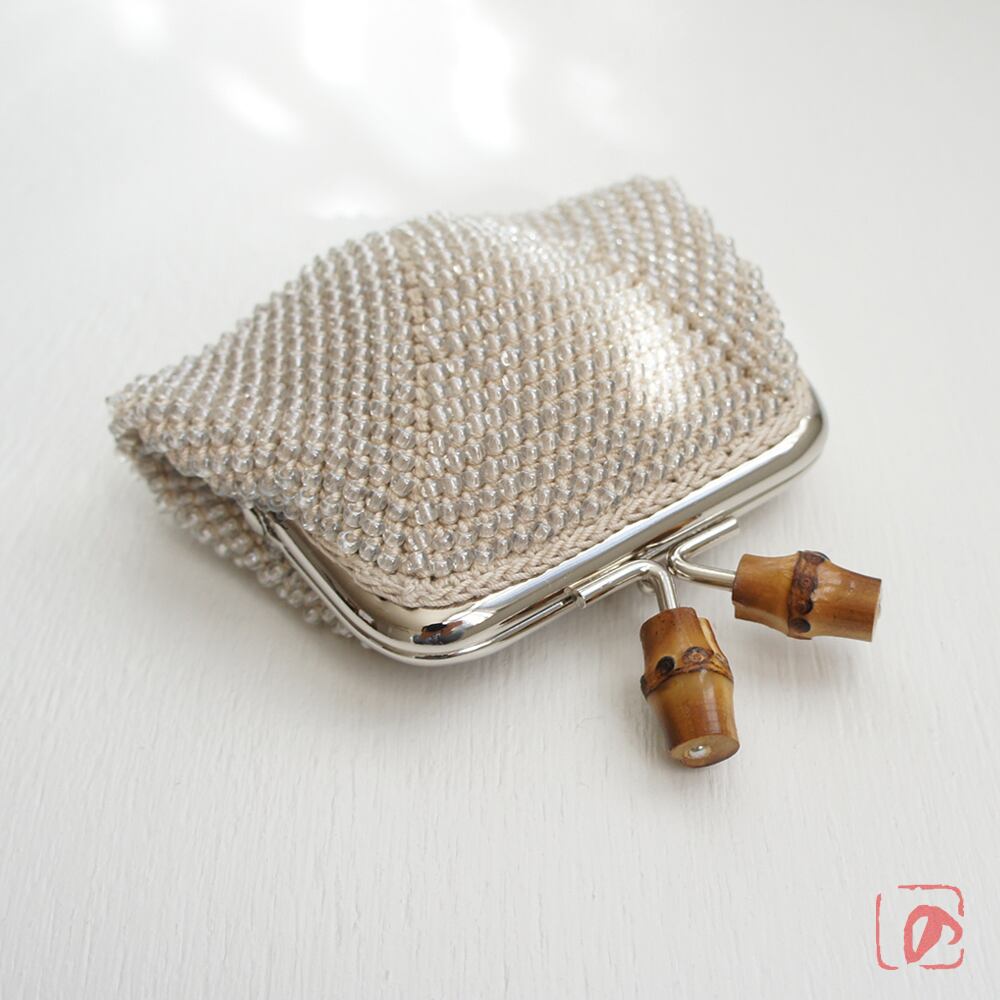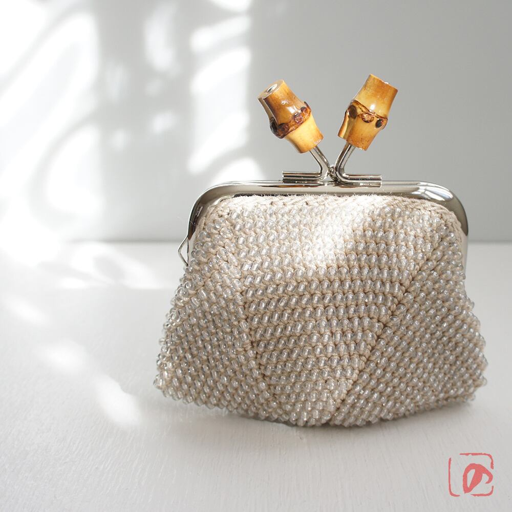 ばあば作☆☆総ガラスビーズのスクエアがま口(bambus・1357)