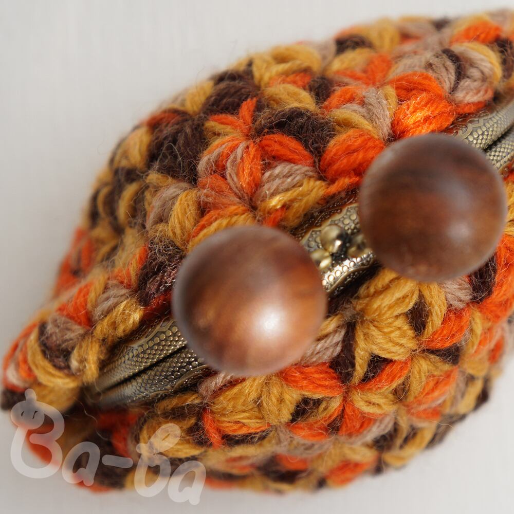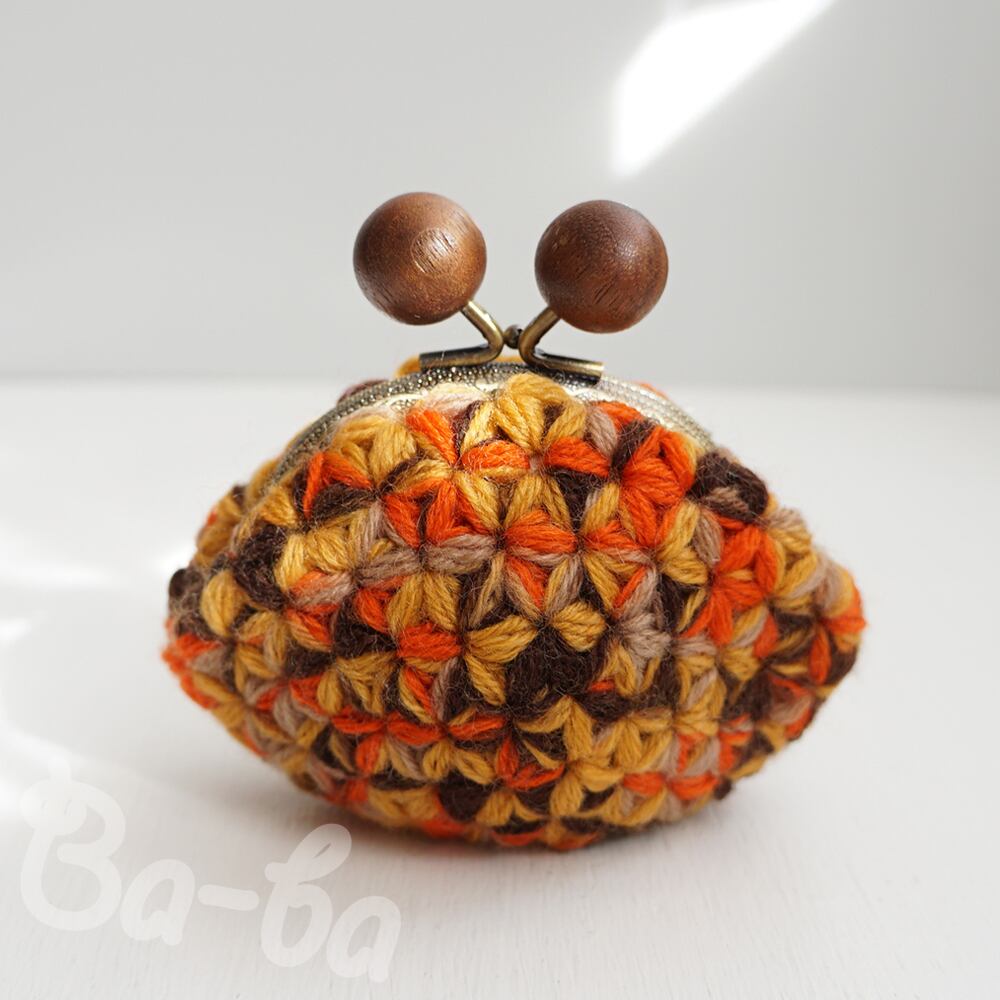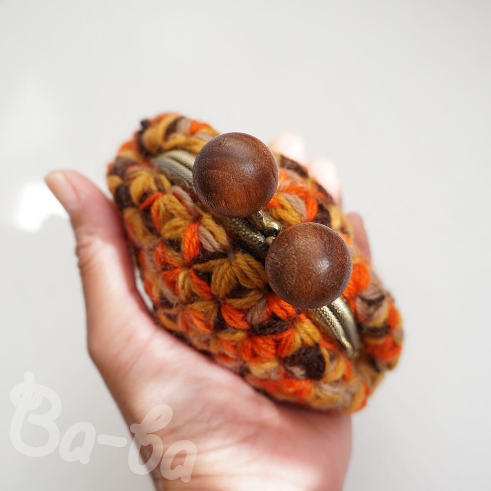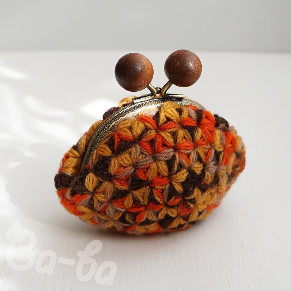 ばあば作、リフ編みがま口(foglie morte・C1491)