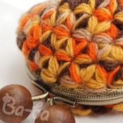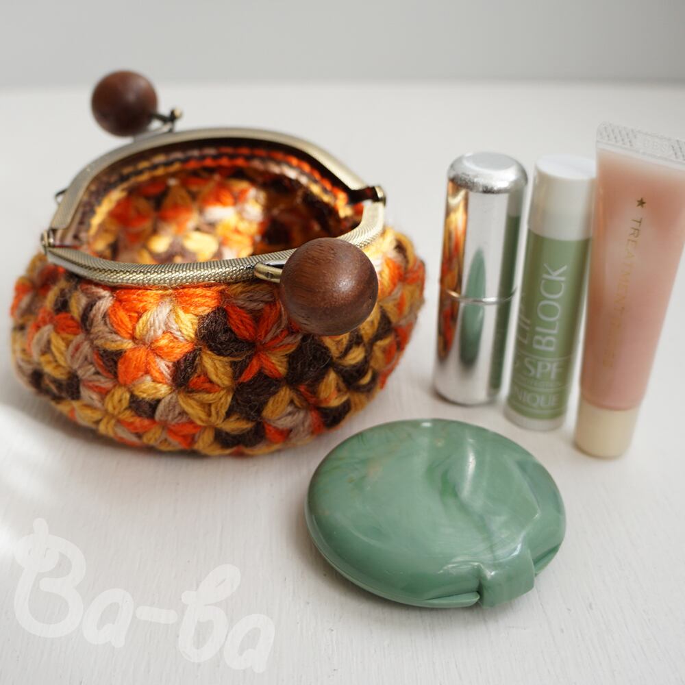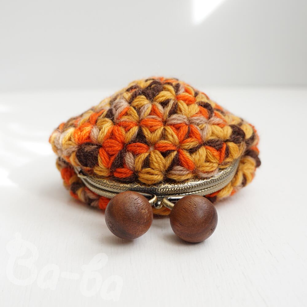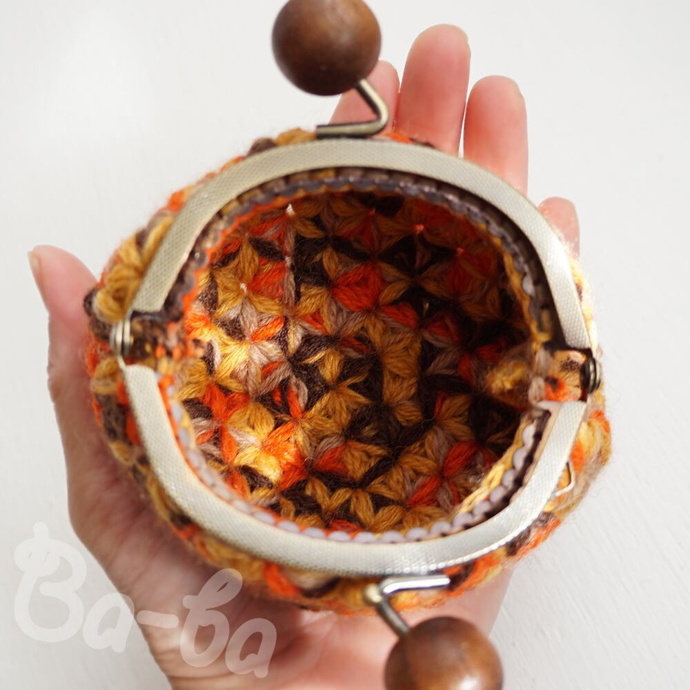 ばあば作、リフ編みがま口(foglie morte・C1491)