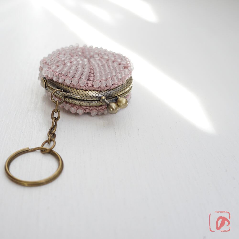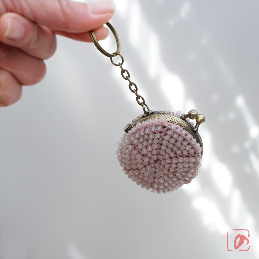 3mmのガラスビーズをひとつぶづつ編み込んだがま口です。