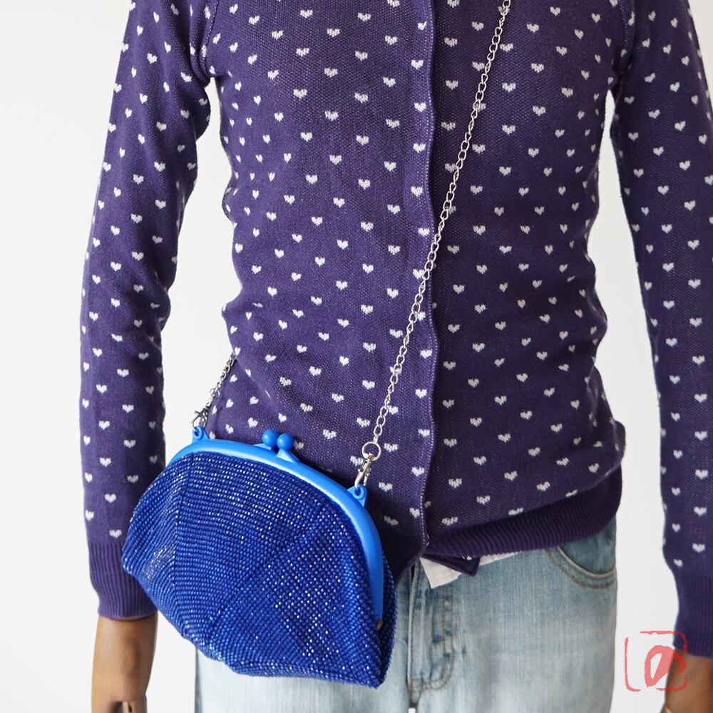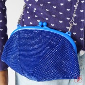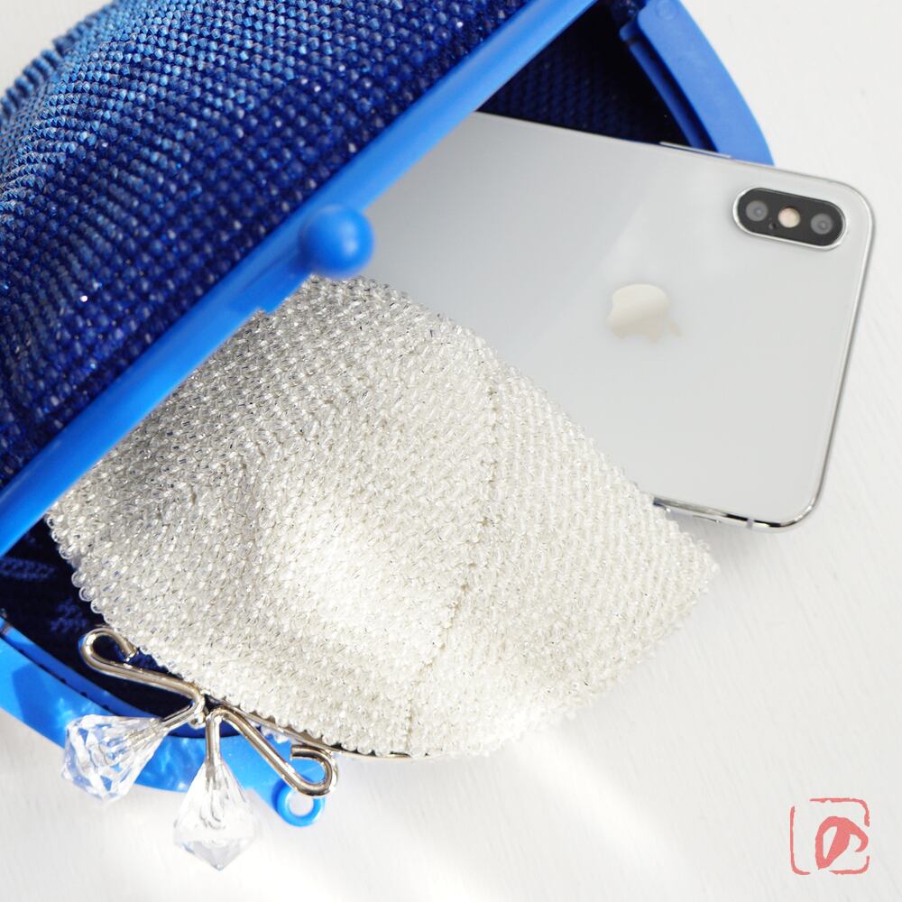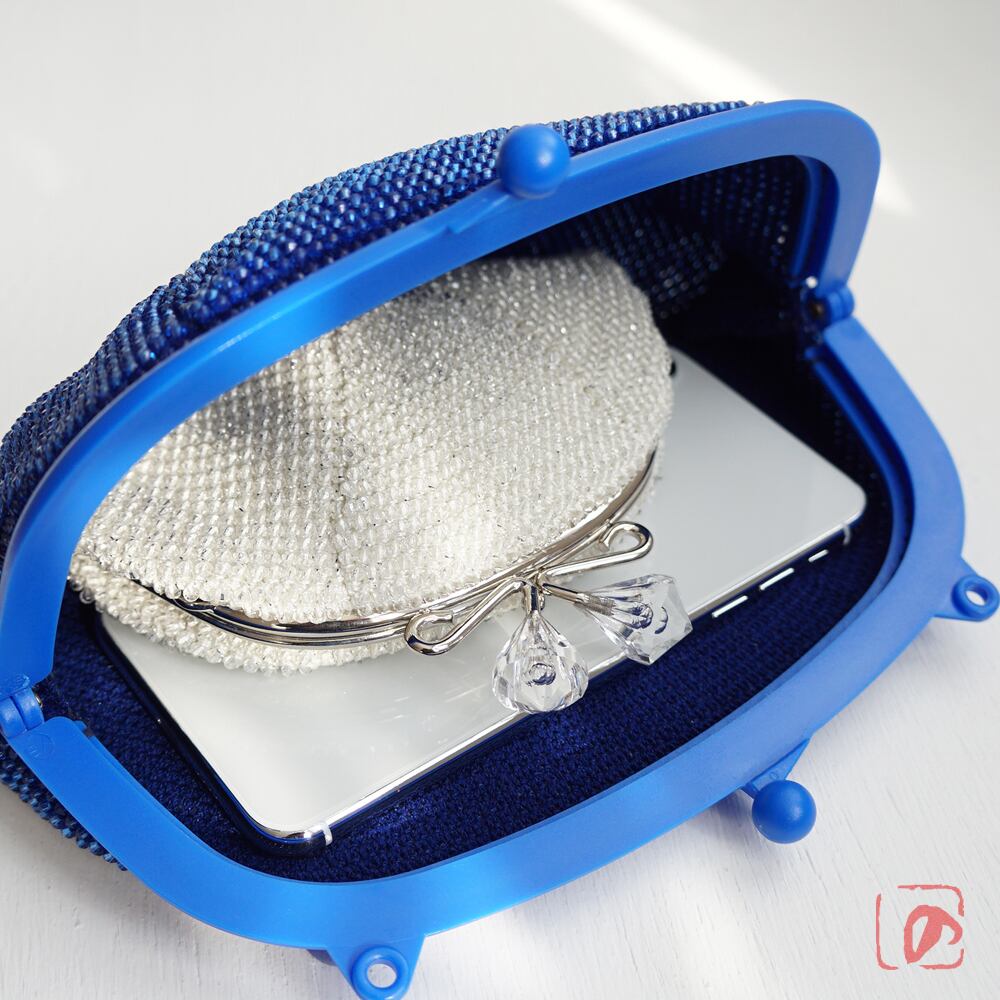 ばあば作☆キラキラ☆☆アクリルビーズのがま口バッグ(marine・1581)