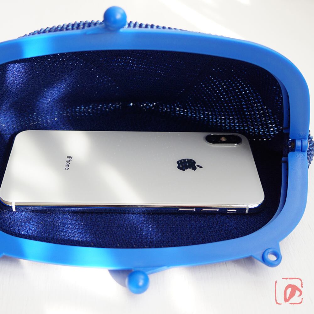 スマホ、12.5cmがま口もすっぽり入る大きさに出来上がりました。