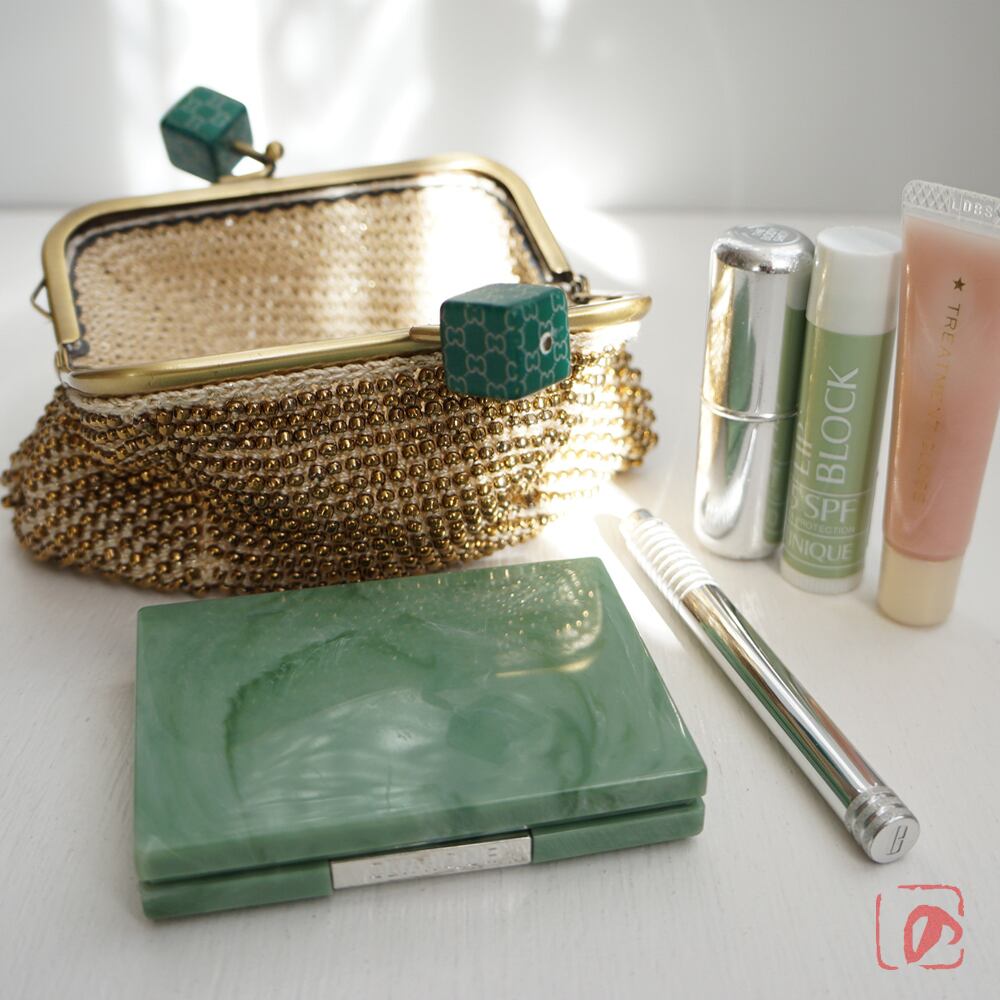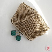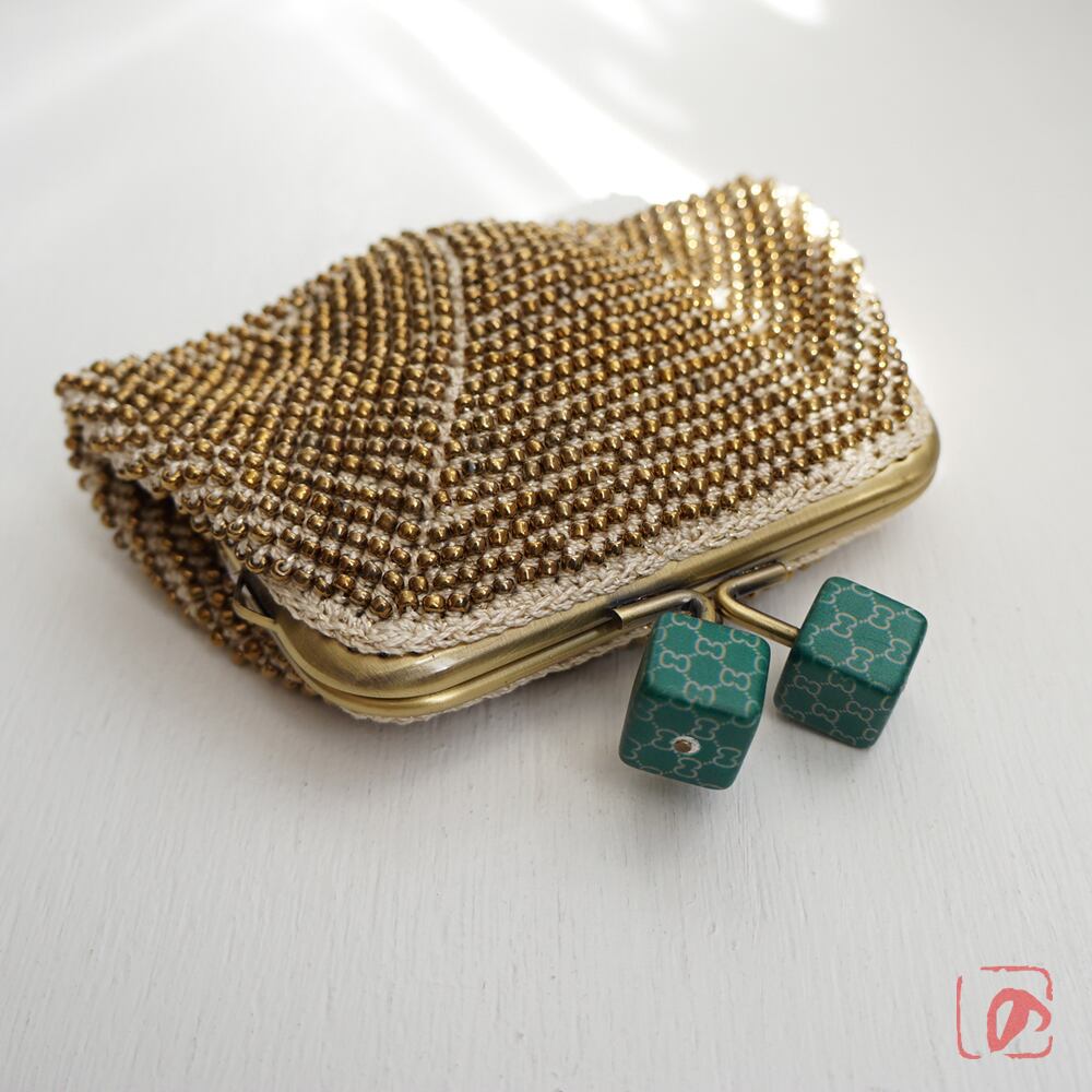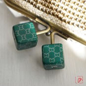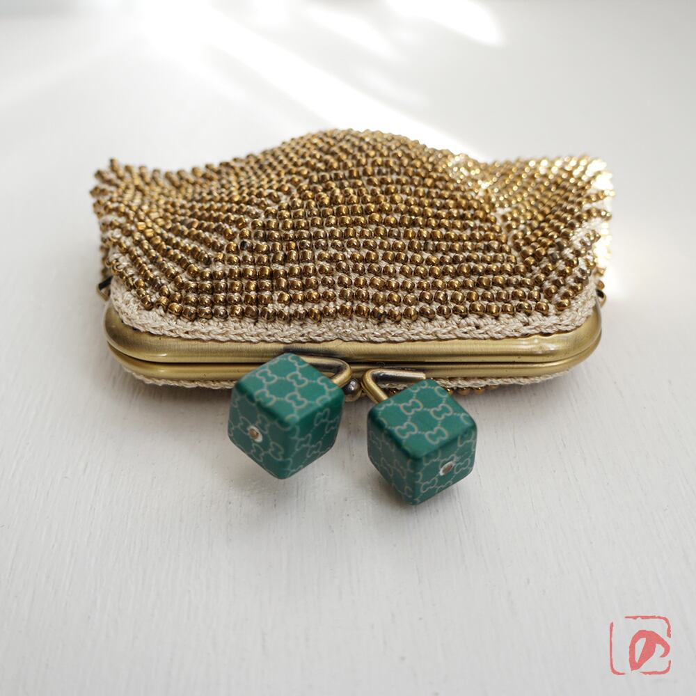 グリーンのレトロモノグラム柄のキューブビーズをつまみに使用しました。