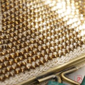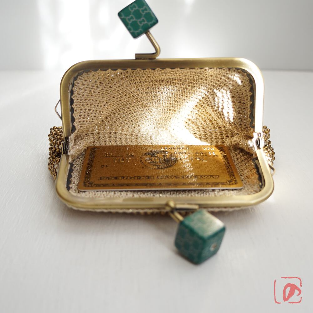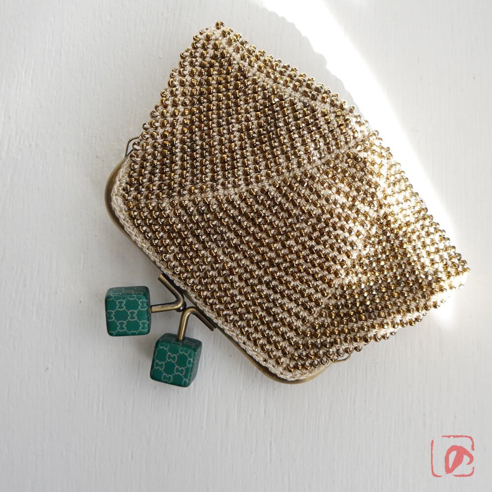 ばあば作、大きめ・総ガラスビーズのスクエアがま口(モノグラム・1579)