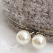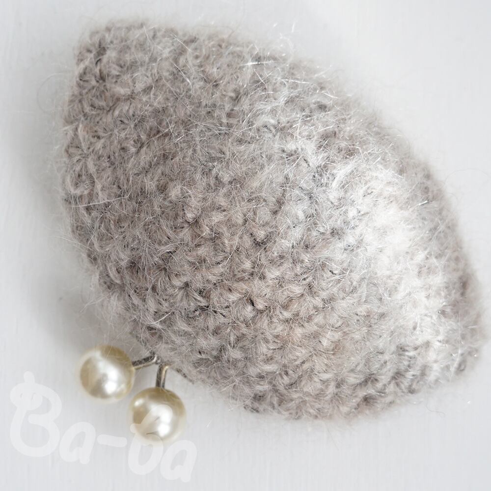 ふわふわの編み地に、パールのつまみを組み合わせました。