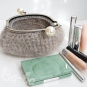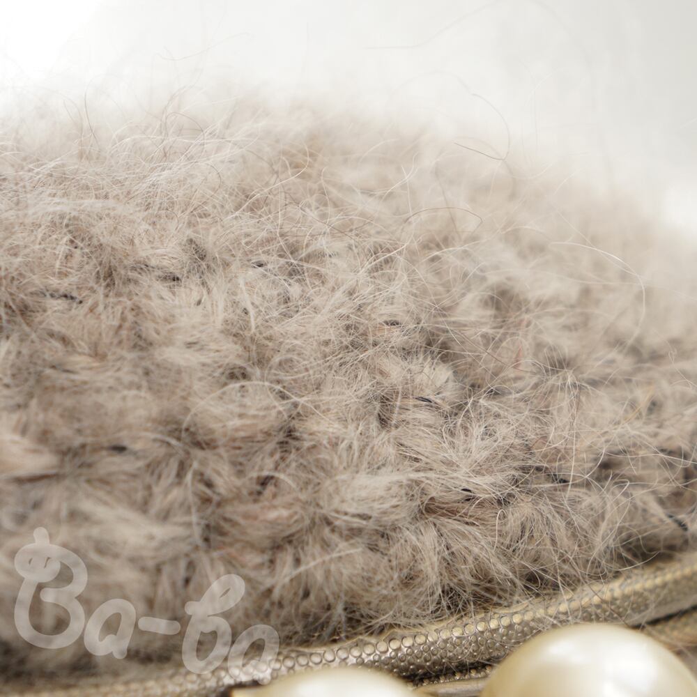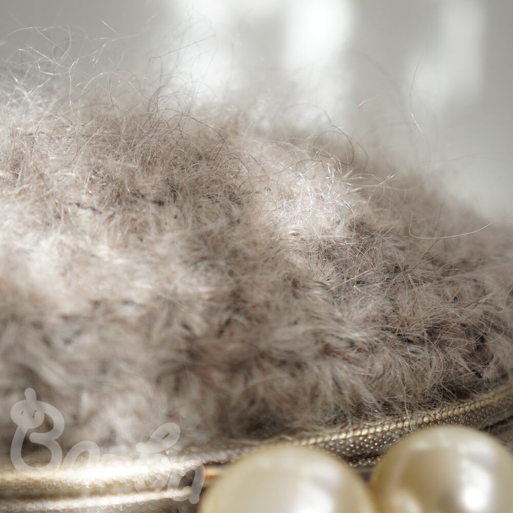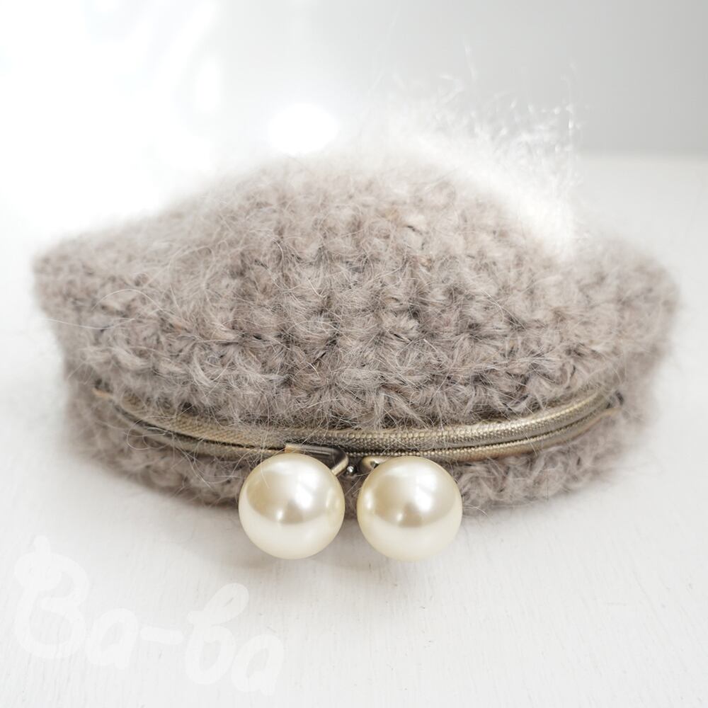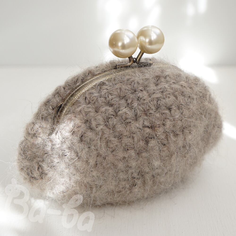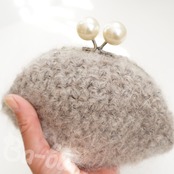 毛足の長いモヘヤ毛糸をふんわりと編み上げ、がま口に仕上げました。