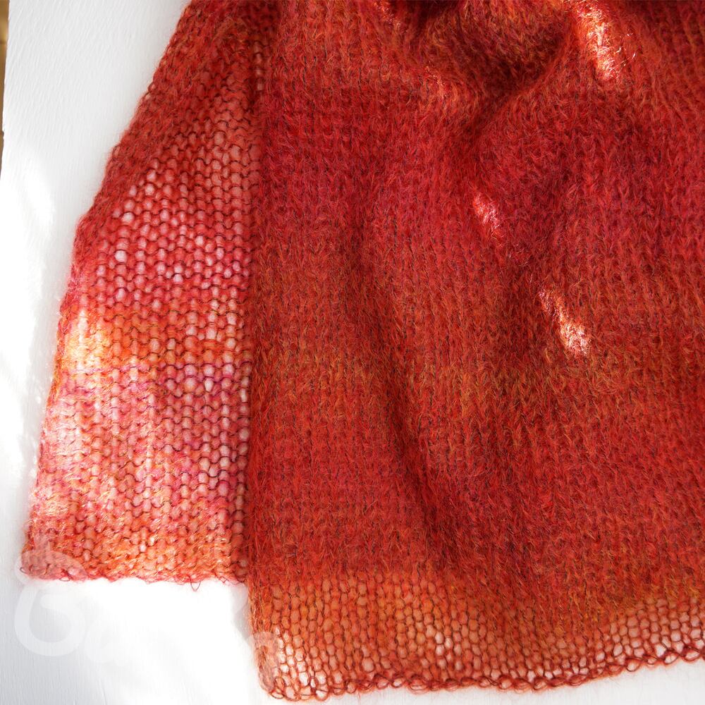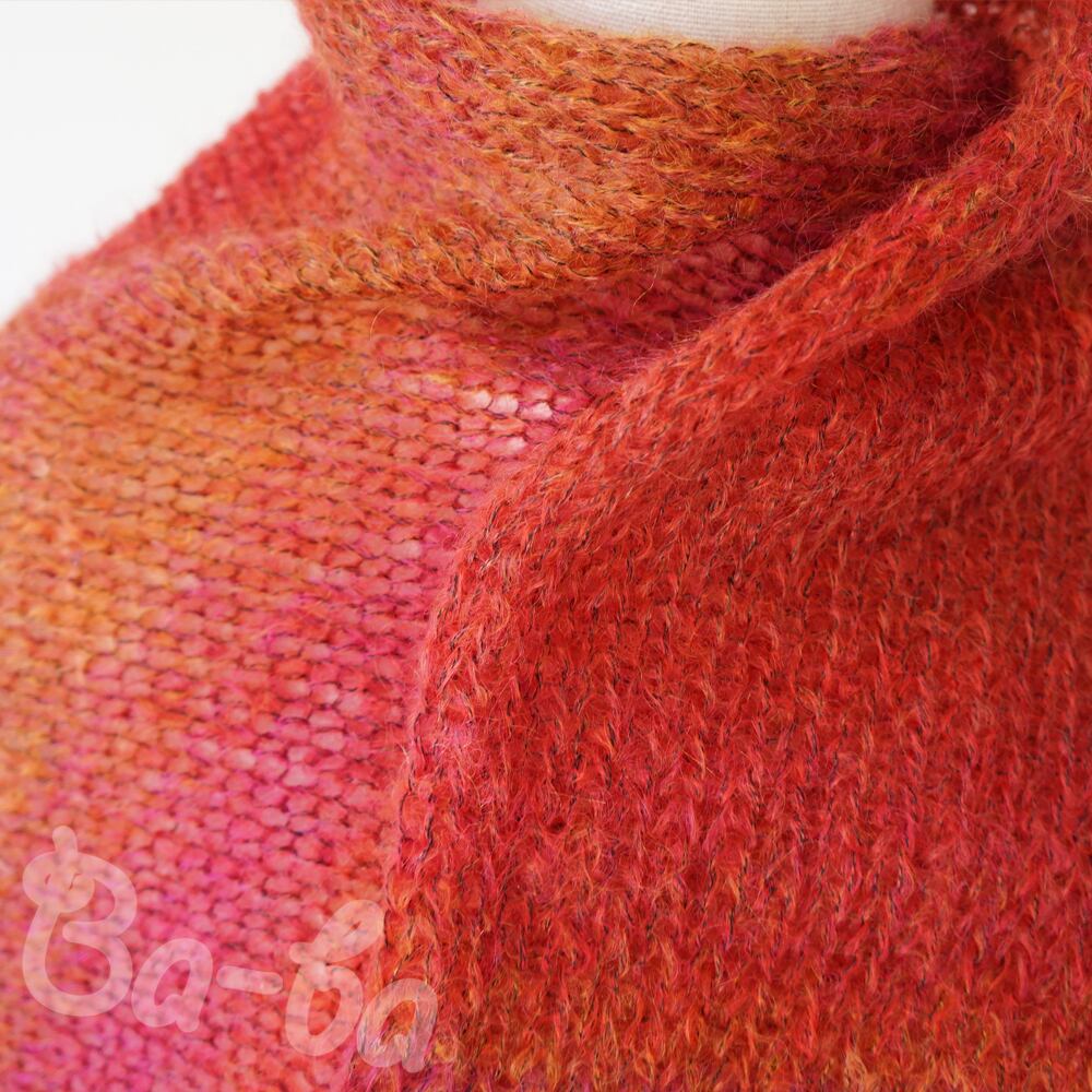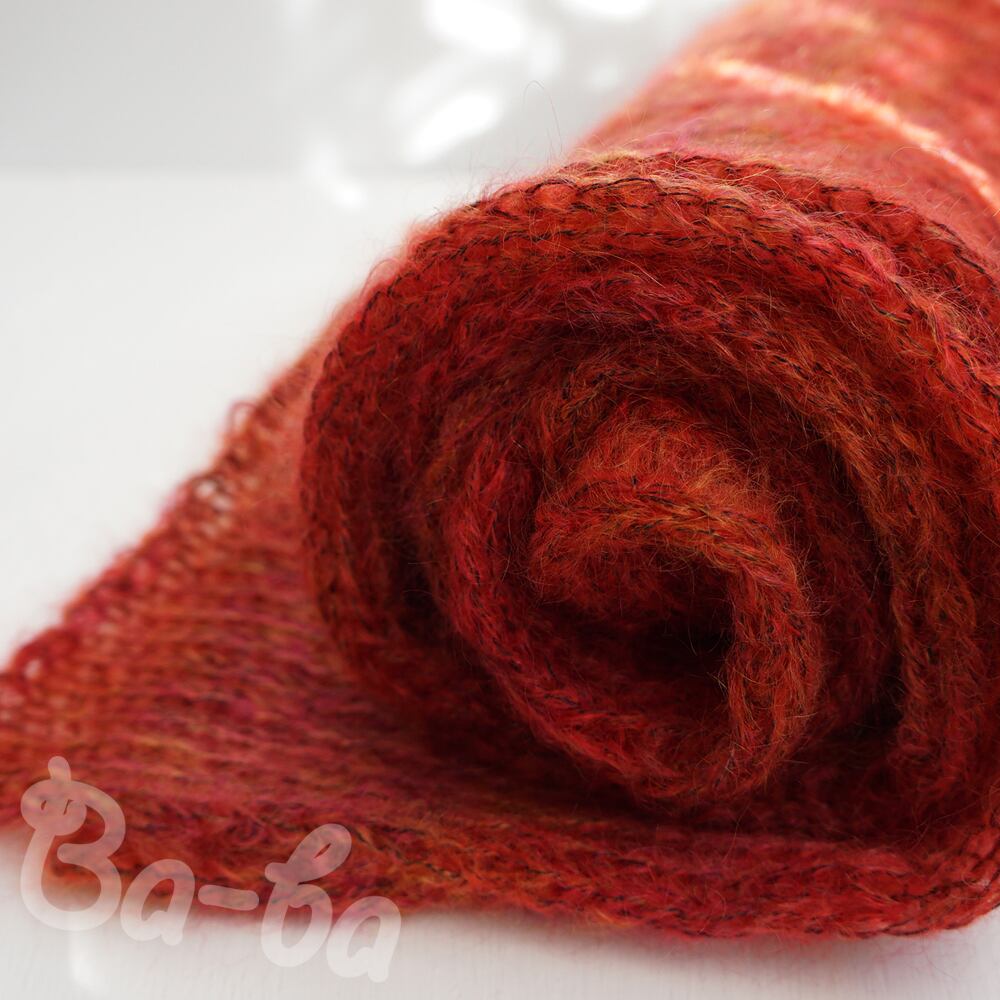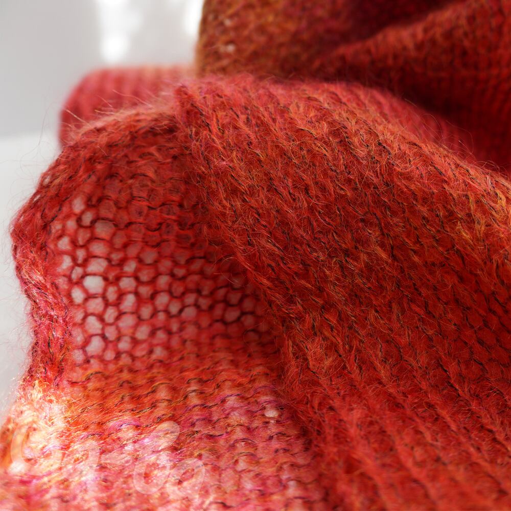ウール混紡モヘヤ(毛・キッドモヘヤ72%、ナイロン28%。ワインレッド、オレンジグラデーション)