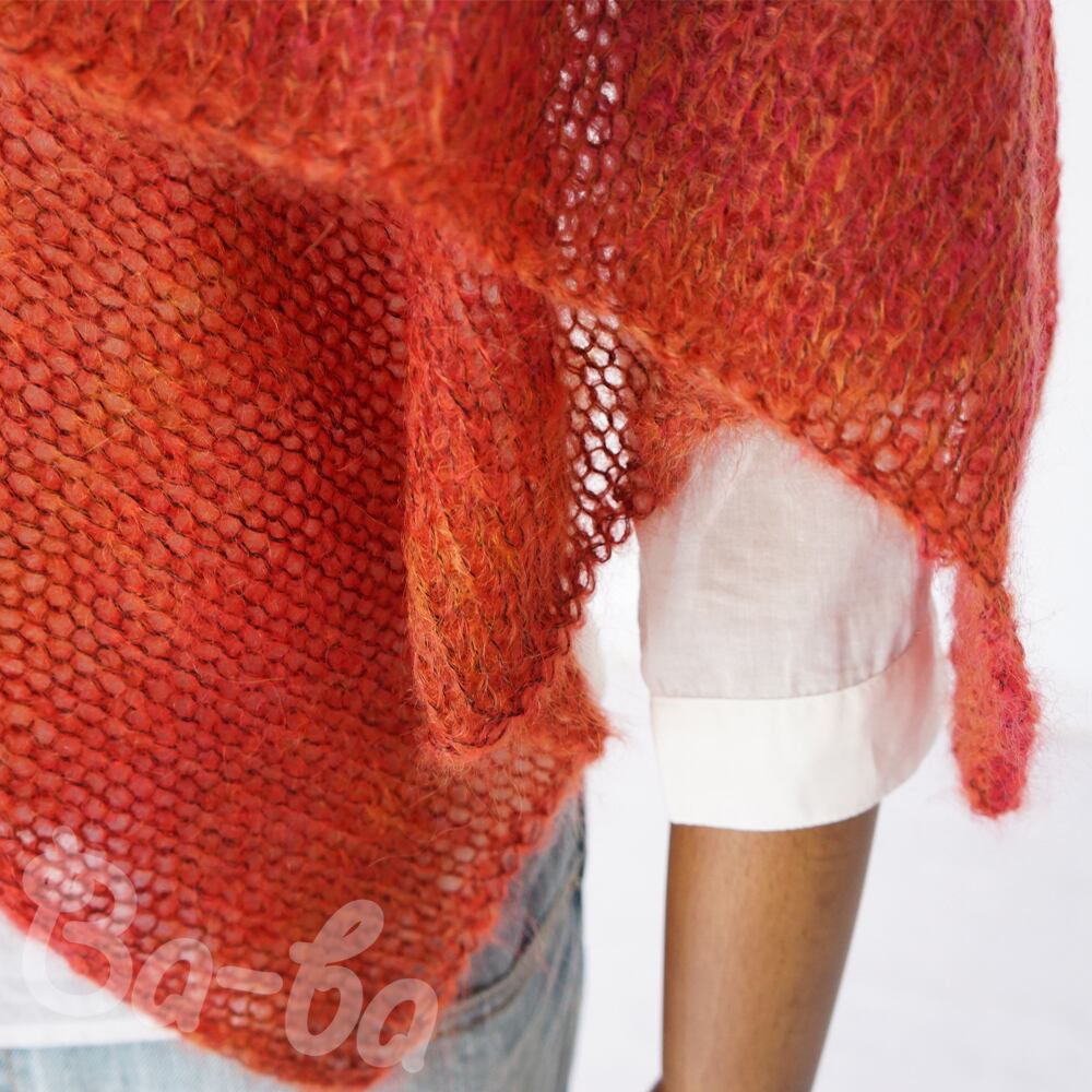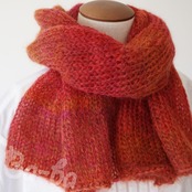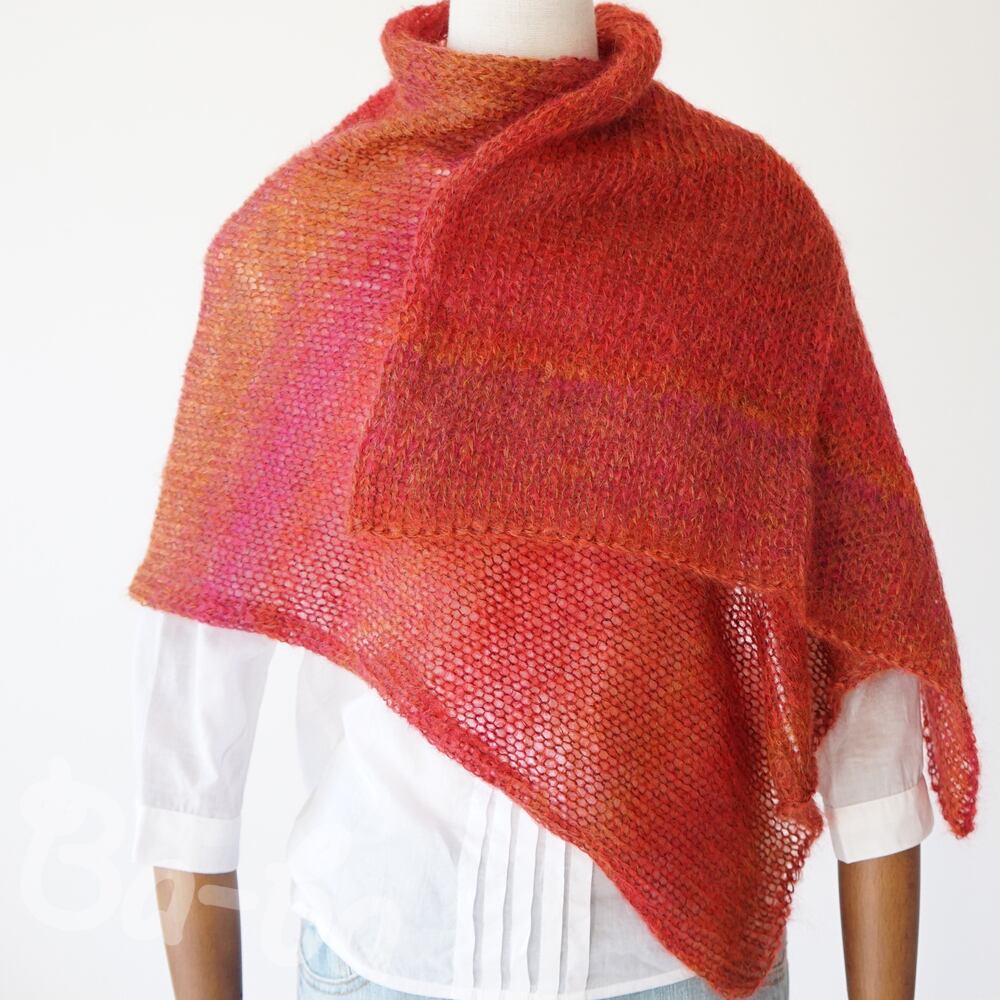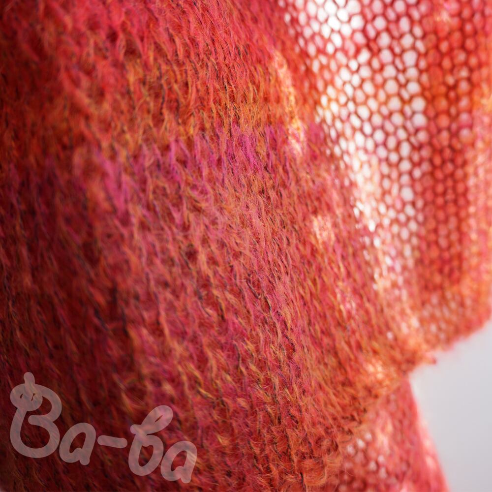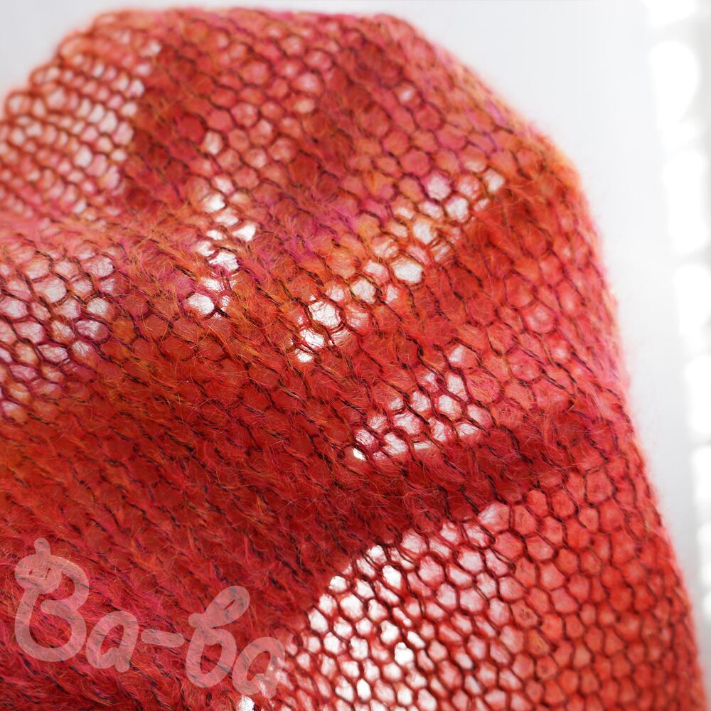 ウール混紡モヘヤ(毛・キッドモヘヤ72%、ナイロン28%。ワインレッド、オレンジグラデーション)