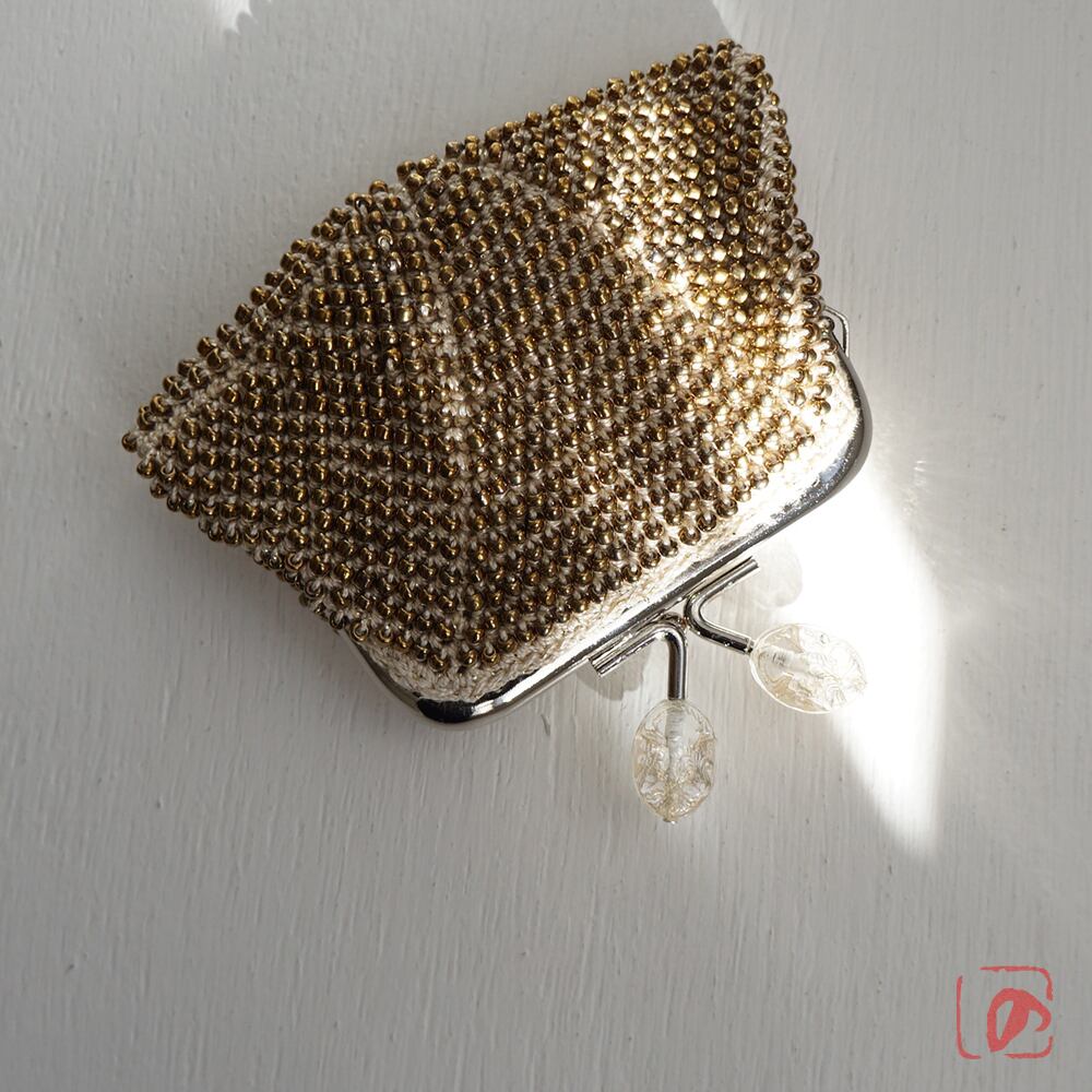 ばあば作☆☆総ガラスビーズのスクエアがま口(cameo・1578)