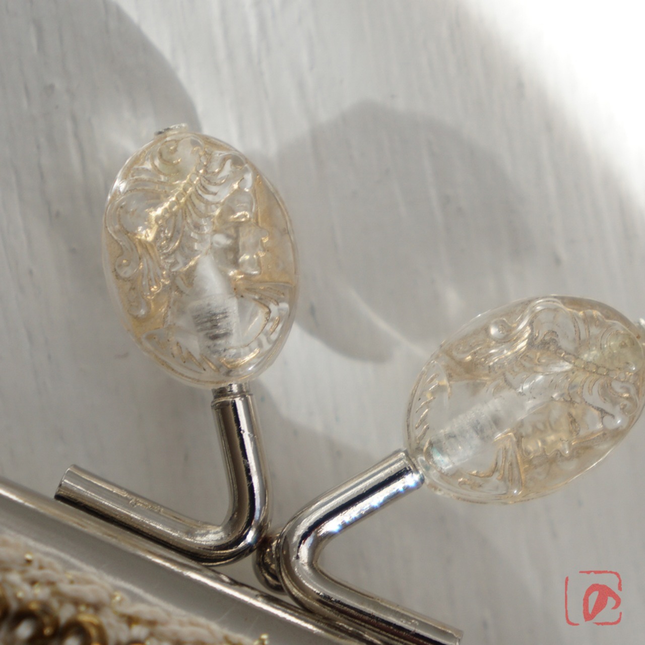 フランスアンティークのようなクリア×ゴールドのカメオ風ビーズをつまみにしました。
