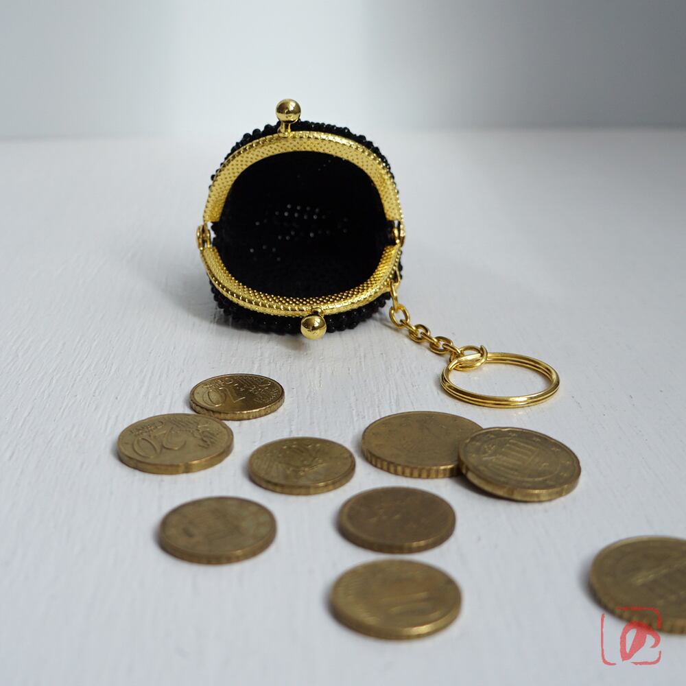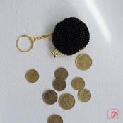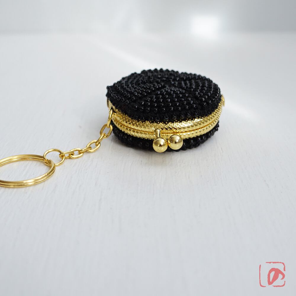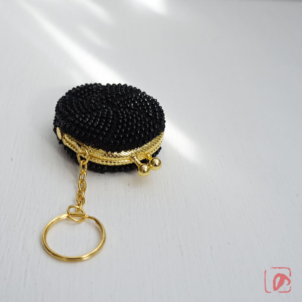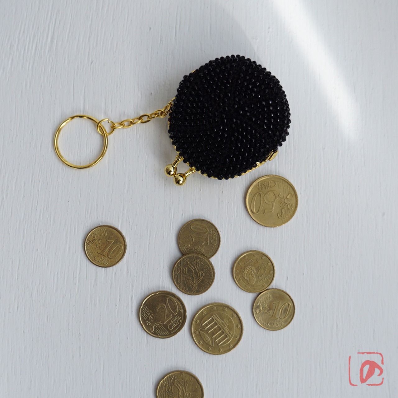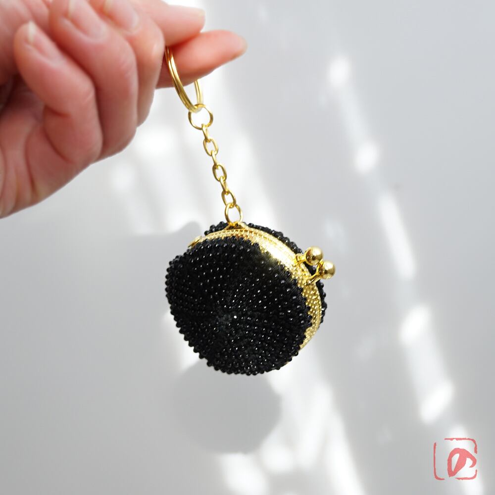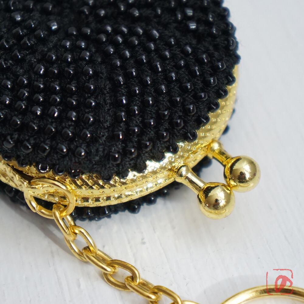 ばあば作☆シードビーズのminiminiまるがま口(noir・1585)