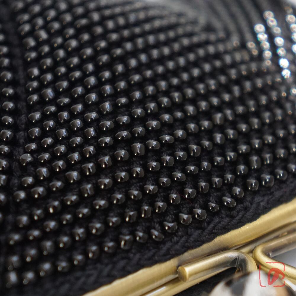 3mmのガラスビーズをひとつぶづつ、全面に編み込みました。