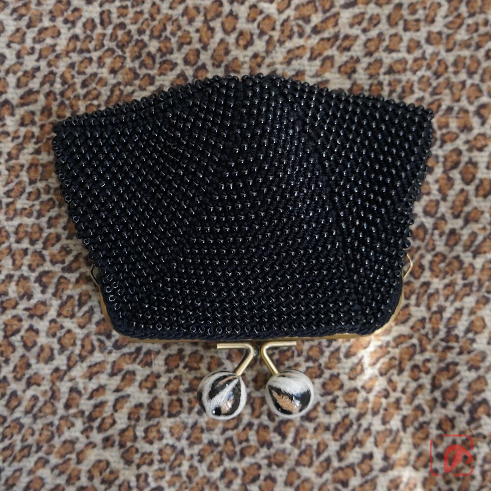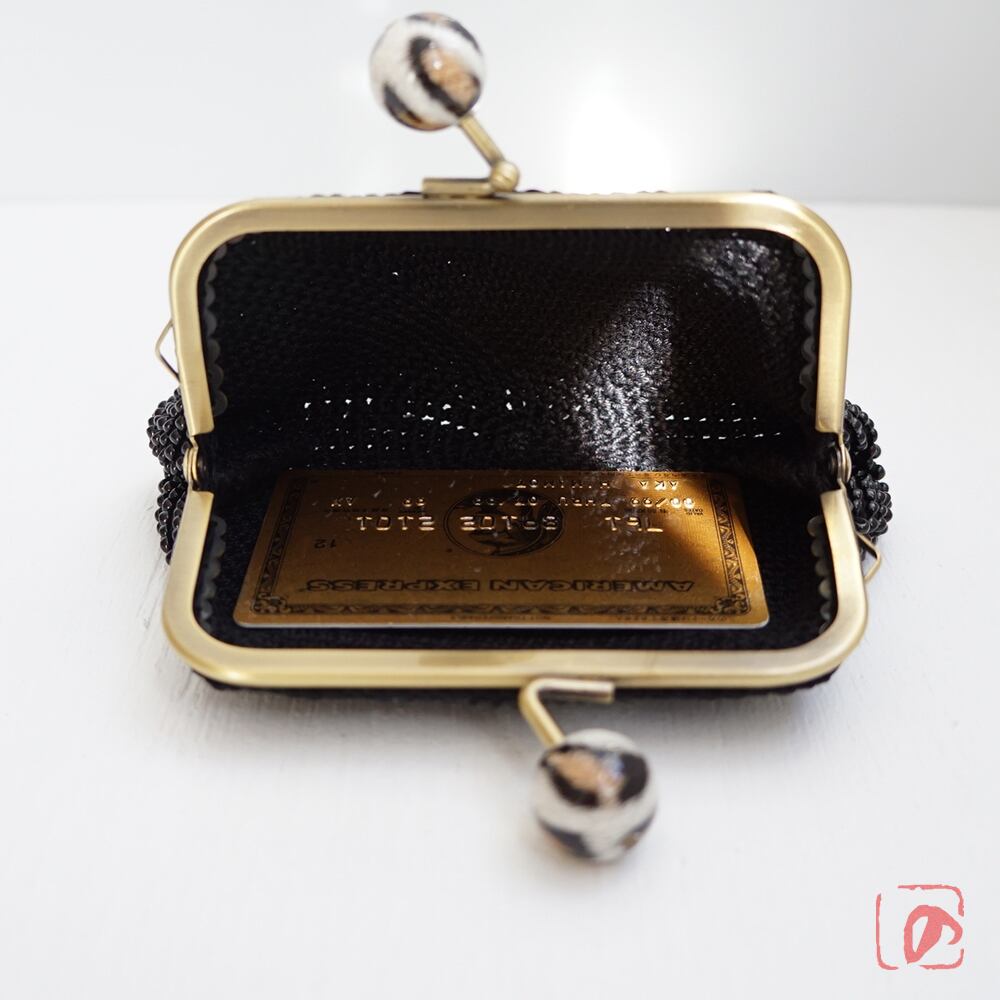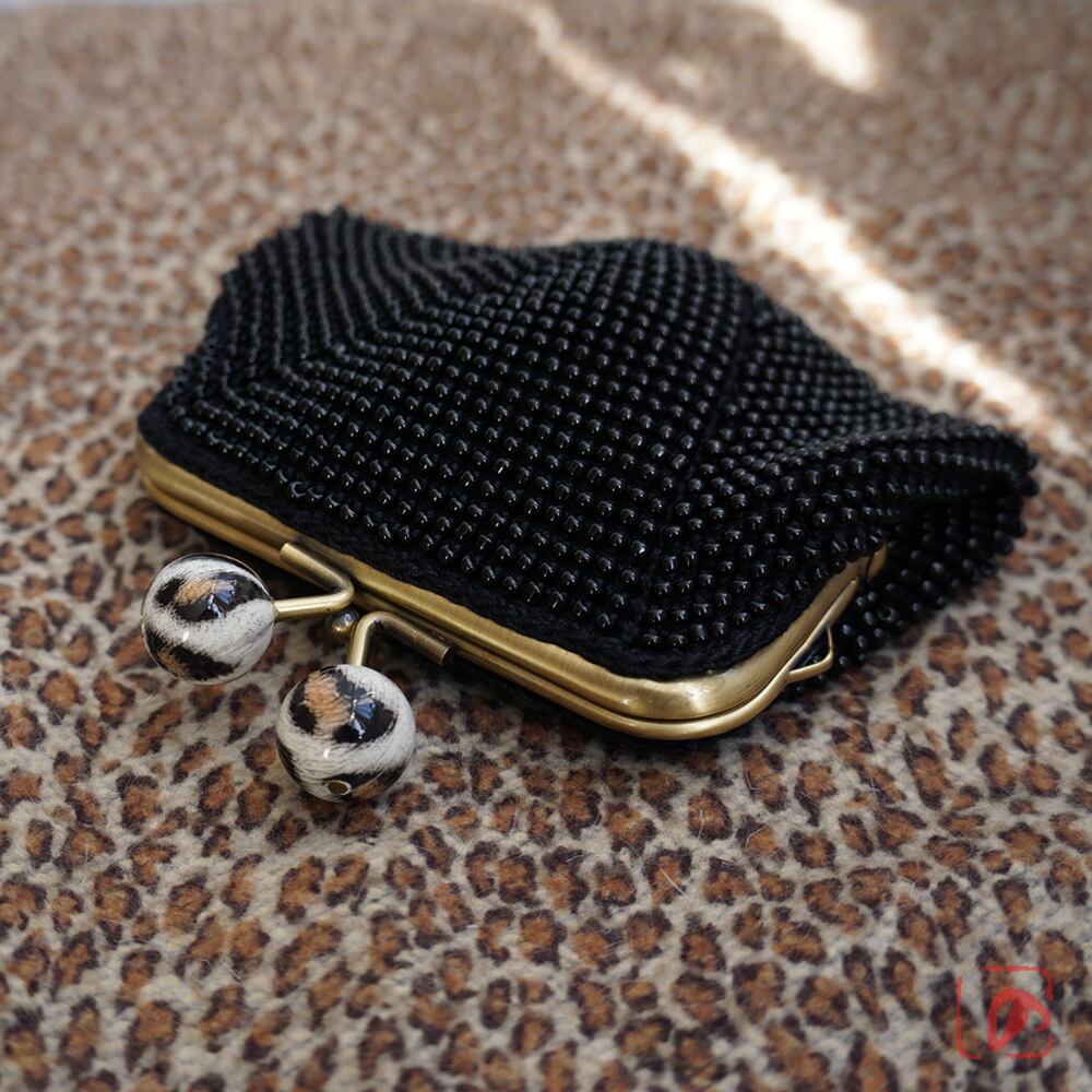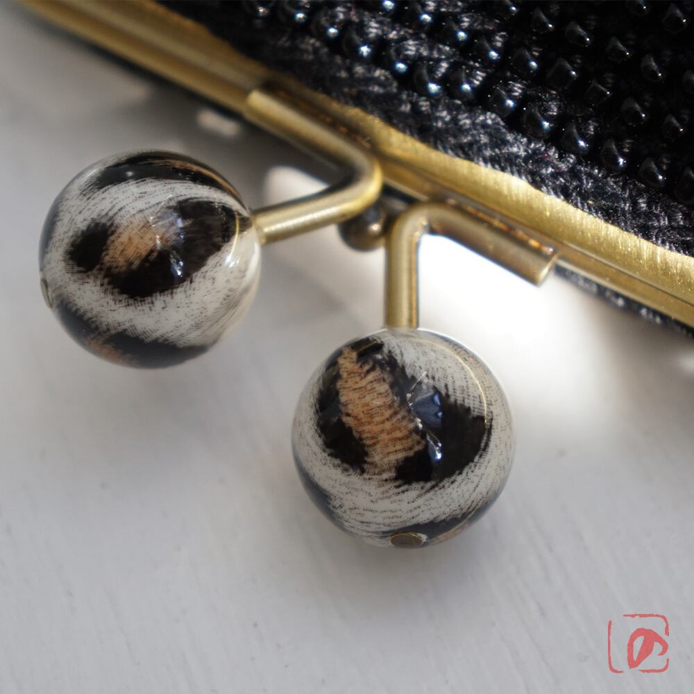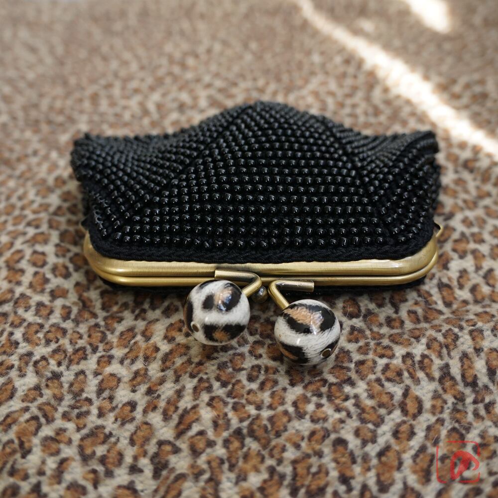 ばあば作、大きめ・総ガラスビーズのスクエアがま口(leopard・1586)