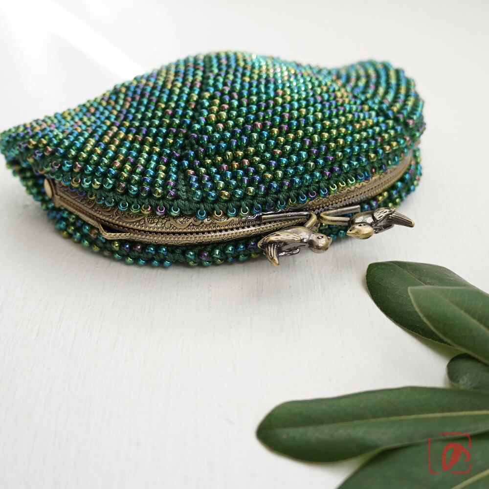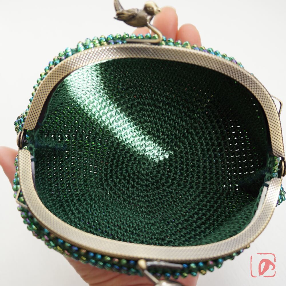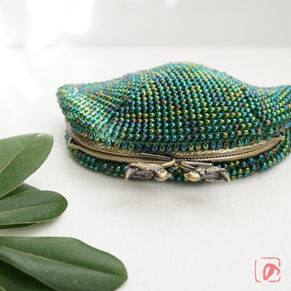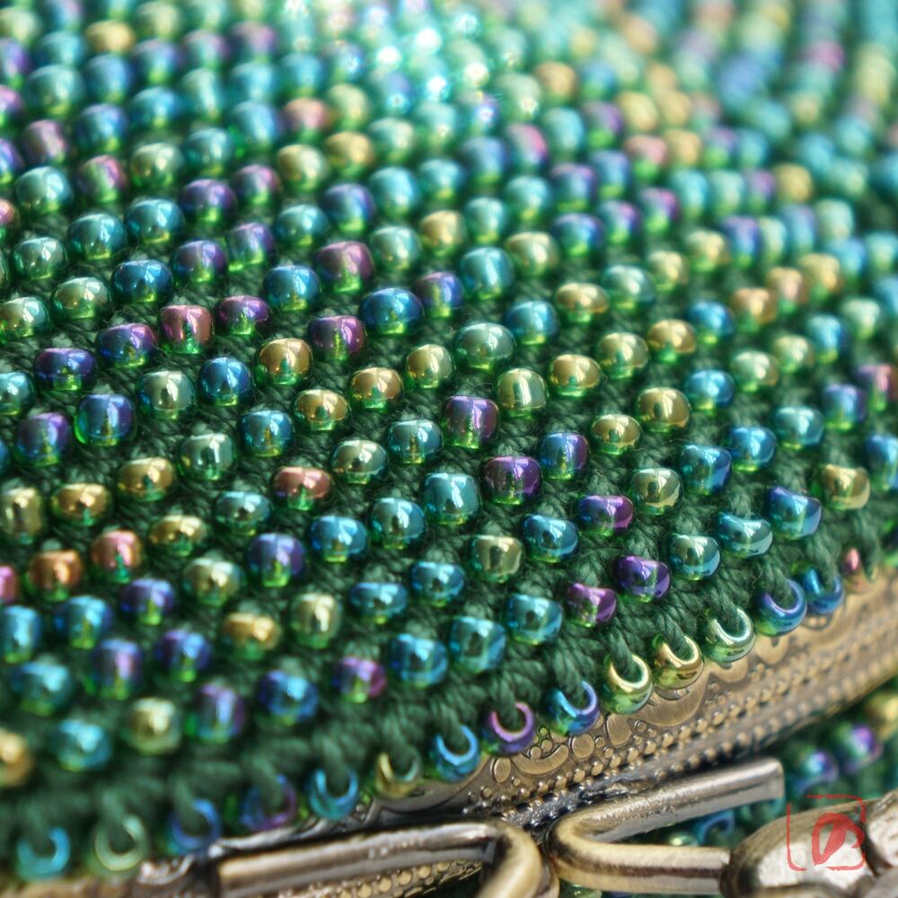 ばあば作☆☆さらに大きめ☆ガラスビーズがま口(verde scuro・1591)