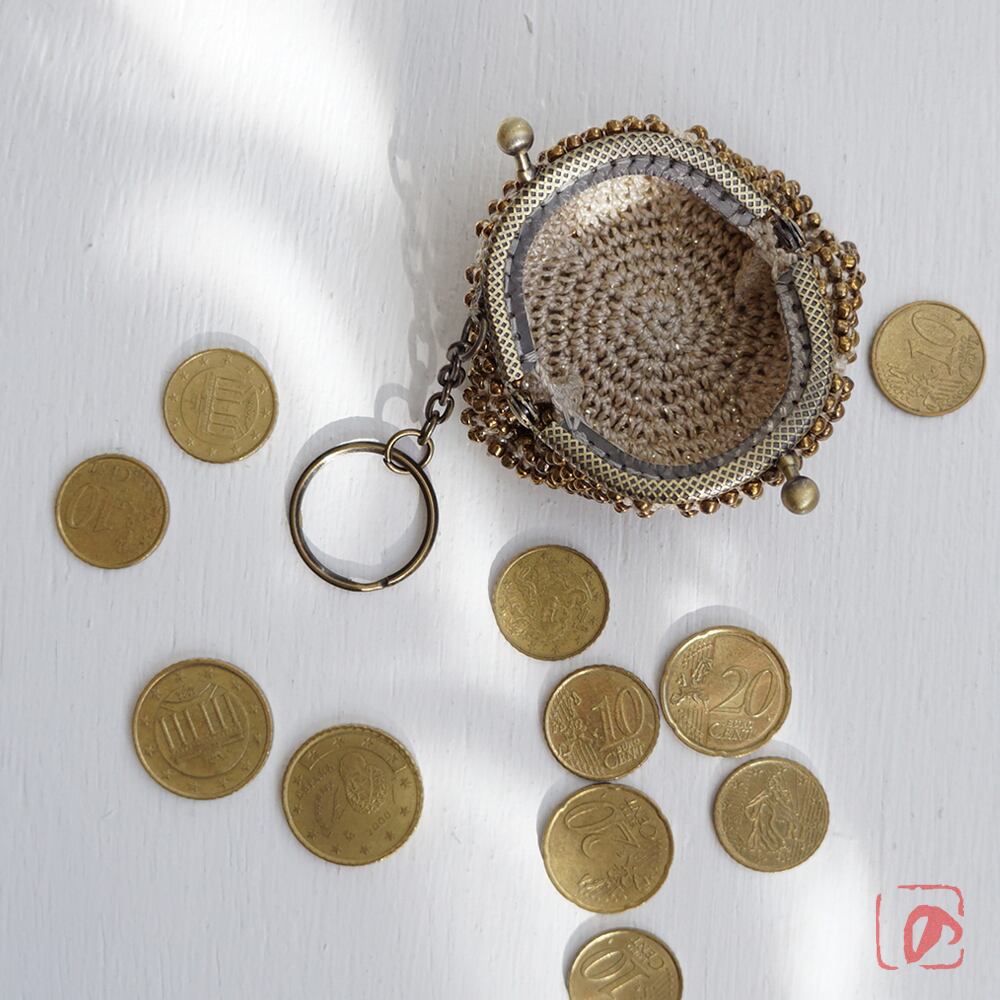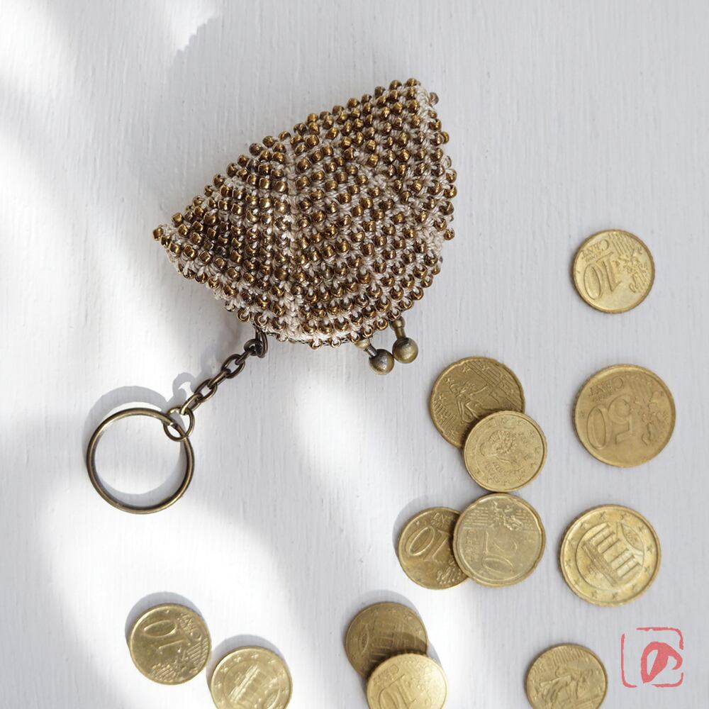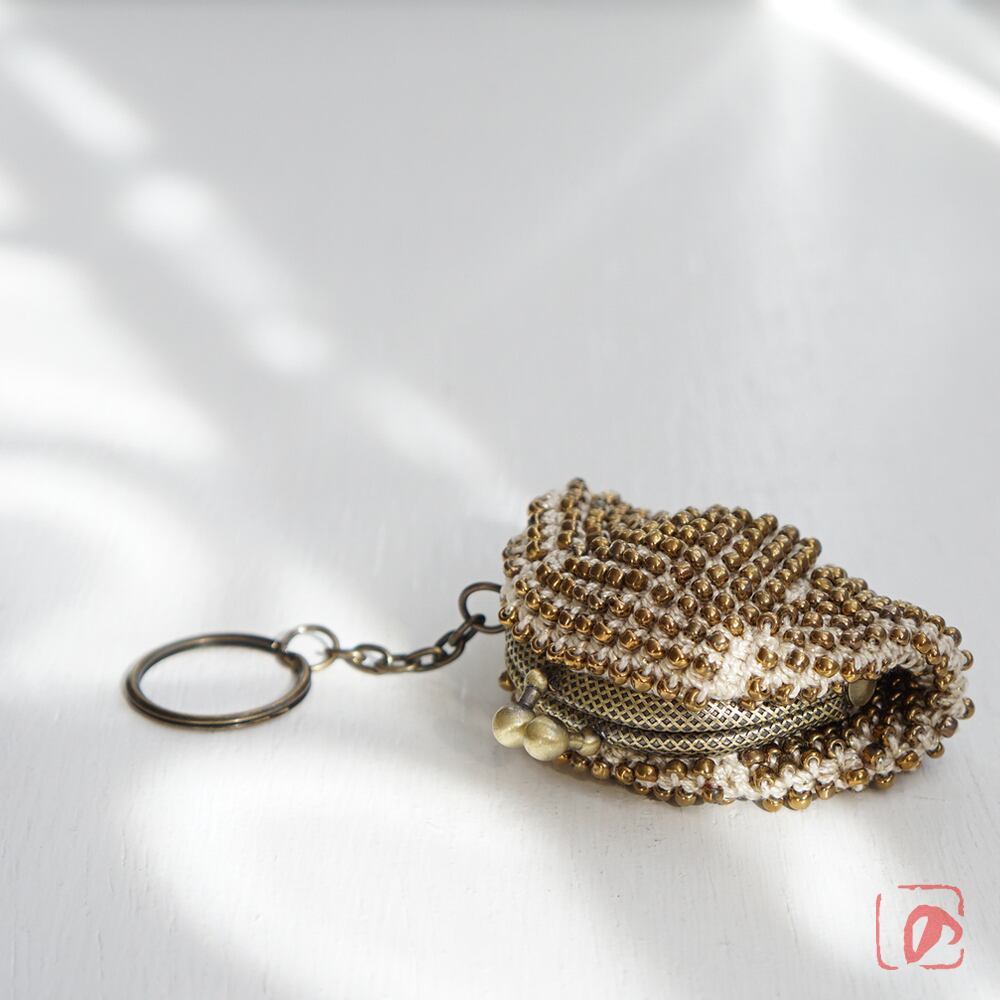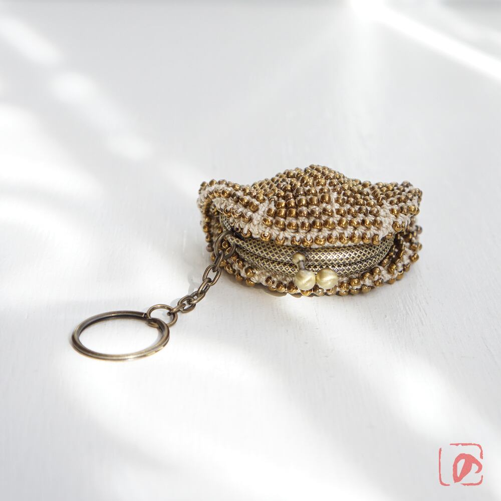 3mmのガラスビーズをひとつぶづつ編み込んだがま口です。