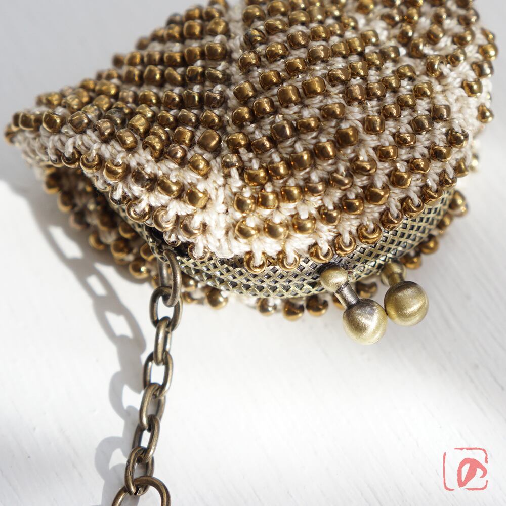 ビーズと口金をアンティークゴールドで統一し、シックに仕上げました。