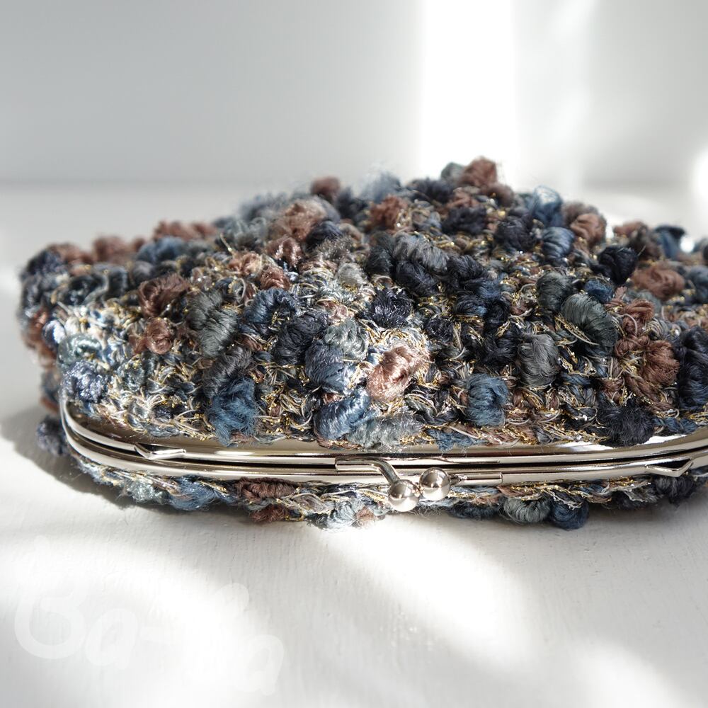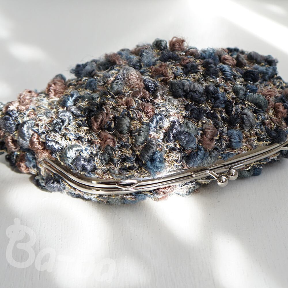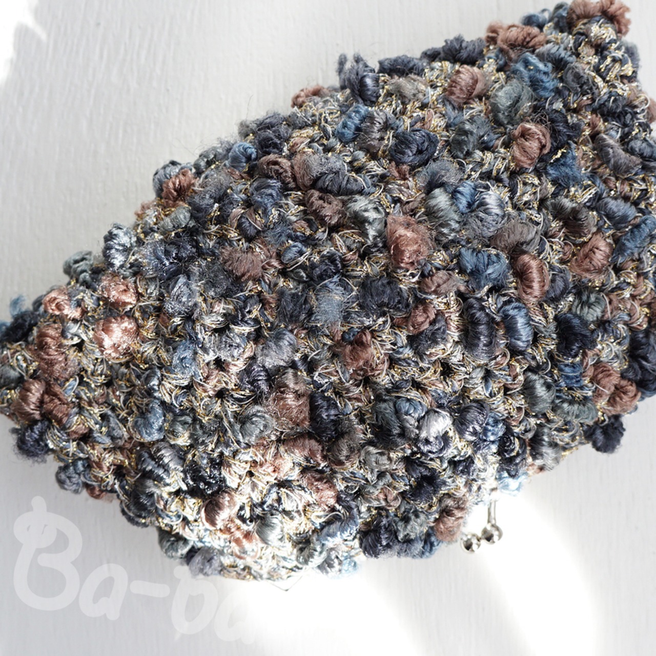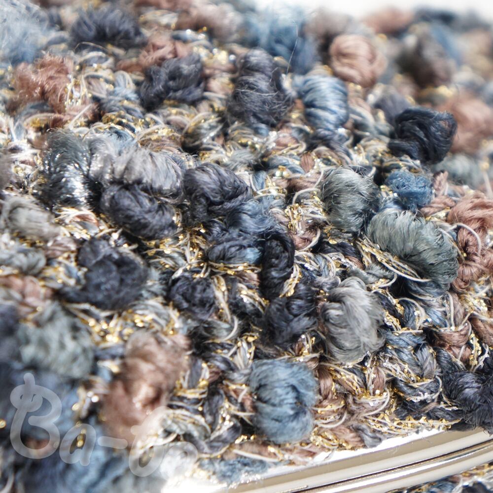 糸 : フランス製混紡毛糸(茶、青系ネップ及び金銀ラメ)