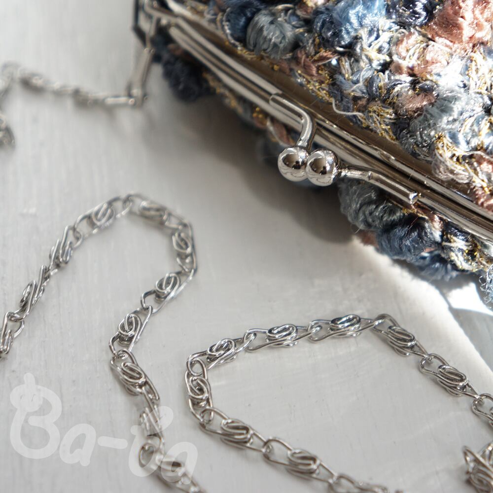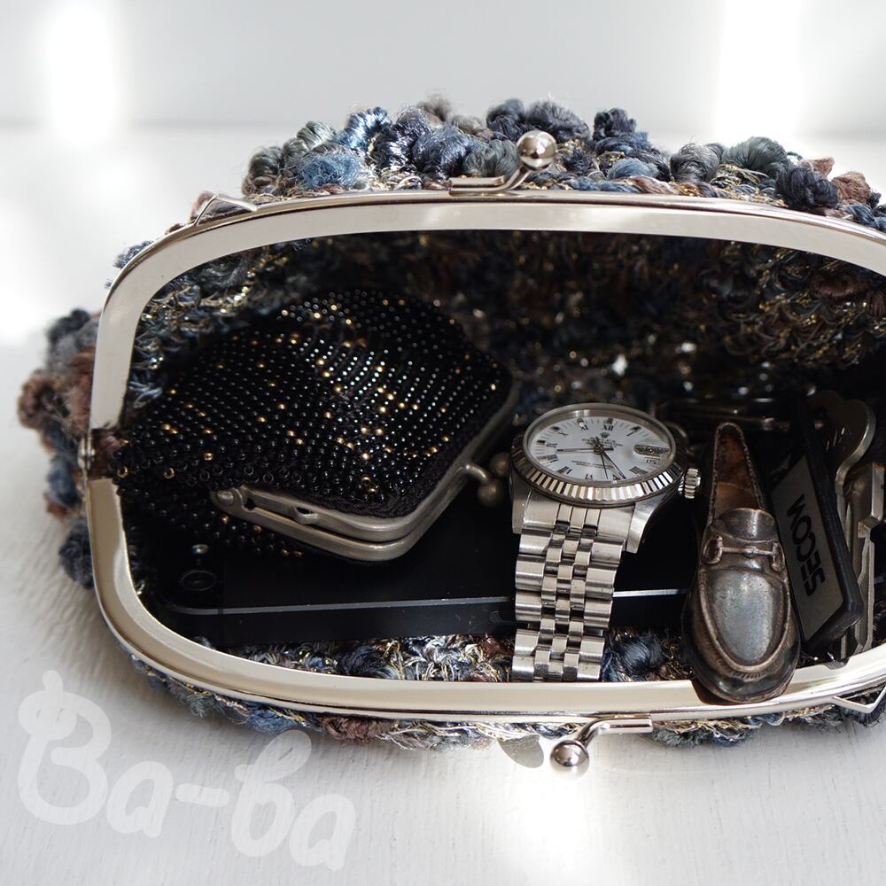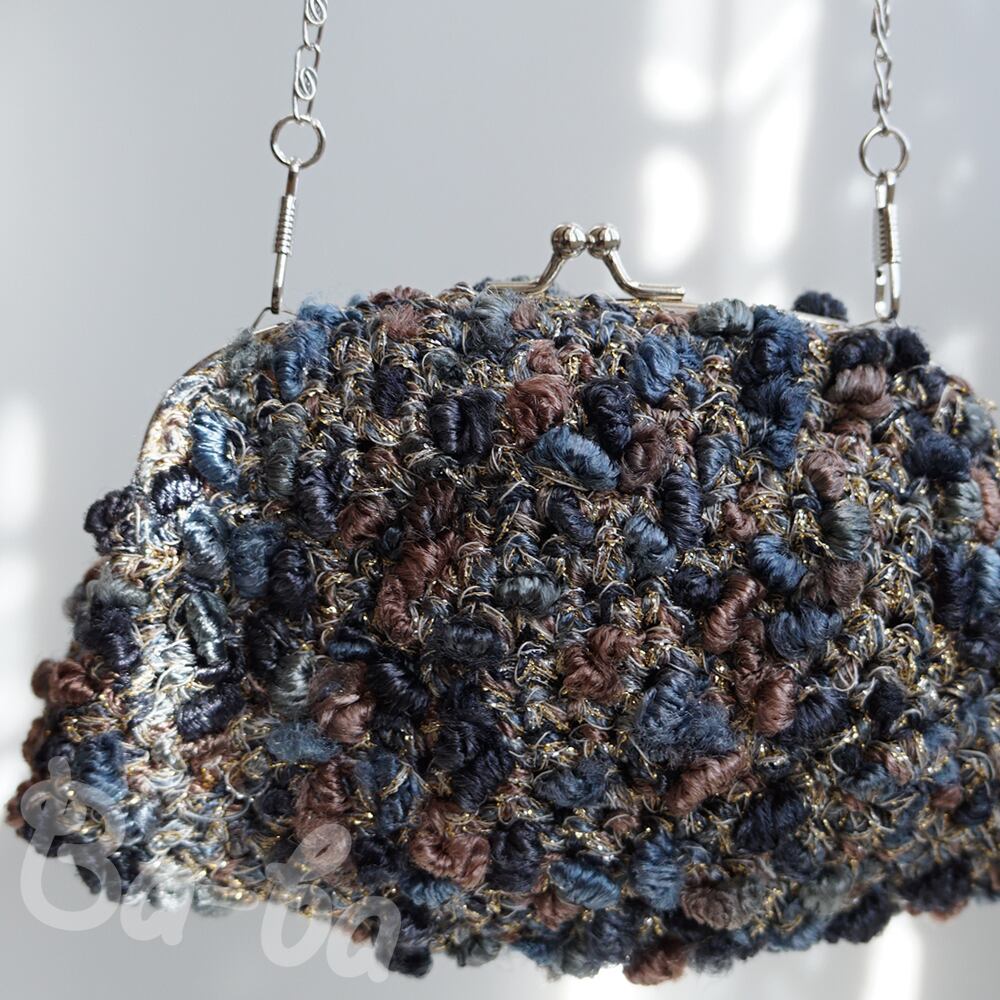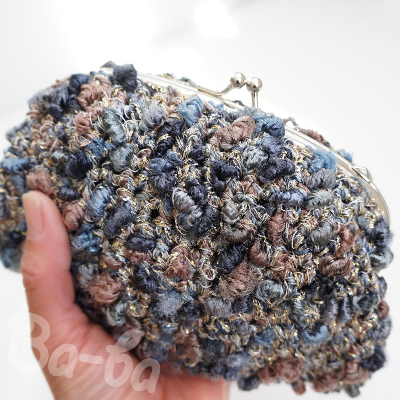 糸 : フランス製混紡毛糸(茶、青系ネップ及び金銀ラメ)