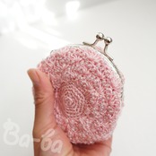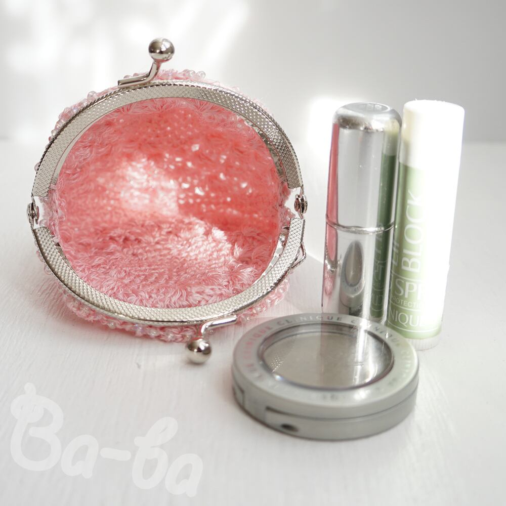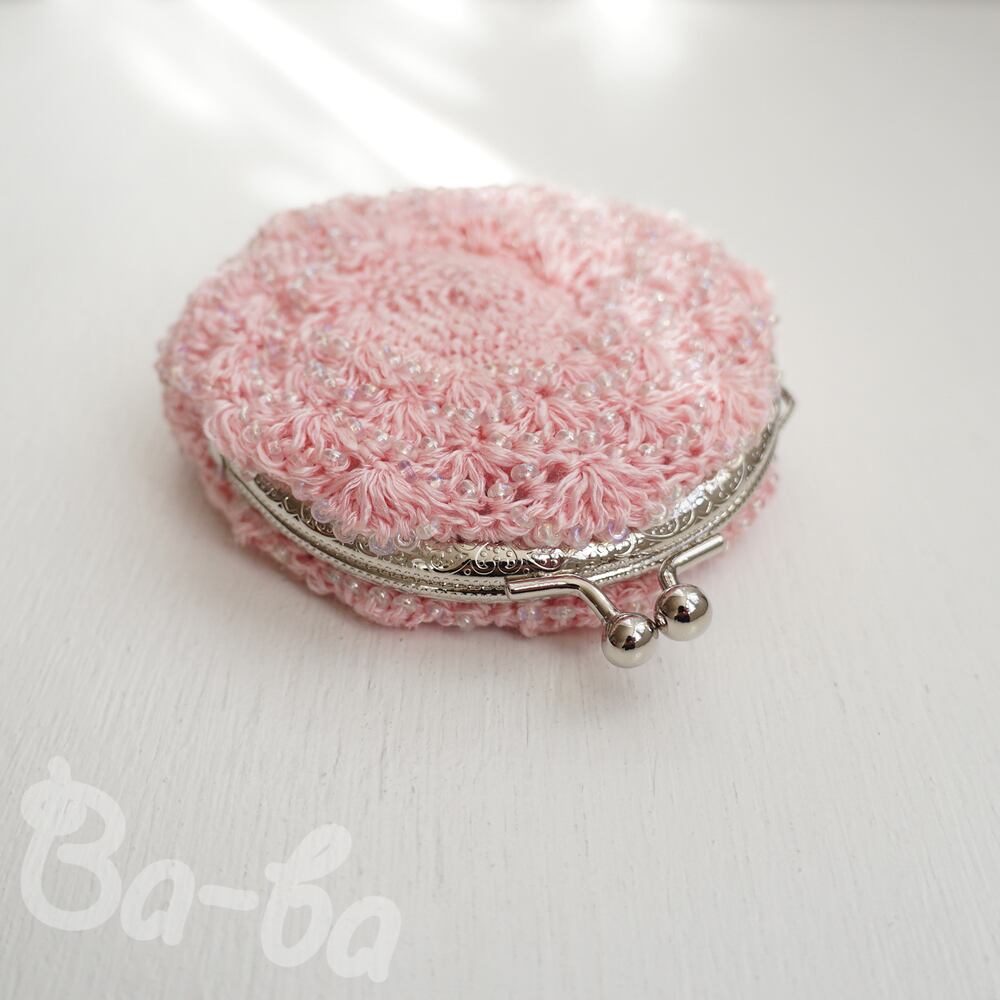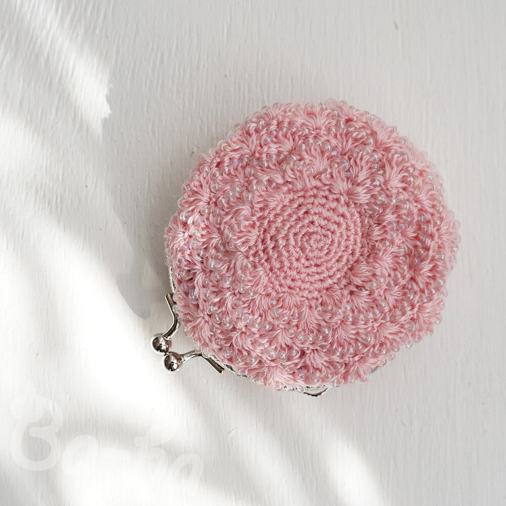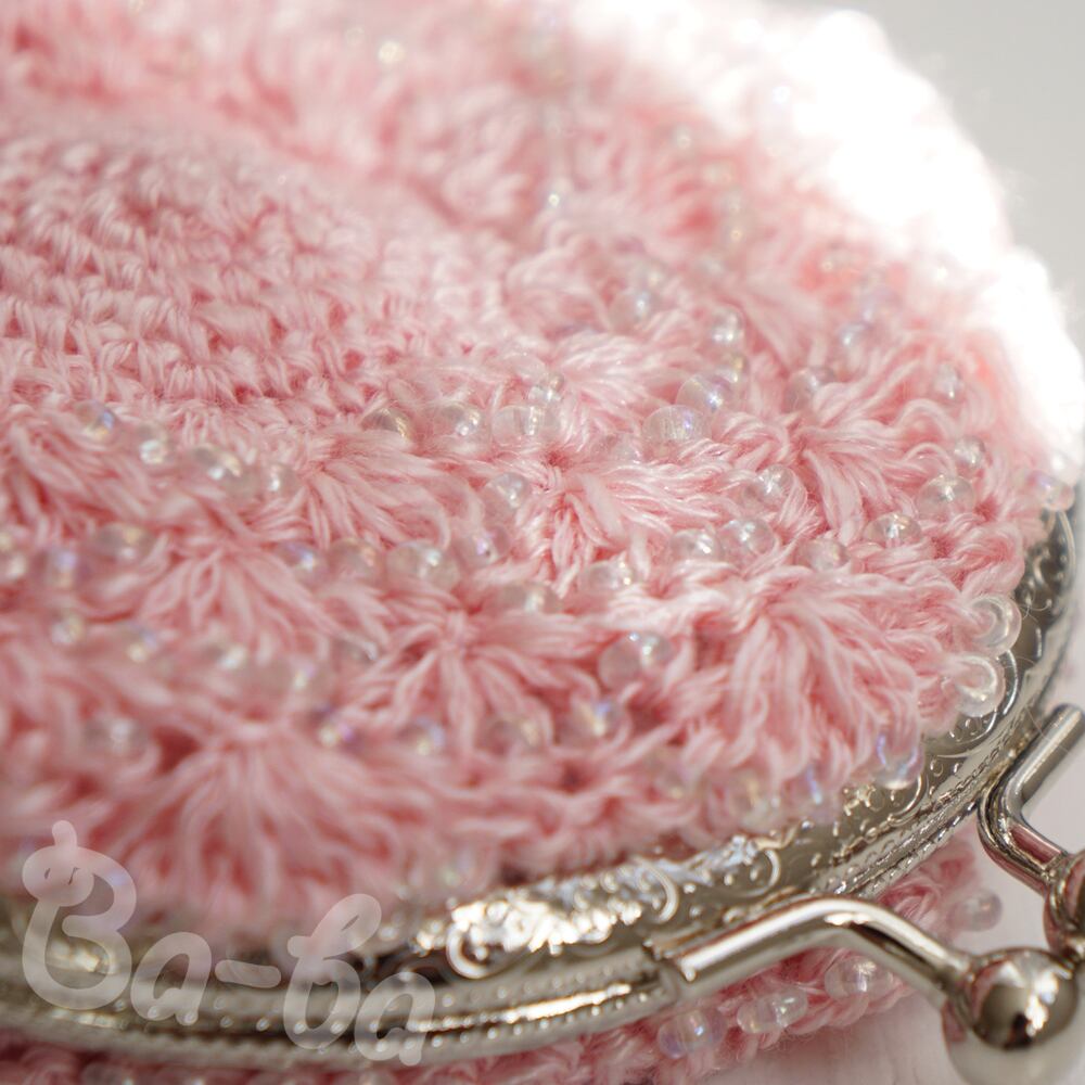 ばあば作、ビーズ入り松編み・まるまるがま口(sakura・C1513)