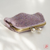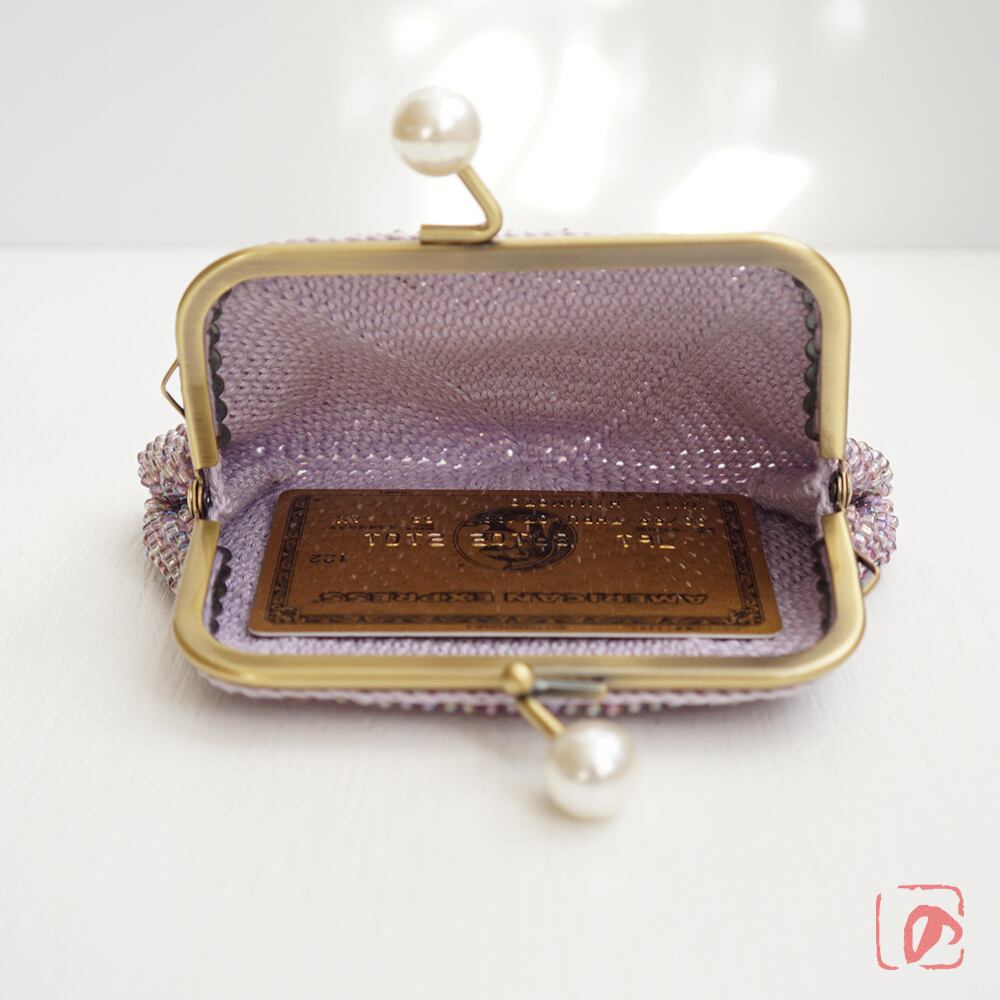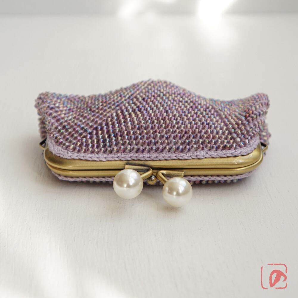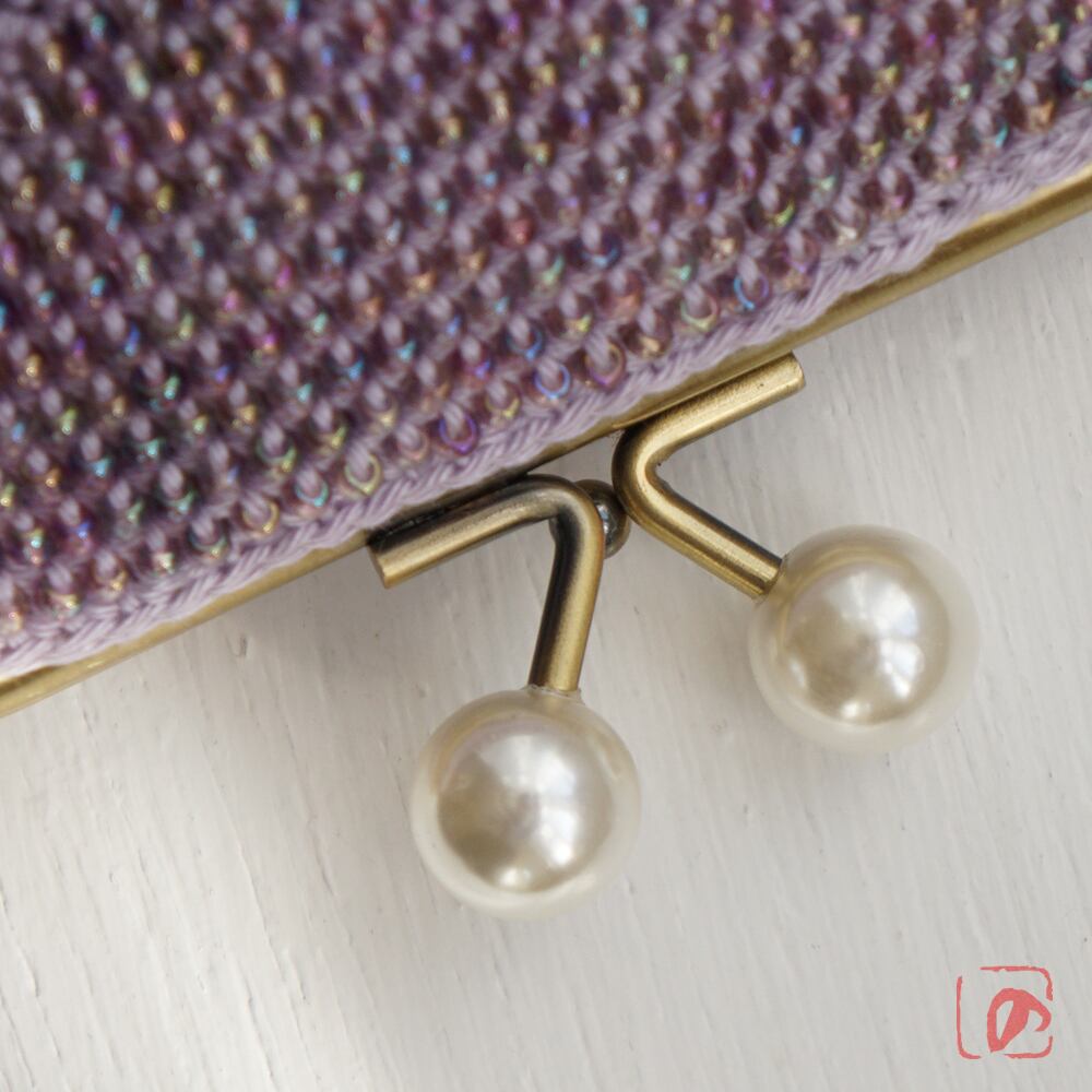 ばあば作☆大きめ・総ガラスビーズのスクエアがま口(アイリス・1595)