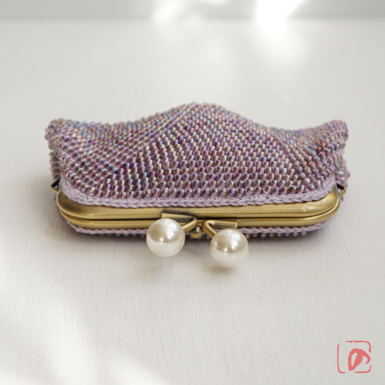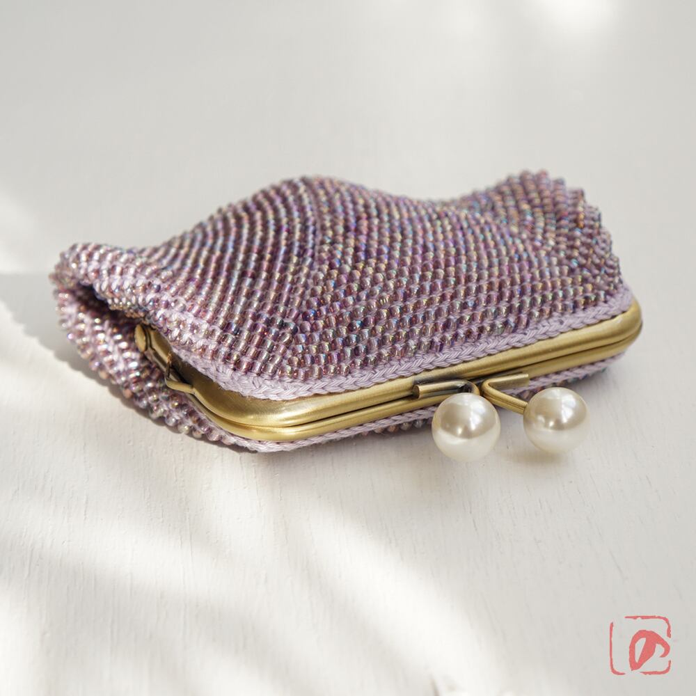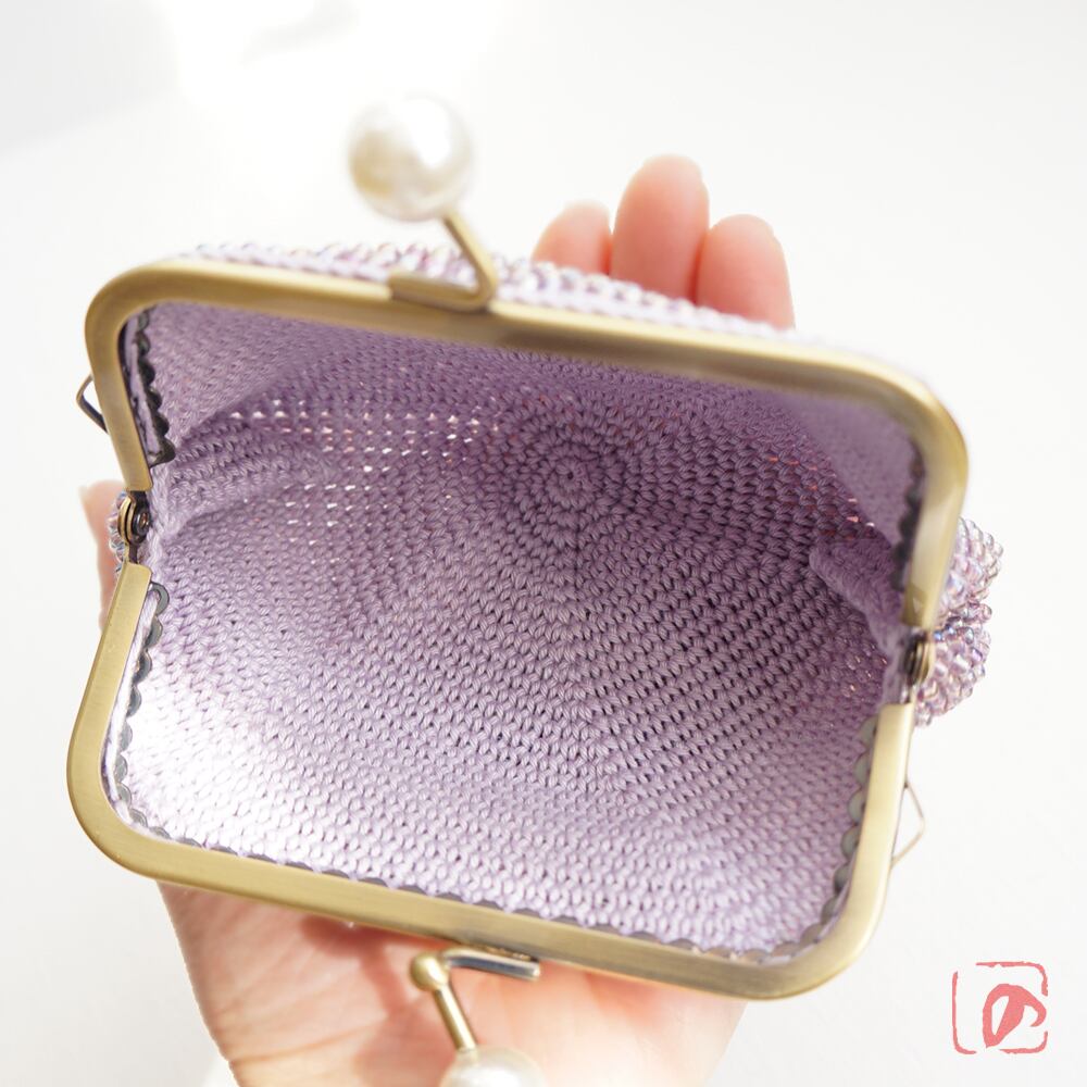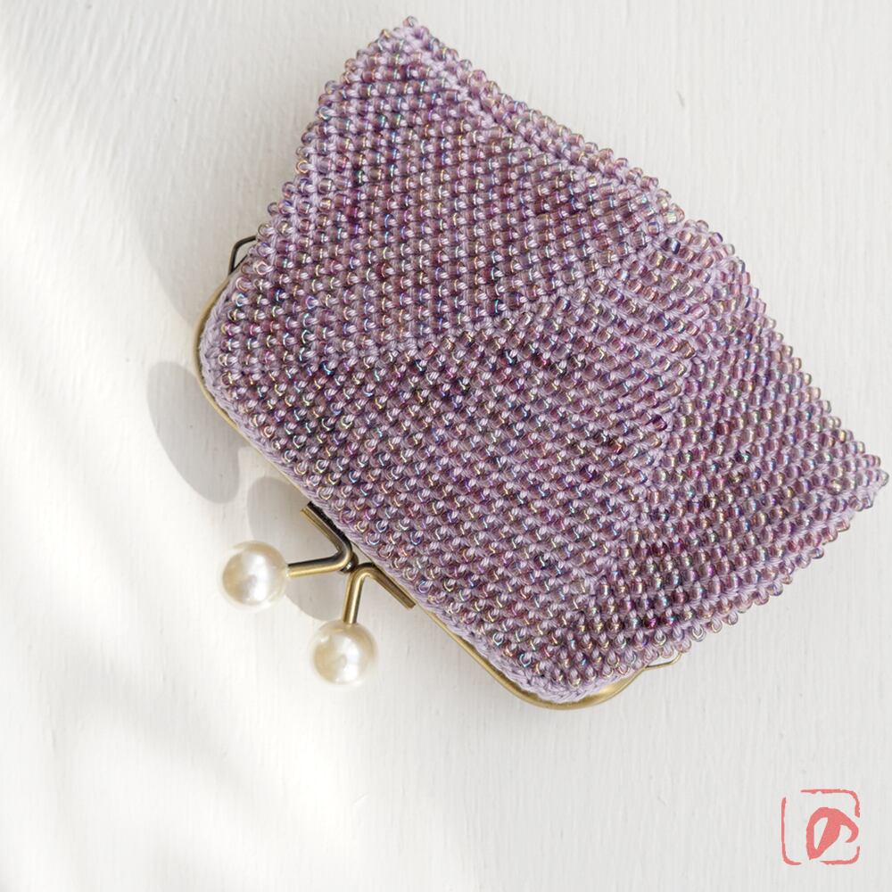 3mmのガラスビーズをひとつぶづつ、全面に編み込みました。