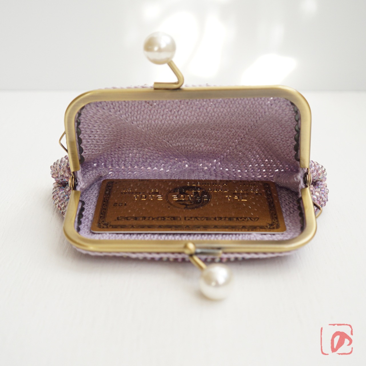 口金 : アンティークゴールド、プチパールのつまみ、10.5cm、角型、両カン