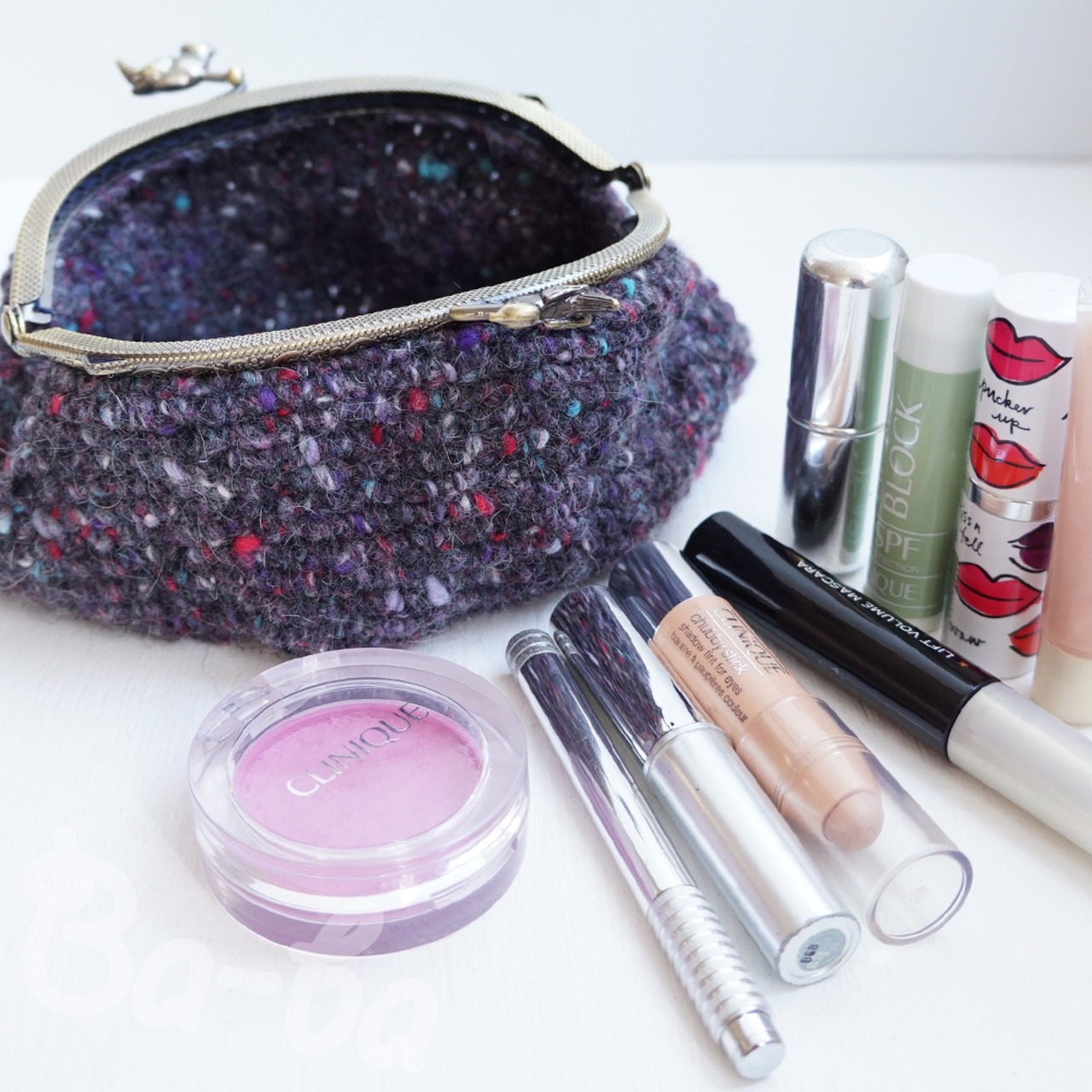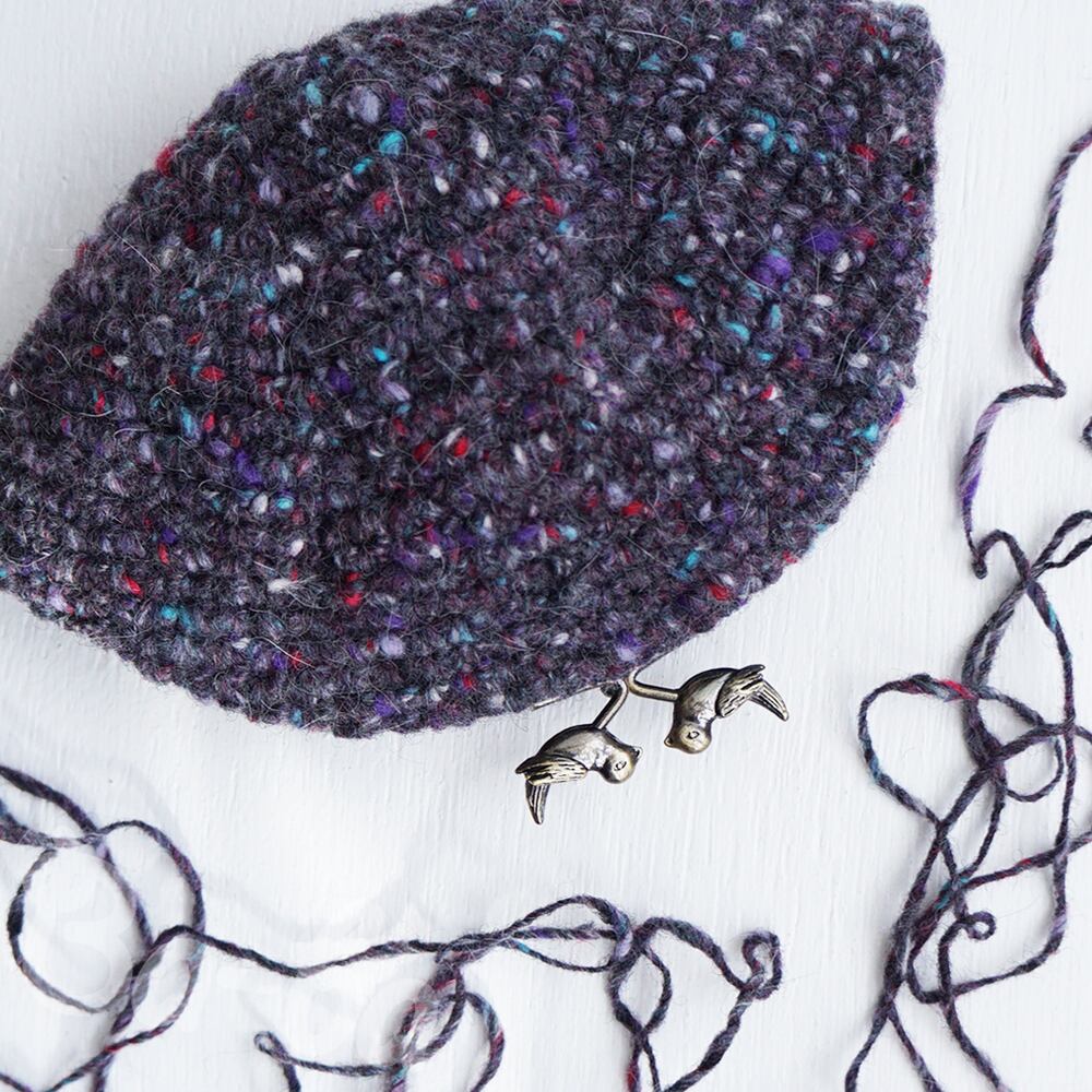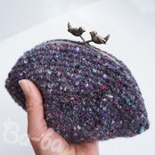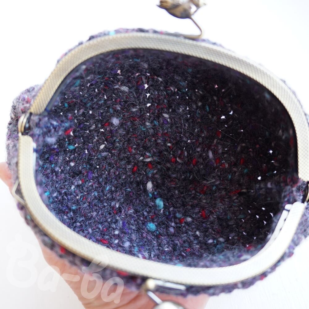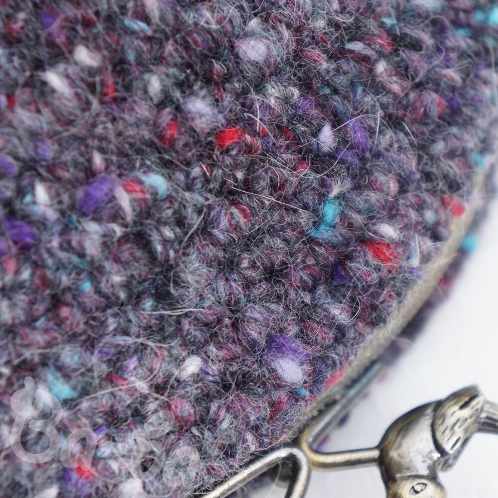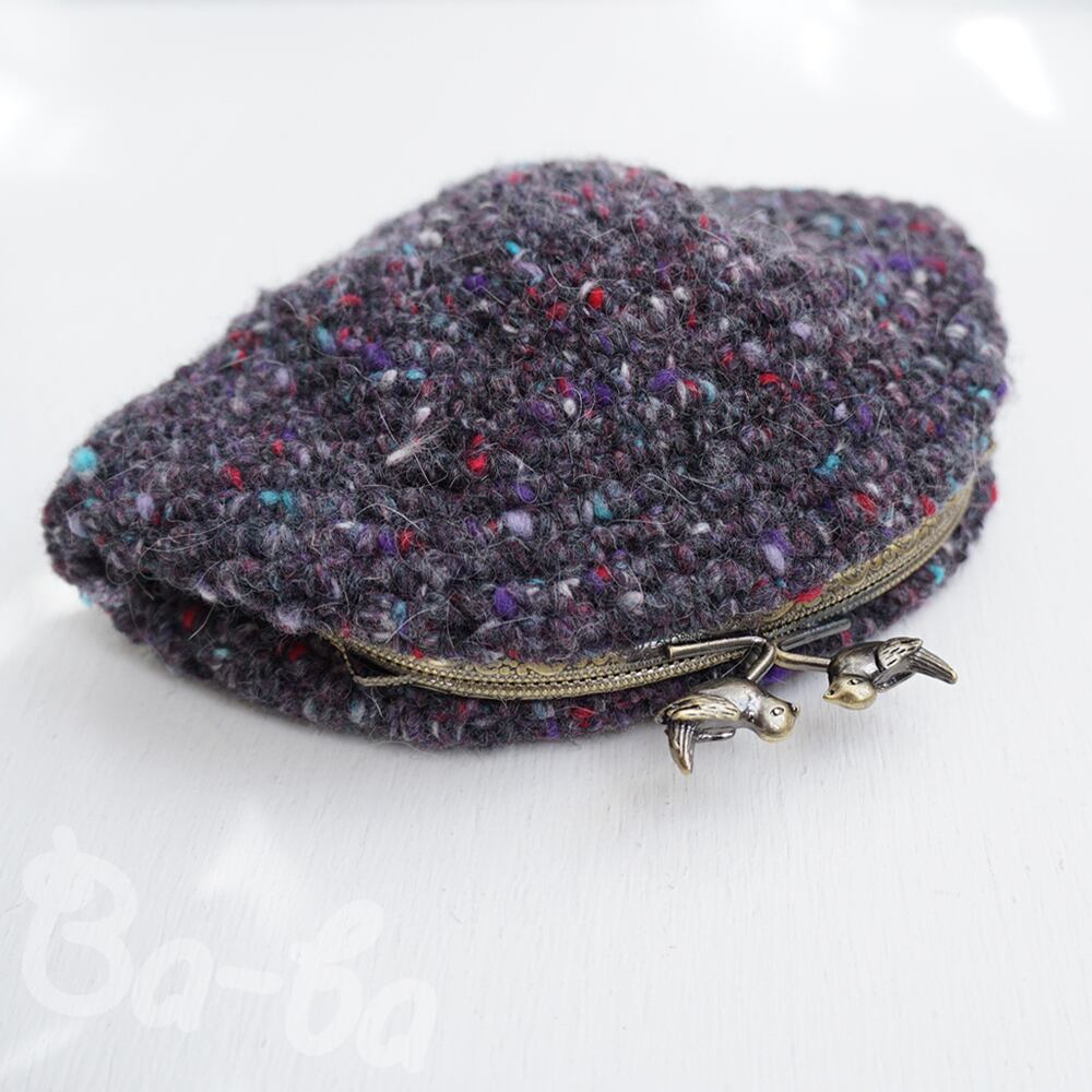 手紡ぎ風ツイード調のウールの毛糸をシンプルに編み上げ、がま口に仕上げました。